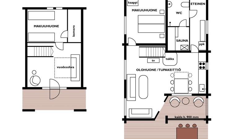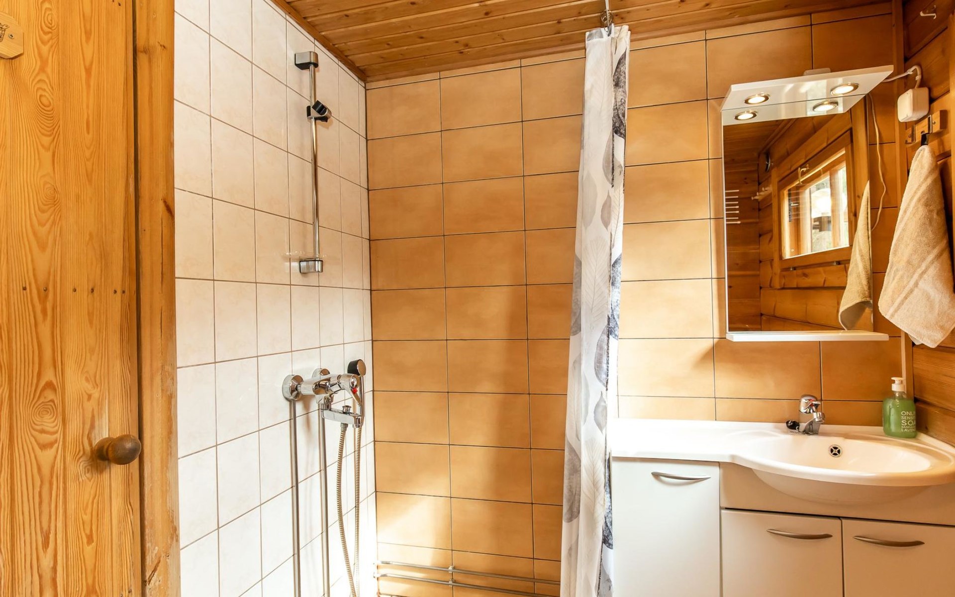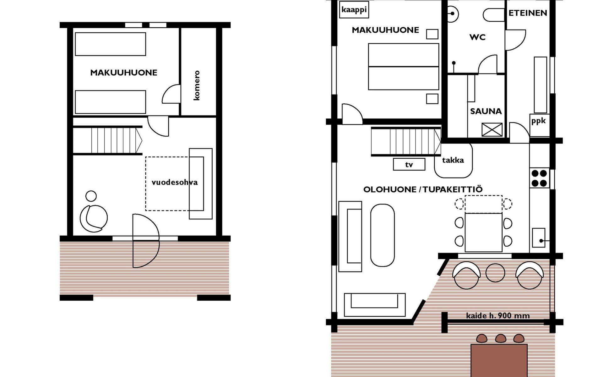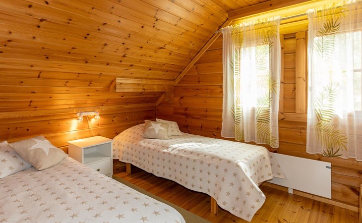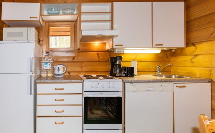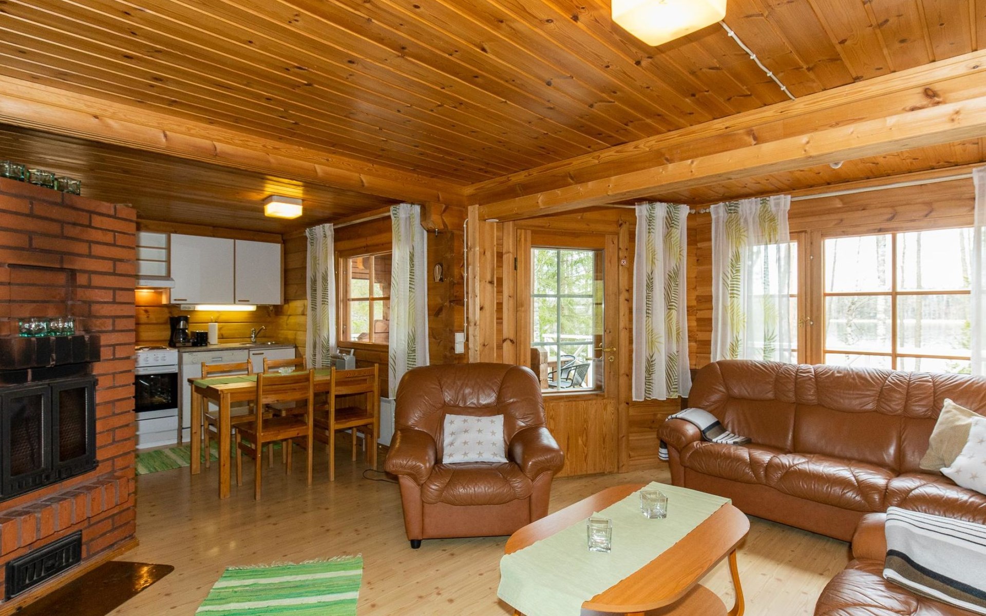 10 km to the south from Vääksy, lake Vesijärvi 30 m, shallow hard clay bottom with thin sand layer, pier, rowing boat, log-built cabin (1994), living room, living room/kitchen, bedroom with double bed on the ground floor, bedroom with two beds in the loft, sofa bed (140 x 190 bed) in the hall of loft. WC in the washroom, sauna with wood-burning sauna stove.