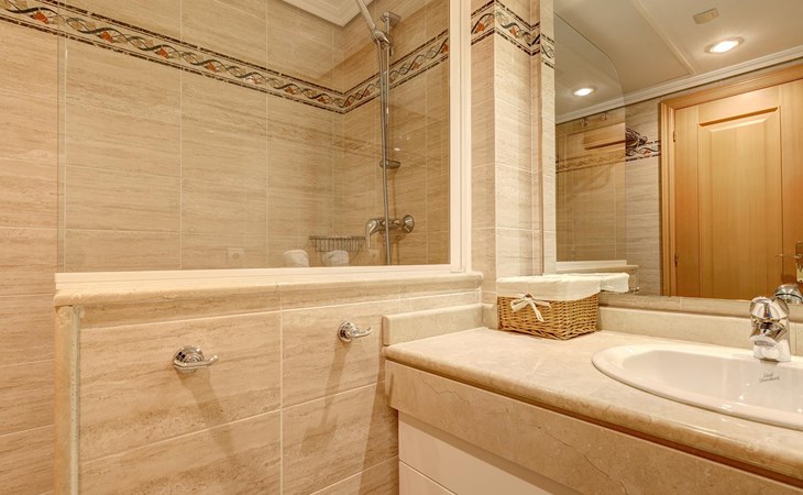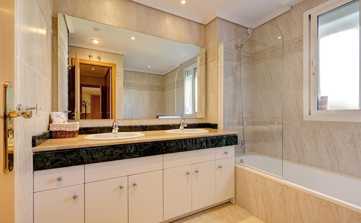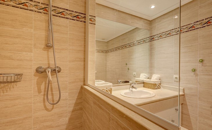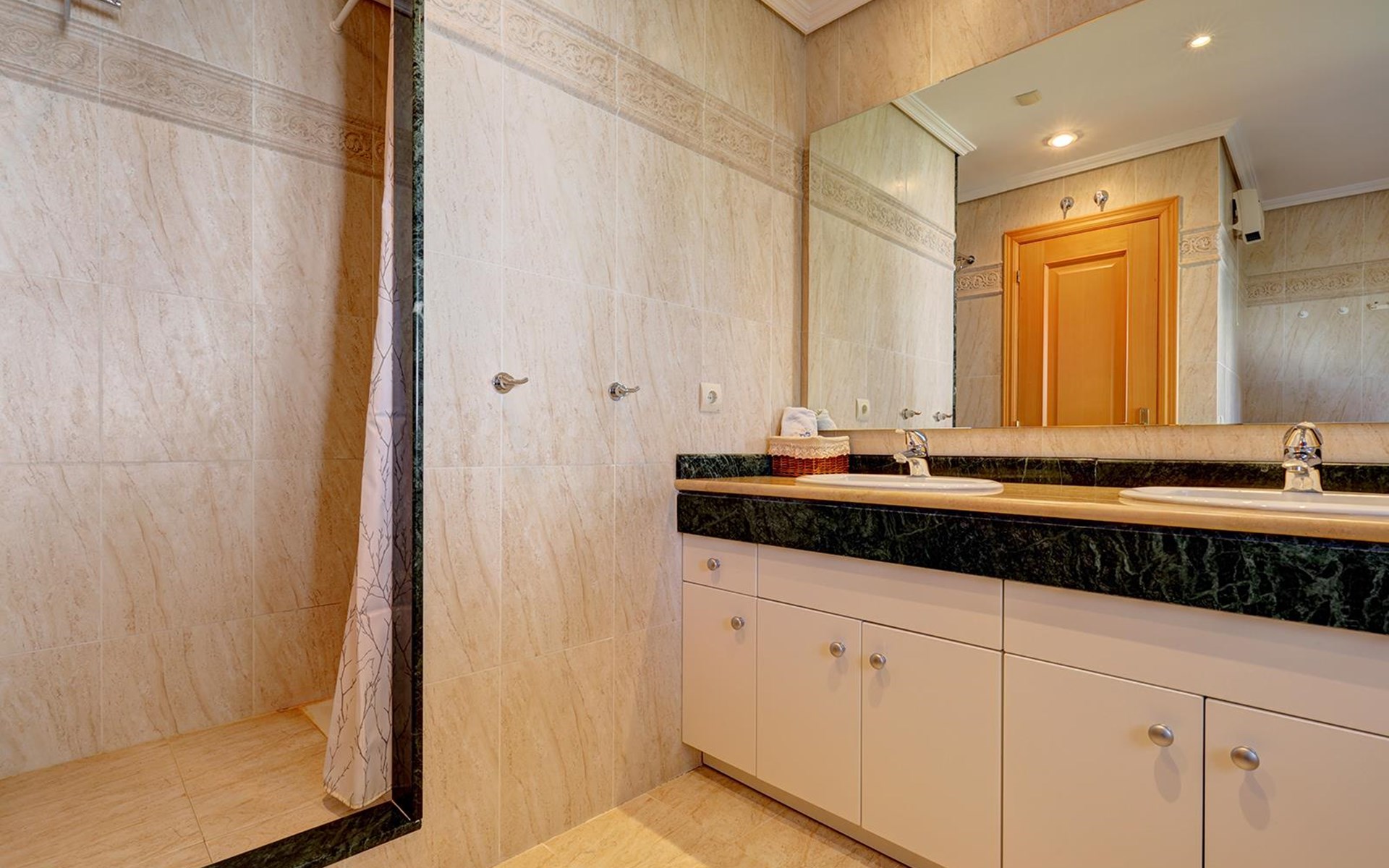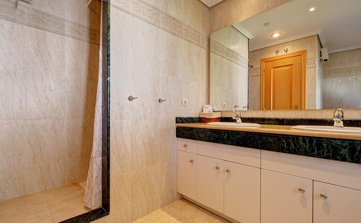 - Twee en-suite badkamers. Eén met inloopdouche en bad en één met een douche.
