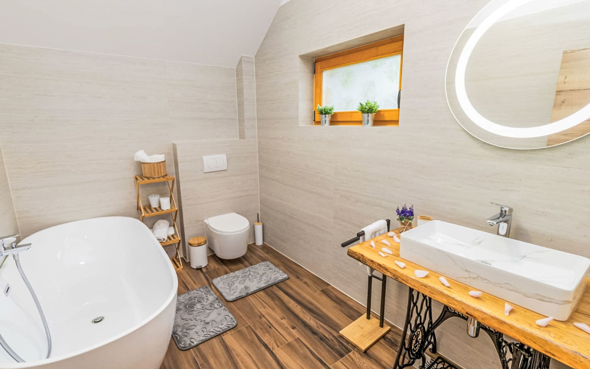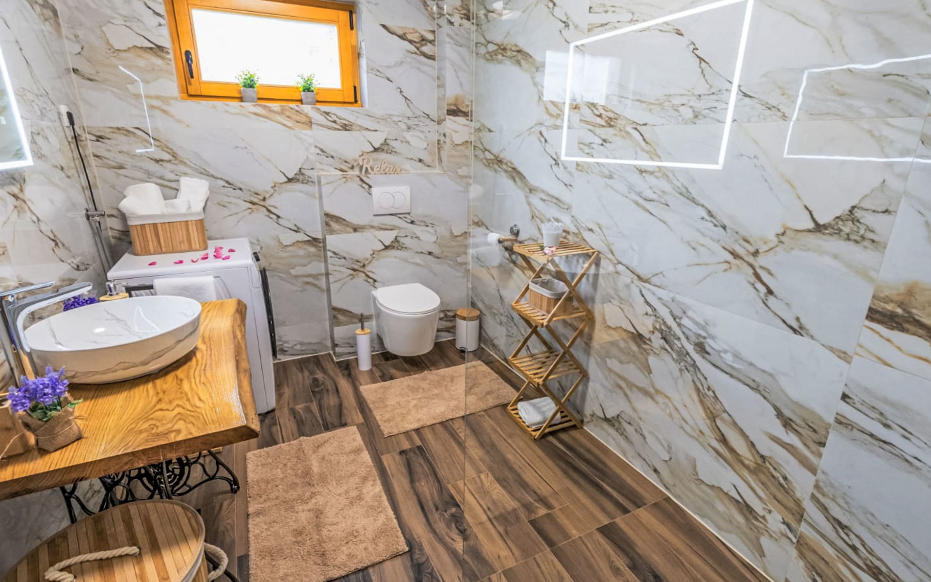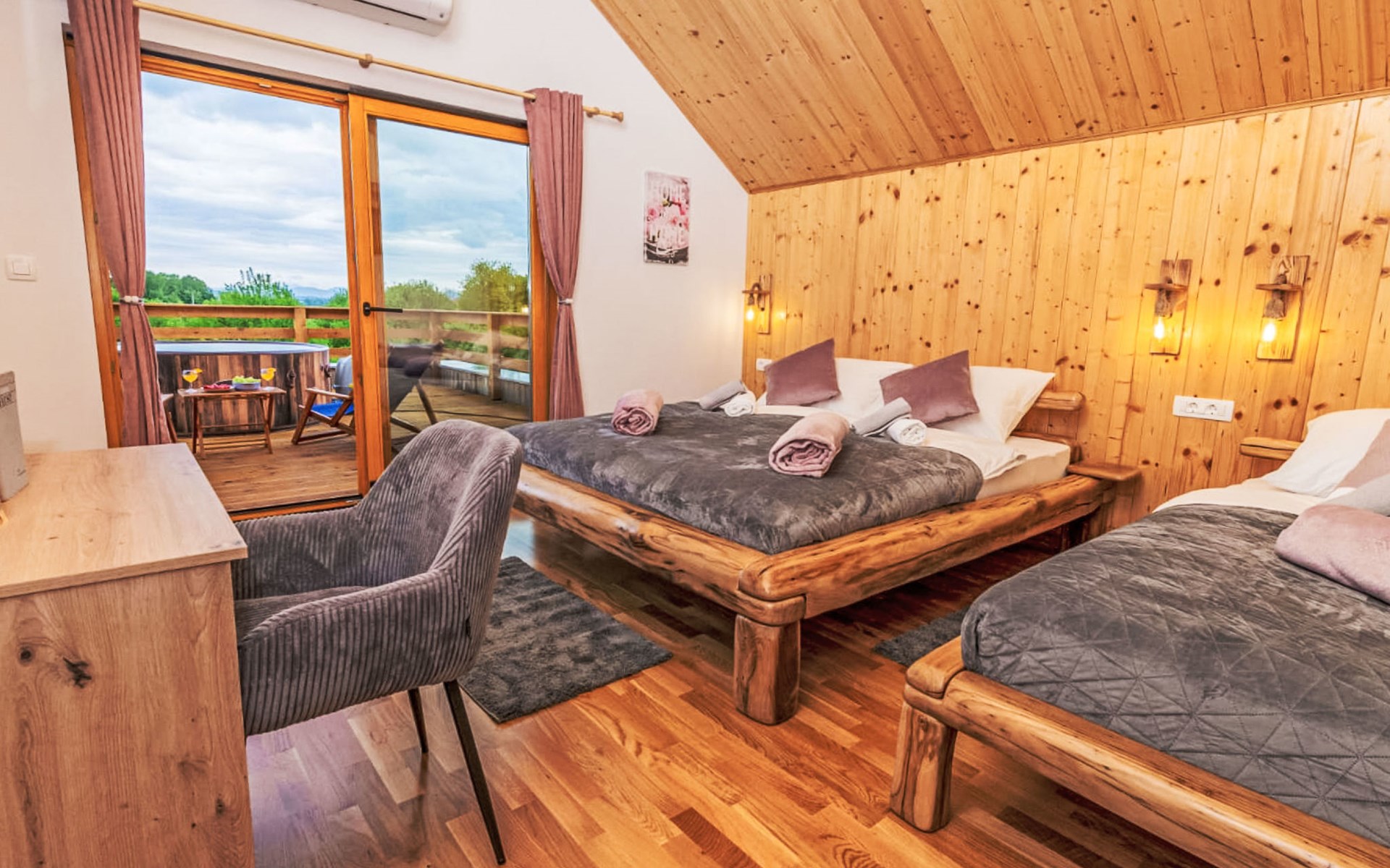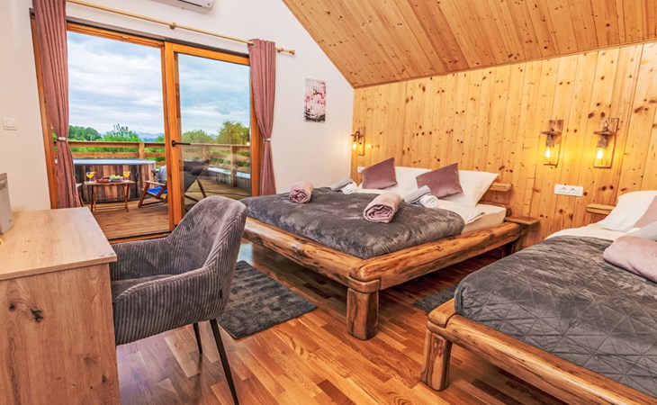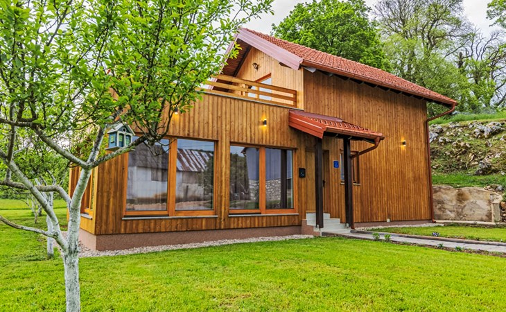 Bukovac Perušićki 14 km van Gospića: Gezellige eengezinswoning "Mirjam", van 2 verdiepingen, bouwjaar 2024, omgeven door weiden. In het gehucht Bukovac Perušićki, 14 km van het centrum van Gospić, geïsoleerde, rustige ligging, 50 m van de bosrand, te midden van groen. Voor medegebruik: terrein 2 ha. Voor alleengebruik: hot tub, barbecue (schommel). In het huis: internetaansluiting, wasmachine. Toegangsweg tot aan het huis (50 m onverharde weg). Parkeerplaats bij het huis op het terrein. Winkel 5 km, supermarkt 14 km, restaurant 14 km, bushalte 5 km. Attracties in de buurt: Pećinski park Grabovača 11 km. Bekende meren kunnen gemakkelijk worden bereikt: Plitvička jezera 65 km, Krušćica Jezero 24 km.