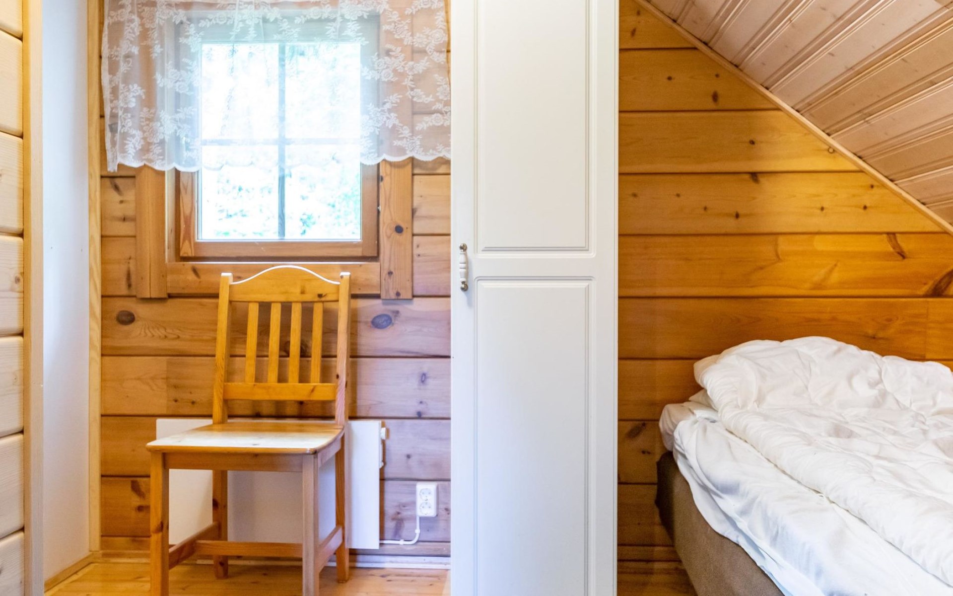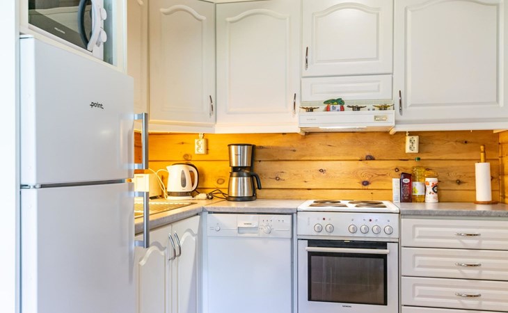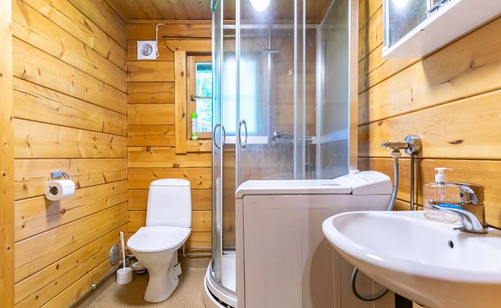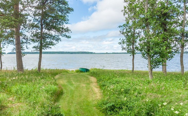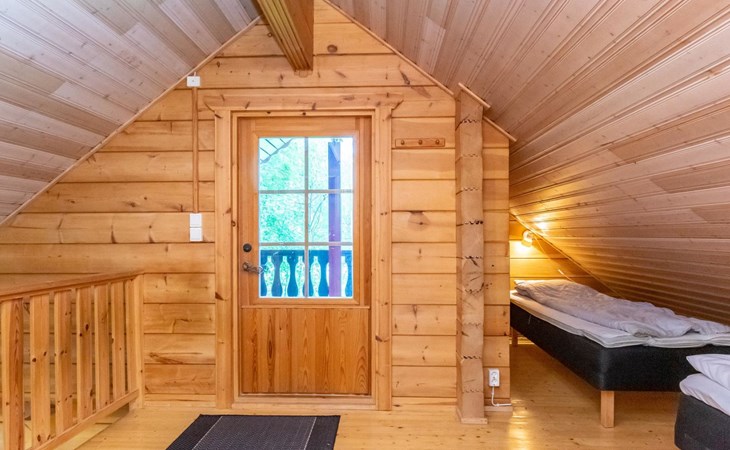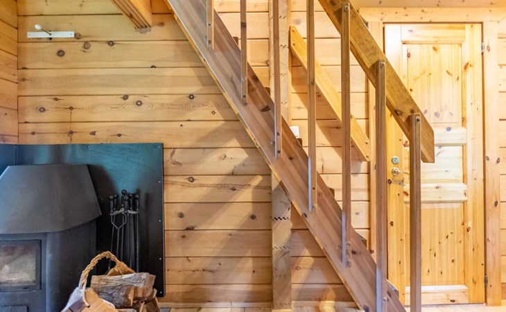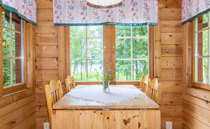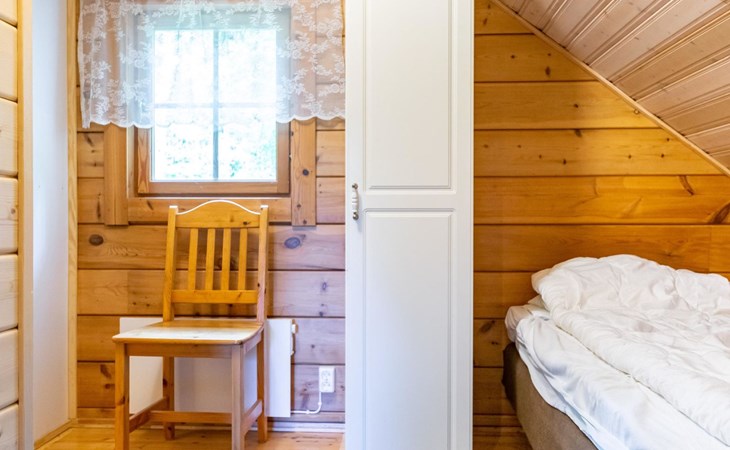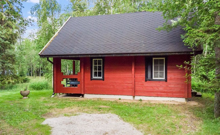 9 km north of Kristiinakaupunki, Selkämeri 50 m, gently deepening hard gravel bottom, own boat, no pier. Log cabin 2005, kitchen, light fireplace, living room with sofa and two chairs and TV, bedroom with two beds. Sleeping loft with four beds under a low pitched roof, washroom with shower and toilet, sauna (wood-burning stove), open porch.