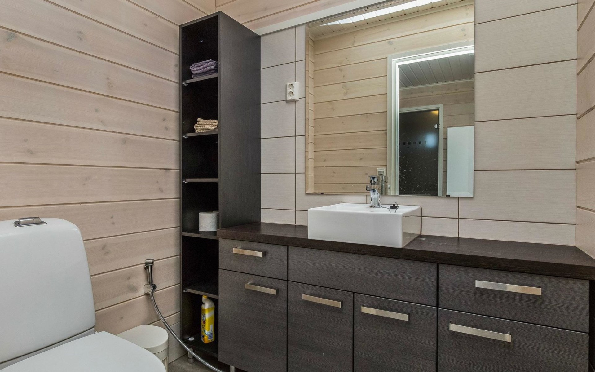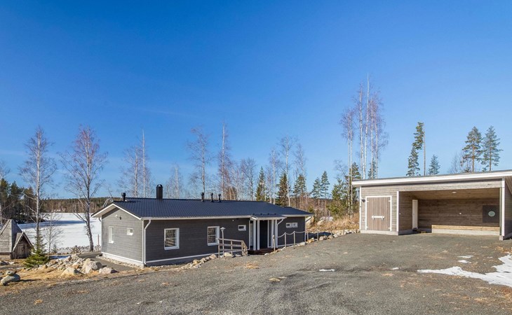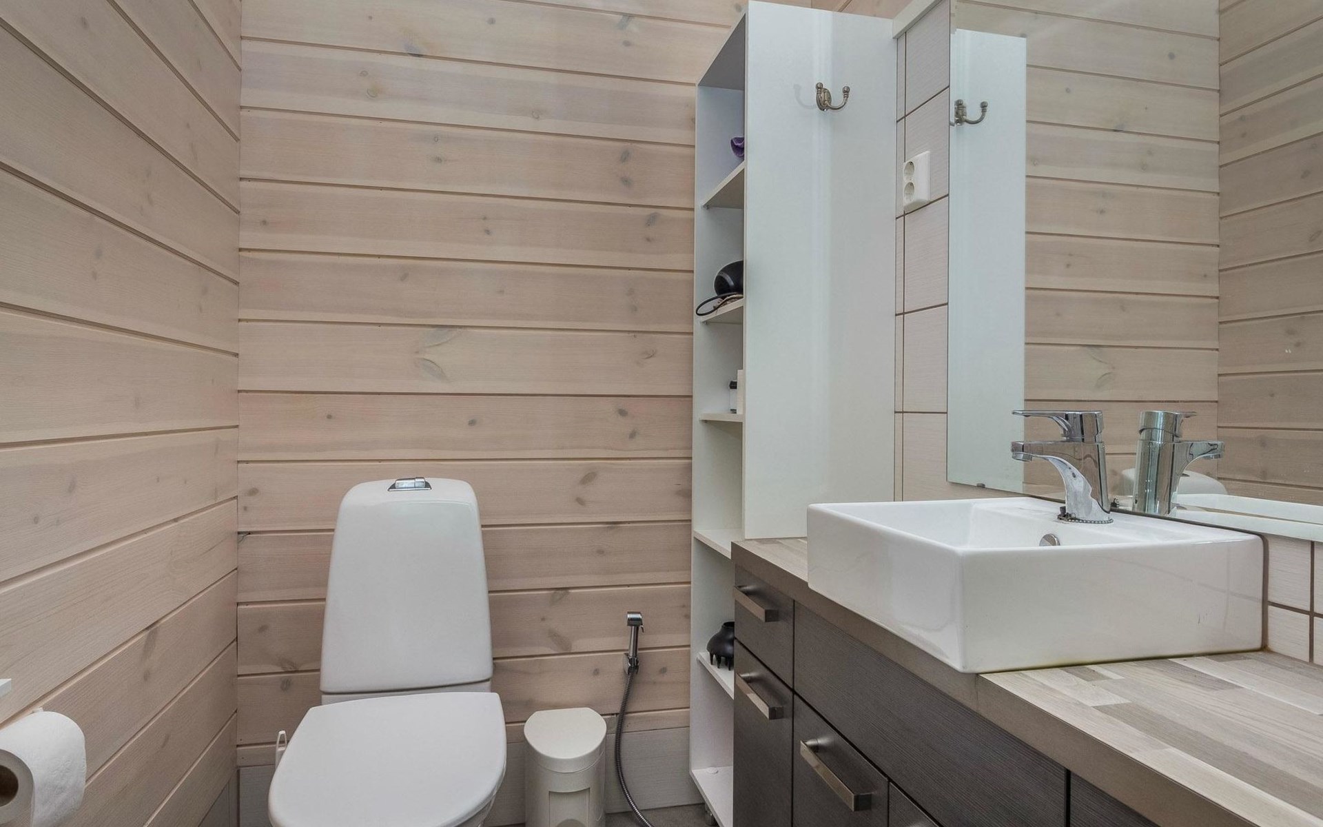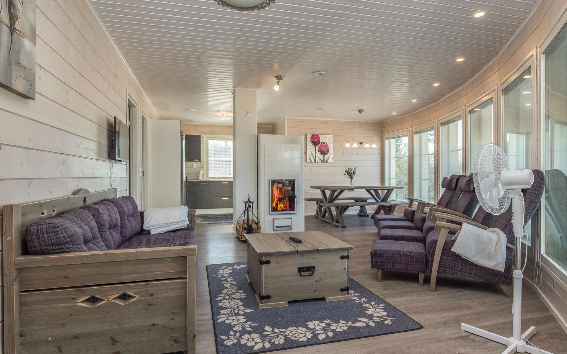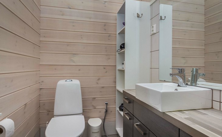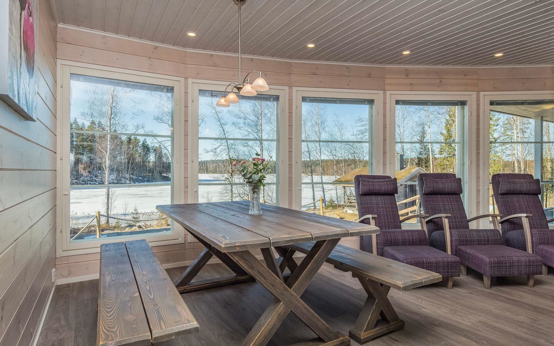 Wooden villa 2014, large livingroom/kitchen with two extra beds on the sofa bed, two bedrooms (10 m²), two beds in both, sofa bed for two in the sauna building, two separate WC’s, washroom and sauna (electric sauna stove), large covered terrace.