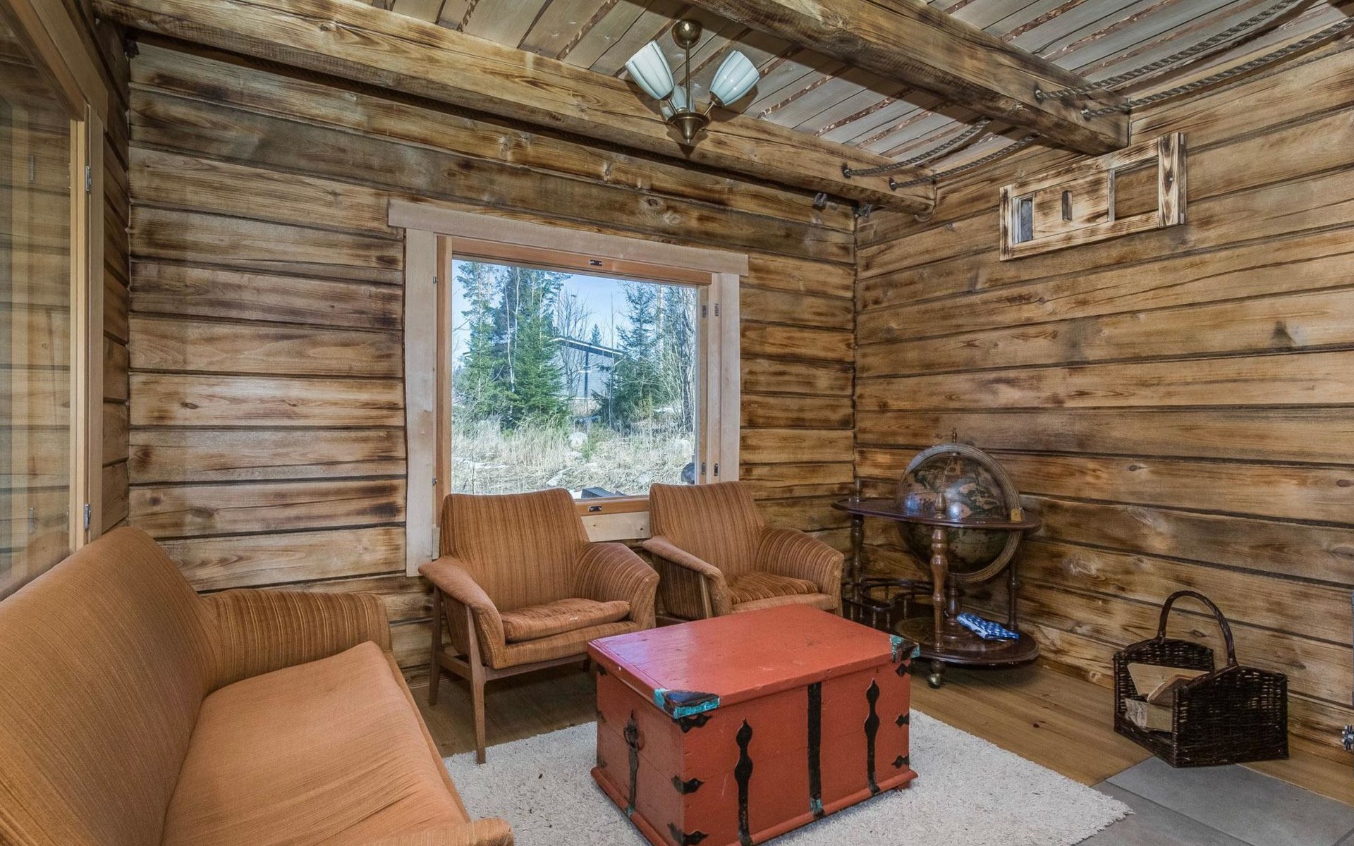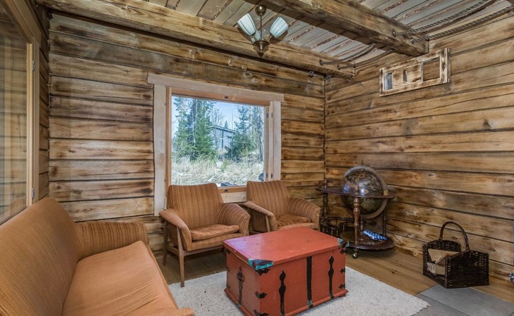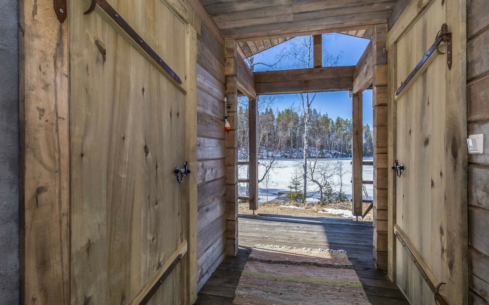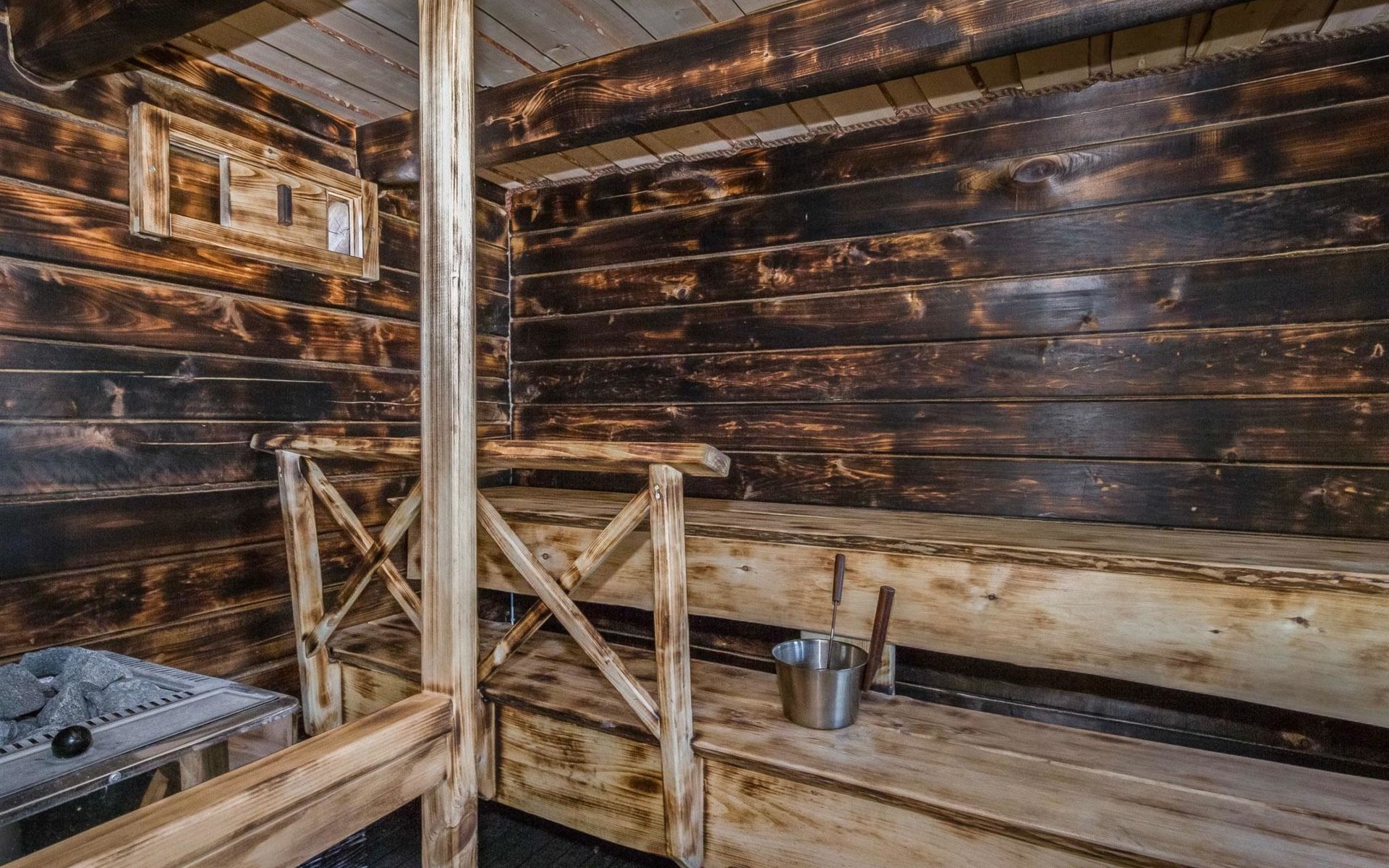 Lakeside sauna 2014, sauna lounge and sauna with wood burning sauna stove, turf roof. In the summer time, water comes to the sauna by pump. In the winter time water to sauna must be brought by using bucket.