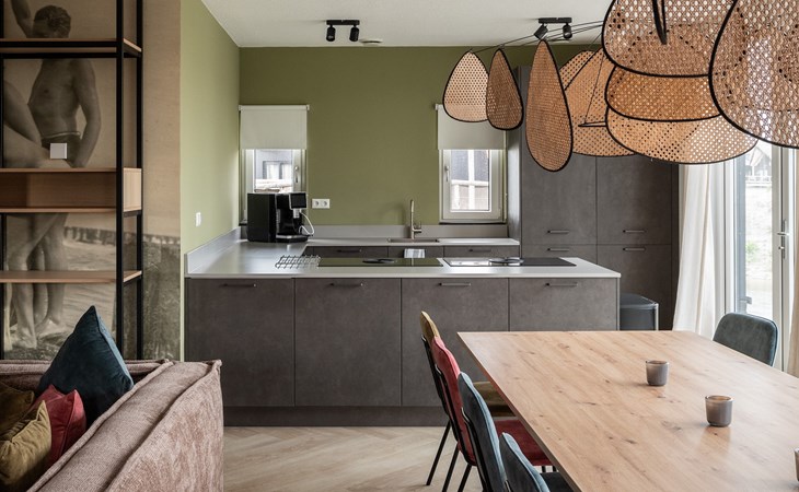 De royale woonkamer is voorzien van een zithoek met een smart-tv waarop je je favoriete content kunt streamen. Daarnaast bevindt zich de eethoek en een open keuken met luxe apparatuur. Hier heb je onder andere de beschikking over een dubbele Bora inductiekookplaat, 2 vaatwassers, 2 combi-ovens en een automatische koffiebonenmachine. Bovendien vind je op de begane grond een privé sauna in één van de badkamers waar je heerlijk in kunt ontspannen!