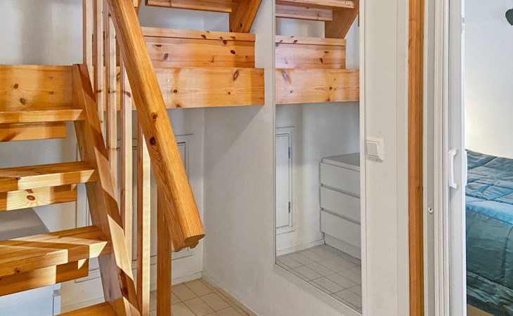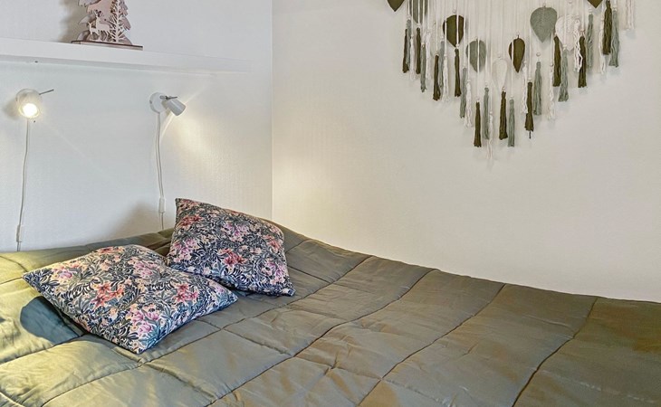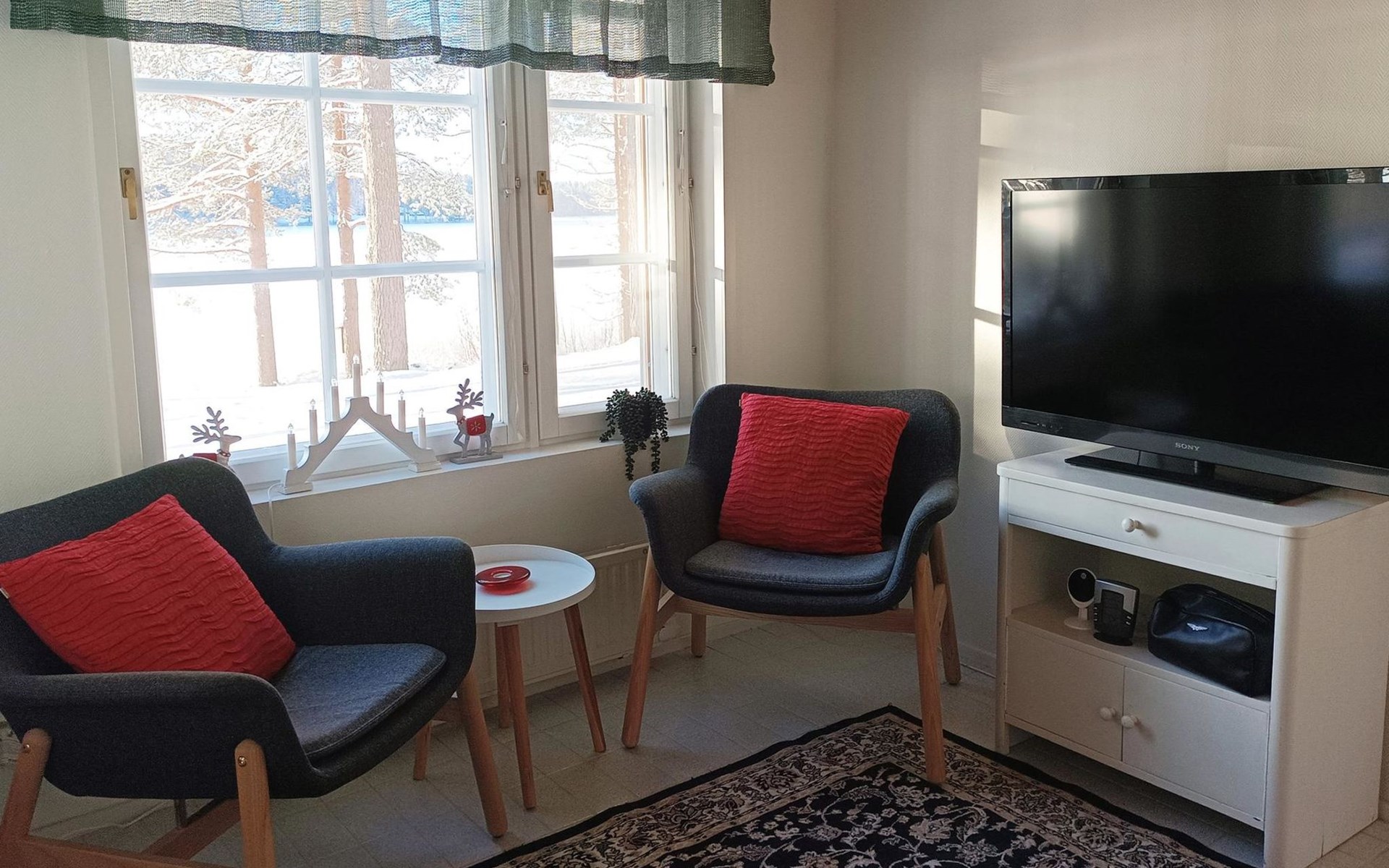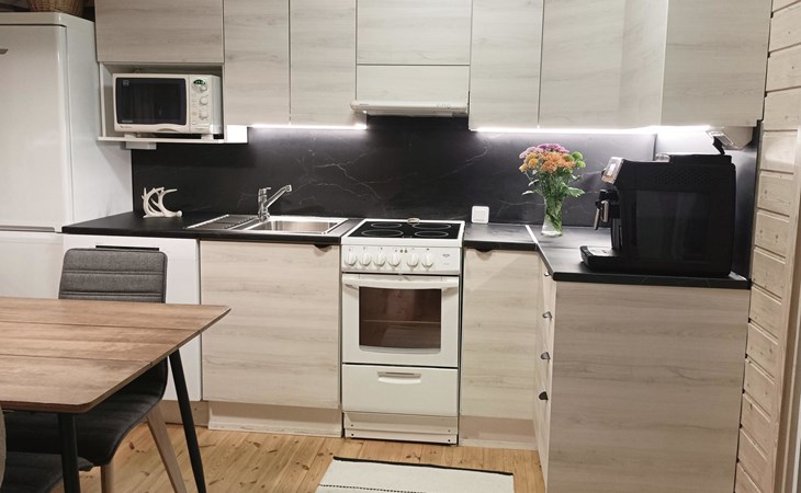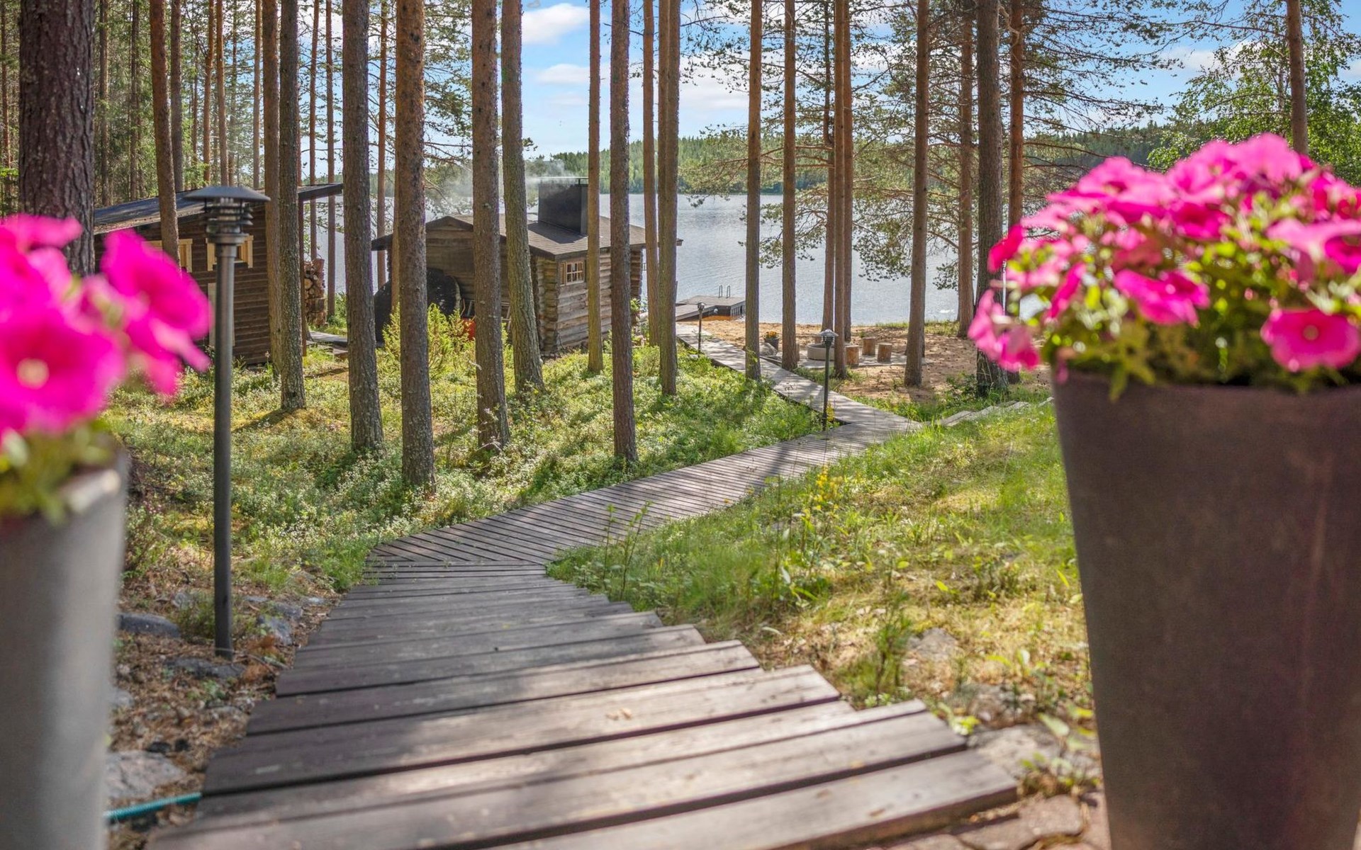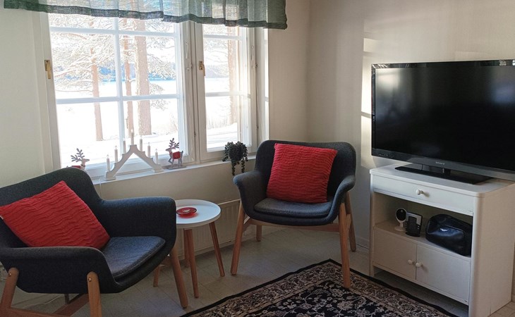 Lakeside sauna with steam room and fireplace room. 1 bed in the fireplace room. Lakeside sauna is renovated in 2020. The sauna has a shower in the steam room, electric light and electric heating. In the fireplace room, there are electric hot plates and a refrigerator.