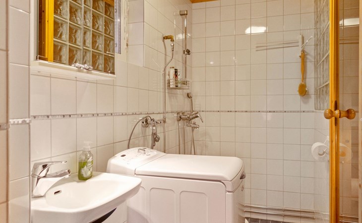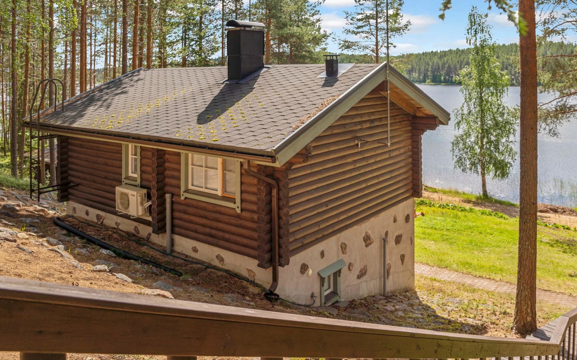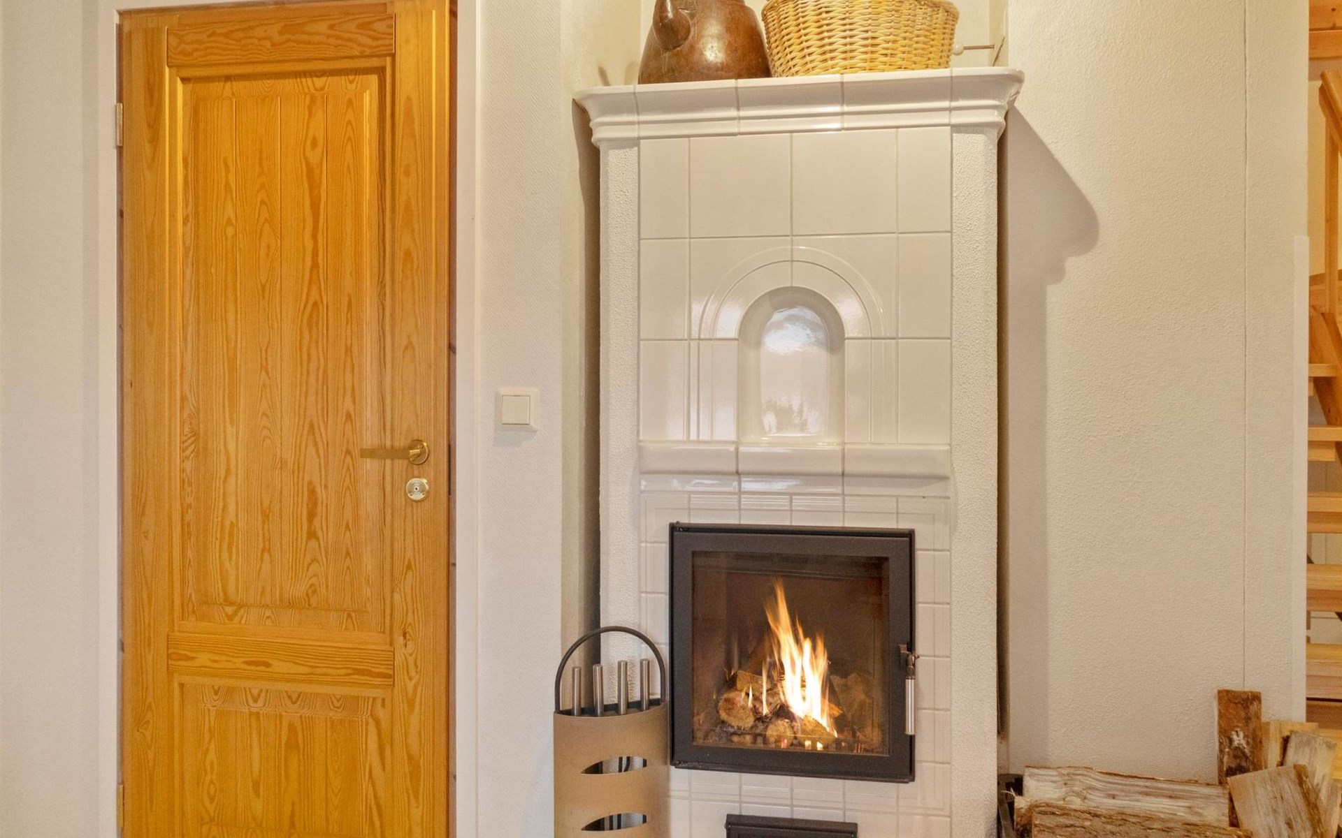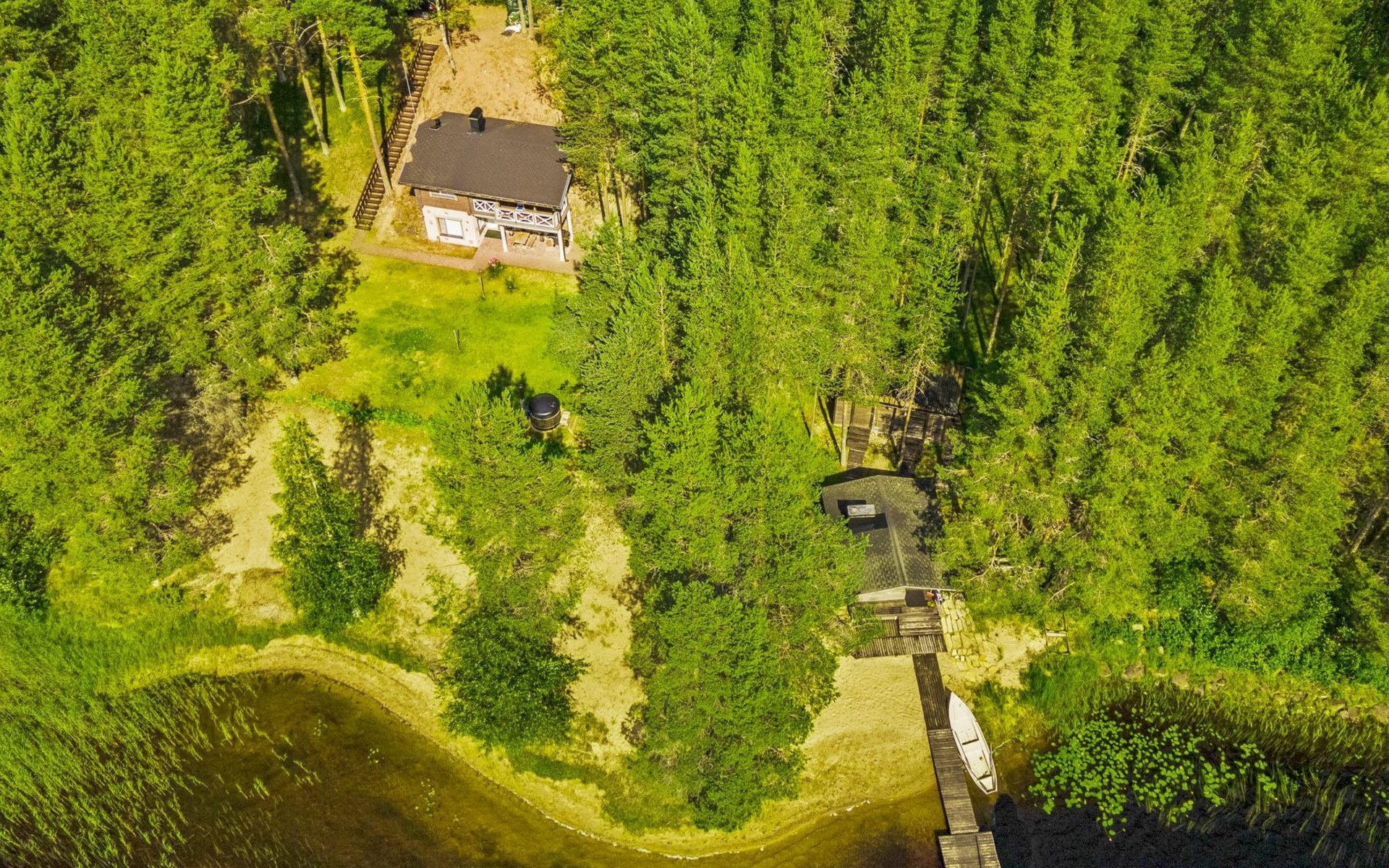 Log cabin (stone-built ground floor) on two floors, built in 2005. On the upper floor, living room with sofa bed, kitchen, bedroom (folding door) with 1 bed (width 140 cm), covered porch. On the ground floor, sauna (electric sauna stove), washroom/WC, living room with fireplace, bedroom (folding door) with double bed (width 140 cm). 2 televisions. In addition, PlayStation 2 console with some games, gas grill, and mosquito trap (so-called mosquito magnet). Water to the cabin comes from the spring.