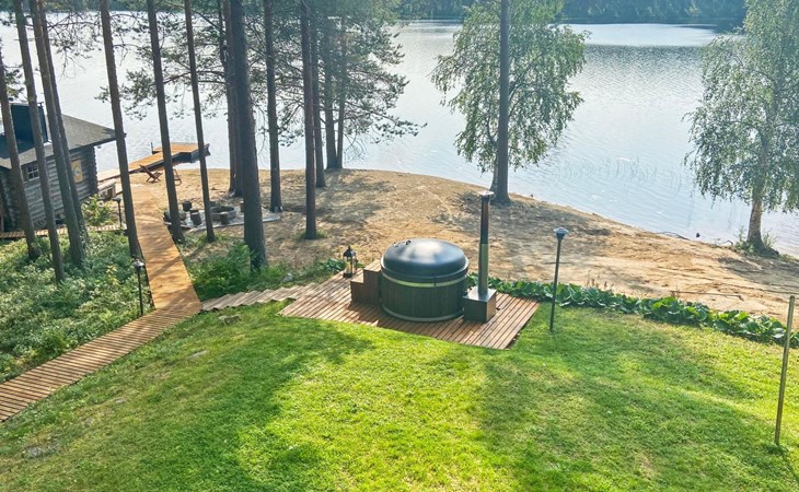 You can rent the hot tub from the owner for additional price by separate agreement. Price 200€/1-4 days and 300€/5-7 days. Caretaker fills the hot tub up and begins to heat it. Customer takes care of further heating and can use the hot tub during the whole rental period (water won't be changed). During winter the customer takes care of that it doesn't freeze and after usage empties it. Cozy cabin by the lake. Electric outboard motor for rent. Also, possibility for renting fishing rods, jigs, ice drill and other fishing gear. Yard games, dart board, croquet, Finnish throwing game Mölkky and badminton court.