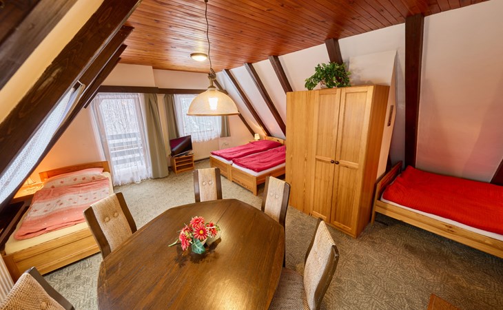 Svoboda nad Úpou 2 km van Janské Lázně: Historische villa "Svoboda nad Úpou", van 3 verdiepingen, vrijstaand, bouwjaar 1906, gerenoveerd in 2021. In de plaats, 300 m van het centrum, rustige ligging, 100 m van de bosrand, 2 km van het skigebied. Voor medegebruik: tuin. Voor alleengebruik: terrein 1.200 m2. Tuinmeubelen, barbecue. Beschikbaar: bowlingbaan. Parkeerplaats (voor 5 auto's) op het terrein. Winkel 500 m, supermarkt 400 m, restaurant 300 m, bushalte "Svoboda nad Úpou, Maršov I" 300 m, thermaalbad "JANské Lázně" 3 km. Midgetgolf 3 km, wandelroutes 100 m vanaf het huis, kabelbaan 3 km, skilift 2 km, stoeltjeslift 2 km, skipisten 2 km, skiverhuur 2 km, skibushalte 500 m, skischool 2 km, rodelbaan 3 km, langlaufloipe 10 m. Attracties in de buurt: Stezka korunami stromů Janské Lázně 4 km, Aquacentrum JAnské Lázně 3 km, Relax Park Pec pod Sněžkou / Sněžka 13 km, Adršpašské skály 30 km, Zoo Safari Dvůr Králové 30 km, Aquapark Vrchlabí 16 km. Bekende skigebieden kunnen gemakkelijk worden bereikt: Černá Hora/Svoboda nad Úpou 2 km, Černá Hora/Janské Lázně 3.5 km. Bekende meren kunnen gemakkelijk worden bereikt: Dolce TRutnov 8 km. De eigenaar accepteert geen jeugdgroepen.