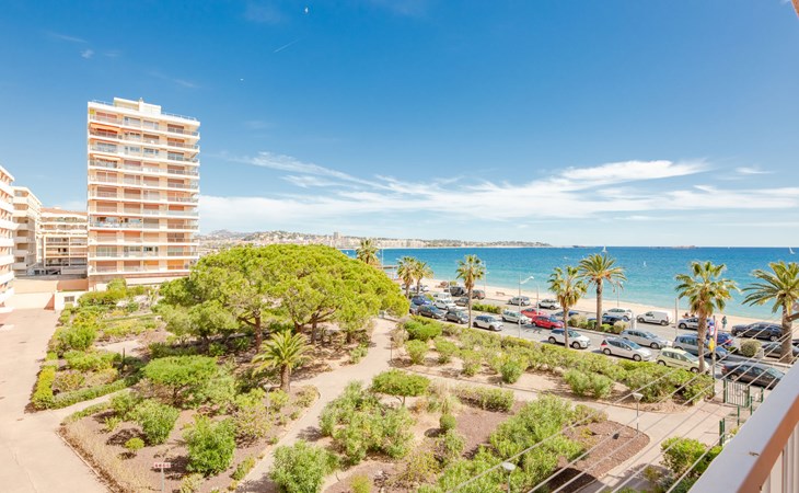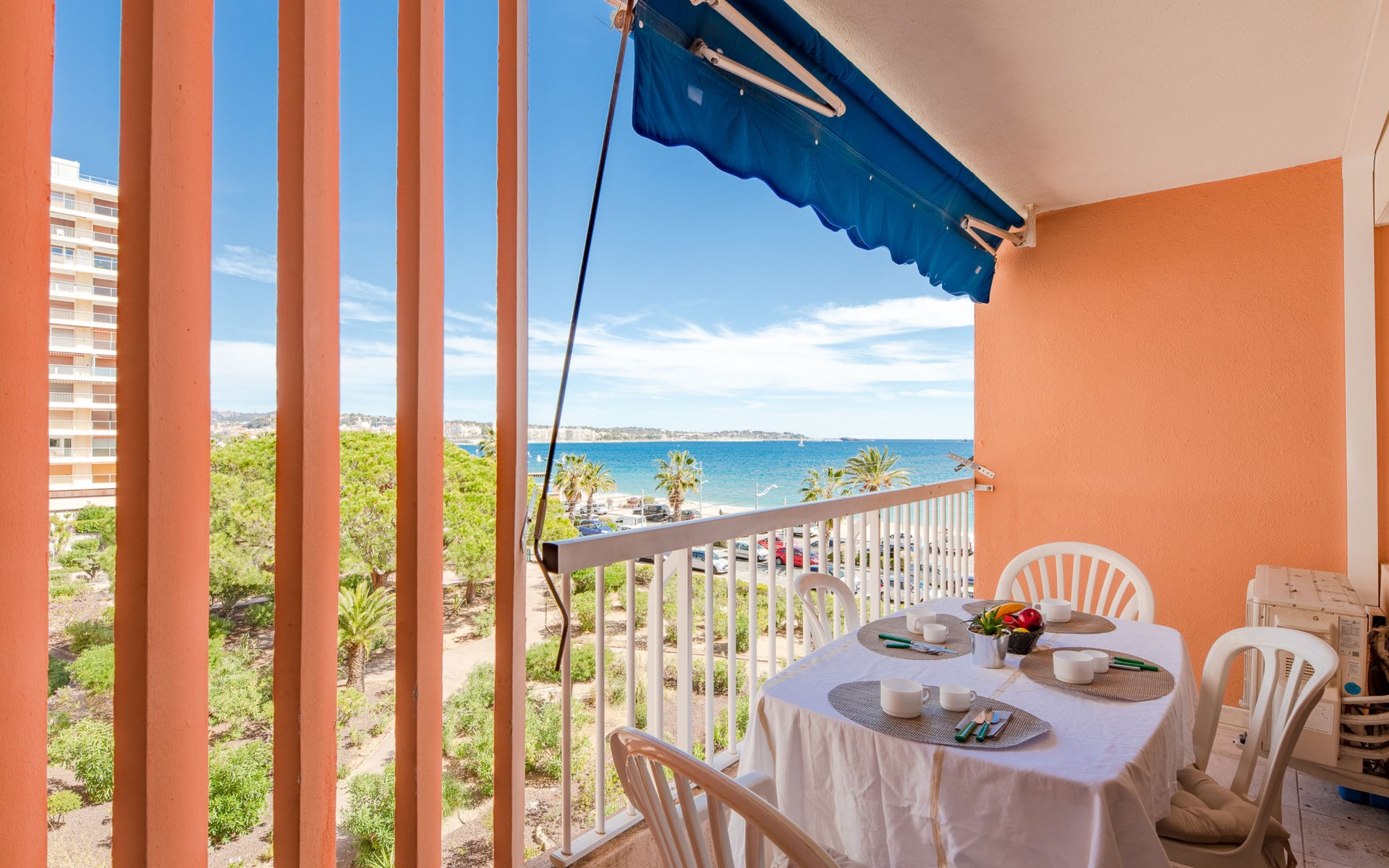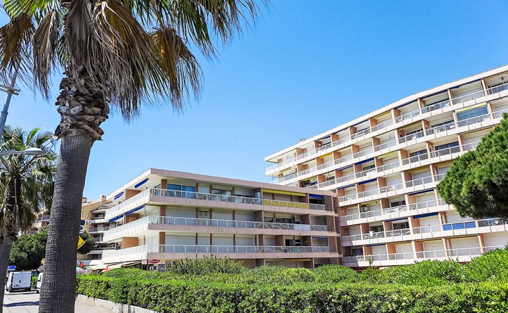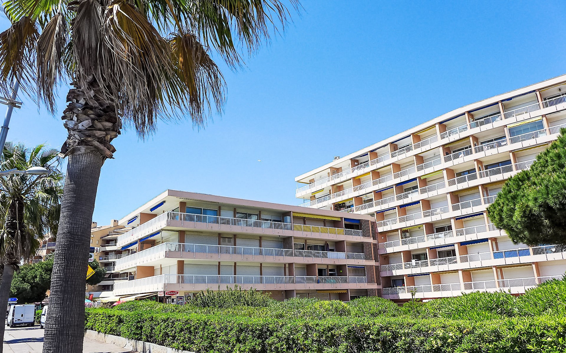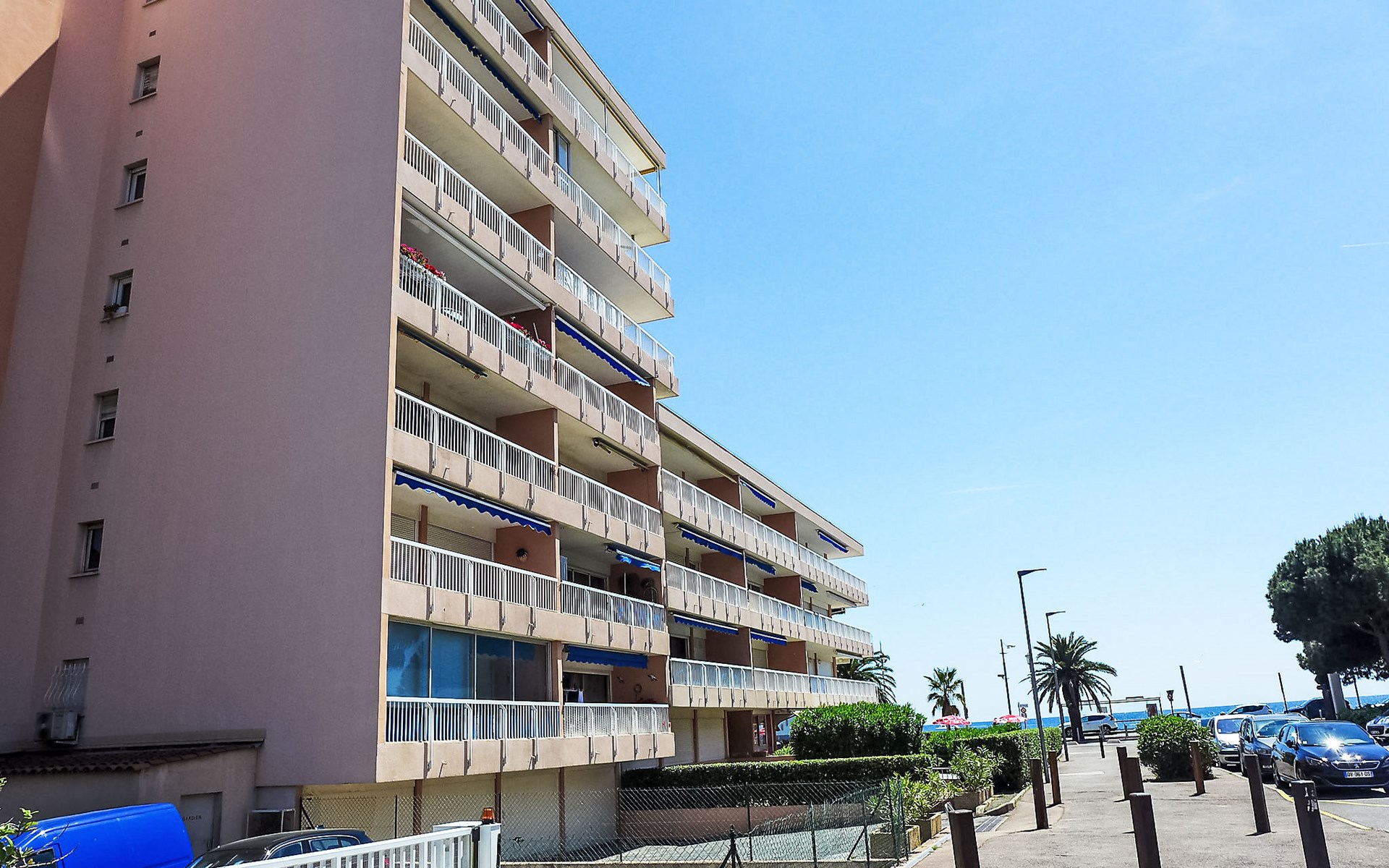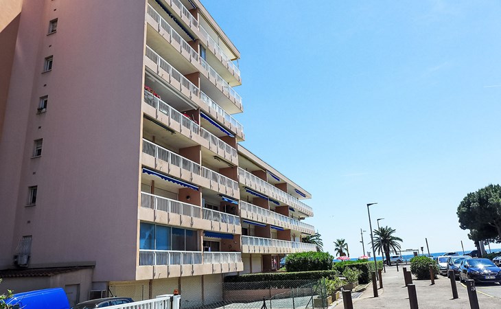 Fréjus Plage: Appartementencomplex "Le Méditerranée", van 3 verdiepingen. 40 m van zee, 40 m van het strand. Supermarkt, restaurant 50 m, bakkerij 5 m, bushalte "Oasis" 290 m, station "Saint-Raphaël Valescure" 2 km, zandstrand "Plages de Fréjus" 40 m, duikschool 200 m. Jachthaven 100 m, golfterrein (18 holes) 6 km. Attracties in de buurt: Cannes 40 km, Saint-Tropez 40 km, Nice 70 km, Gorges du Verdon 90 km. Bekende meren kunnen gemakkelijk worden bereikt: Sainte-Croix 90 km. Wandelgebied Estérel 8 km.