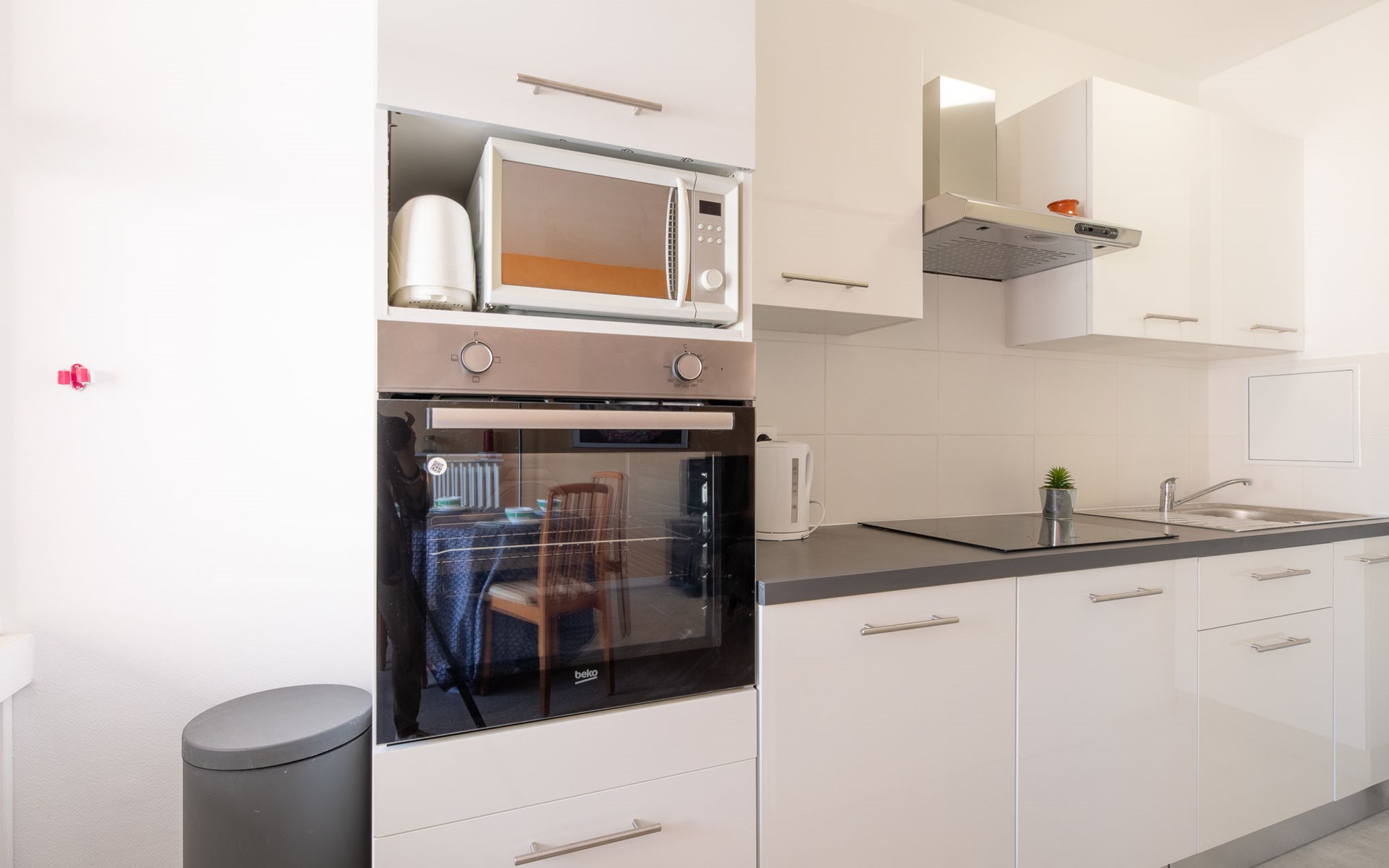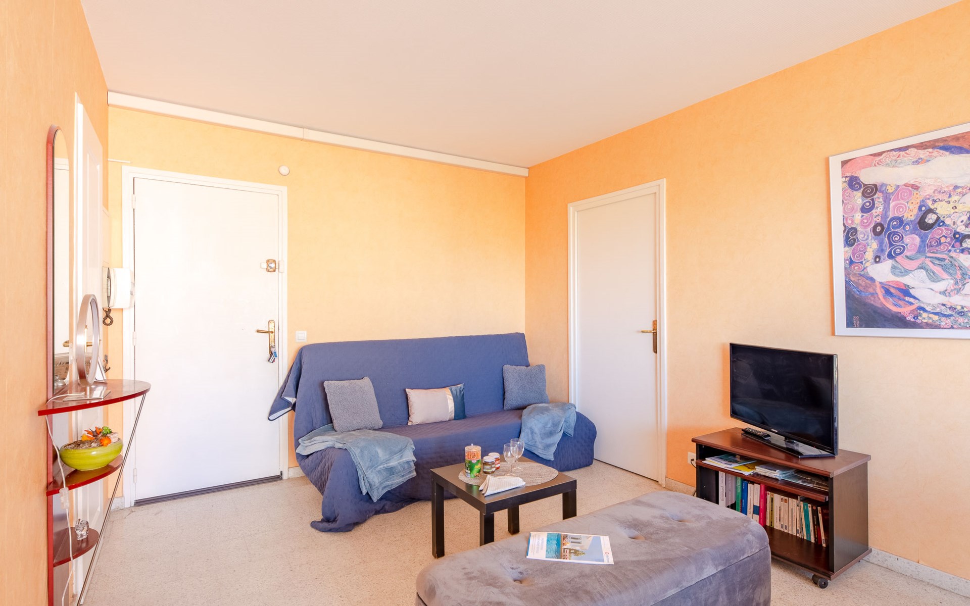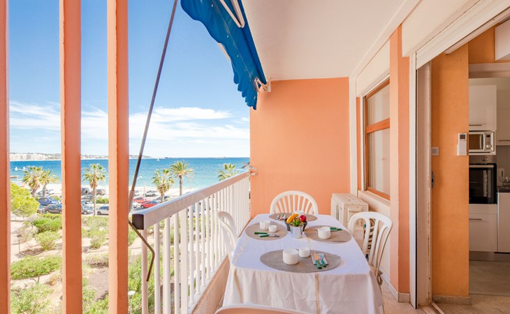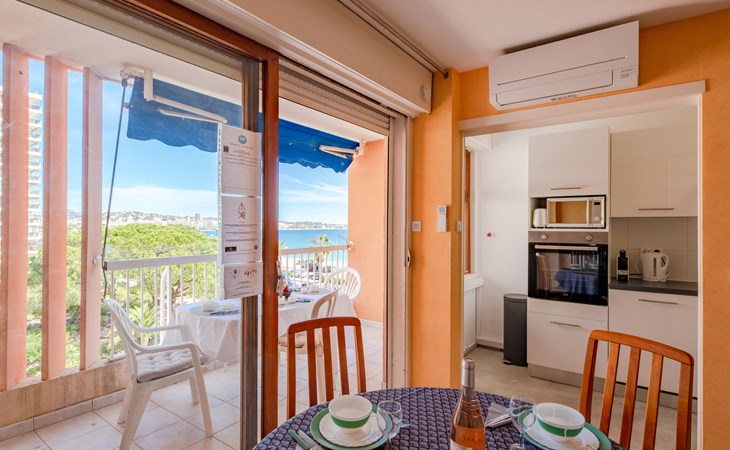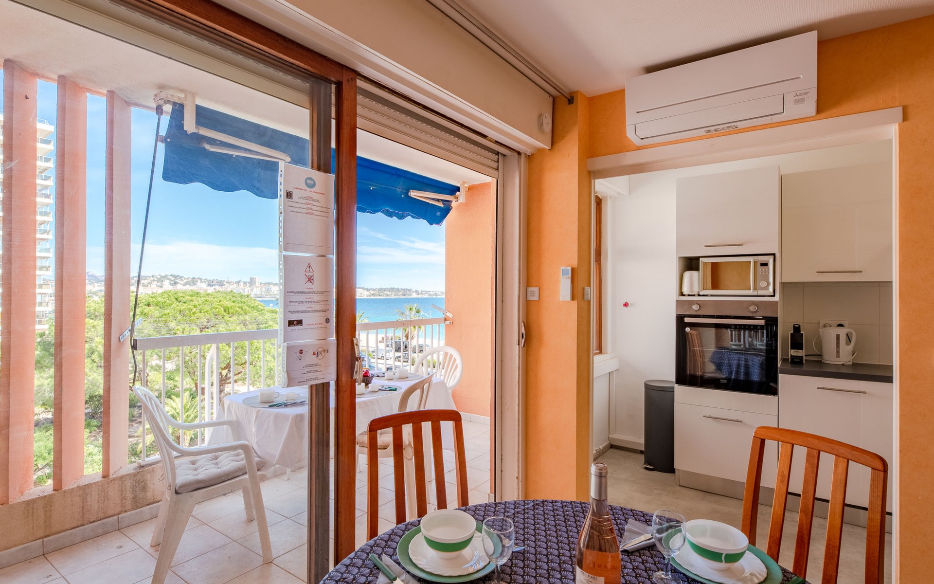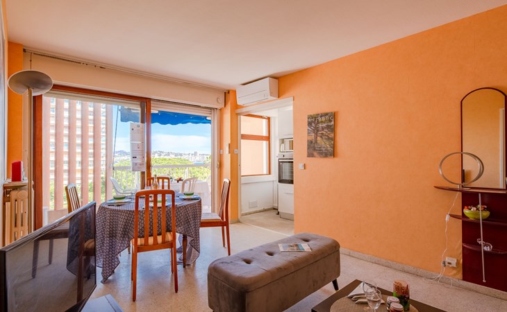 Fréjus Plage: Appartementencomplex "Le Méditerranée", van 3 verdiepingen. 40 m van zee, 40 m van het strand. Supermarkt, restaurant 50 m, bakkerij 5 m, bushalte "Oasis" 290 m, station "Saint-Raphaël Valescure" 2 km, zandstrand "Plages de Fréjus" 40 m, duikschool 200 m. Jachthaven 100 m, golfterrein (18 holes) 6 km. Attracties in de buurt: Cannes 40 km, Saint-Tropez 40 km, Nice 70 km, Gorges du Verdon 90 km. Bekende meren kunnen gemakkelijk worden bereikt: Sainte-Croix 90 km. Wandelgebied Estérel 8 km.