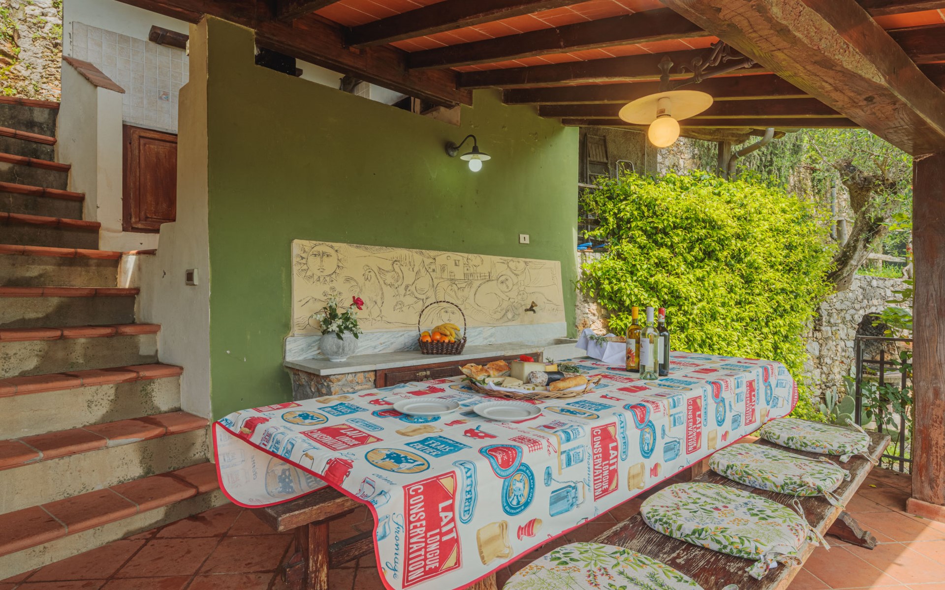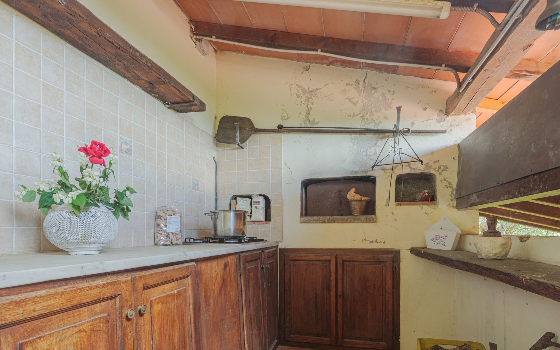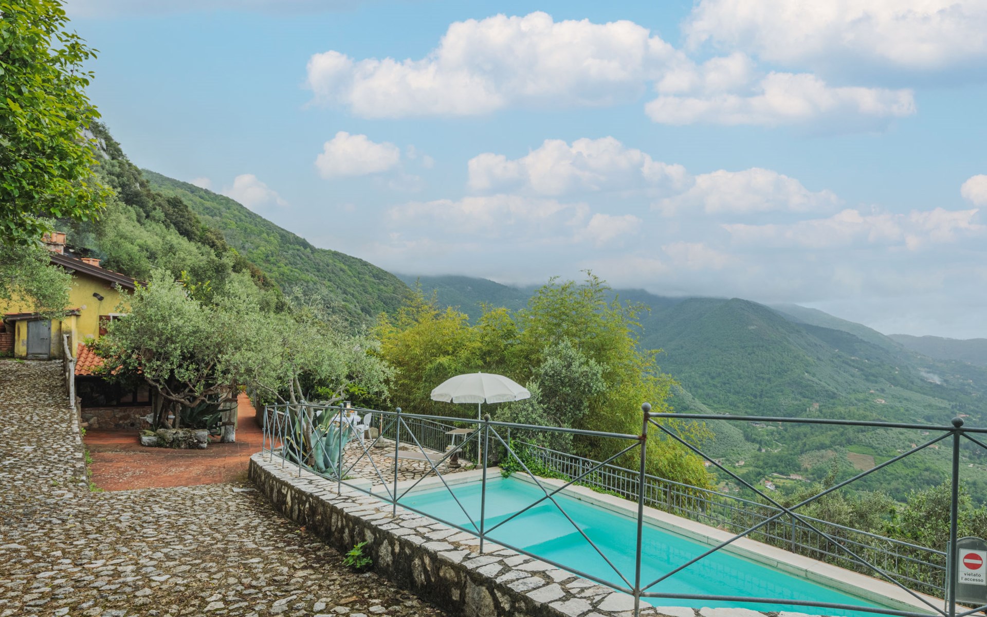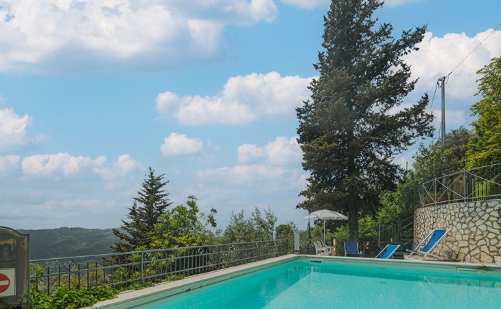 Greppolungo 6 km van Camaiore: Mooi huis "La Grotta", 380 m boven zeeniveau, vrijstaand. Huurobject bestaande uit hoofd-/ bijgebouw boven Greppolungo, 6 km van het centrum van Camaiore, 300 m van het centrum van Greppolungo, buiten de plaats, 41 km van het centrum van Pisa, verhoogde ligging tegen een helling, 14 km van zee, 14 km van het strand, te midden van groen. Voor alleengebruik: tuin op verschillende niveaus, 1 ha (omheind) met bomen, boomgaard, openluchtzwembad (8 x 6 m, 50 - 175 cm diepte, seizoensgebonden beschikbaarheid: 07.Mei. - 17.Sep.). Buitendouche, poolhouse met fornuis, onderhoud zwembad door de eigenaar/tuinman. In het huis: centrale verwarming, Verwarming ter plaatse te betalen (28.Mrt. - 30.Okt.), verwarming alleen beschikbaar van 31.Okt. - 27.Mrt.. 300 m voetpad naar het huis. Openbare parkeerplaatsen 300 m. Levensmiddelenwinkel 4 km, restaurant 300 m, bushalte, treinstation "Viareggio" 16 km, zandstrand "Lido di Camaiore" 14 km. Attracties in de buurt: Forte dei Marmi 21 km, Lucca 39 km, Collodi (Pinocchio Park) 57 km, Corchia Park 31 km, Riomaggiore (5 Terre) 81 km, Firenze 124 km. Bekende meren kunnen gemakkelijk worden bereikt: Torre del Lago 24 km, Lago di Massaciuccoli 30 km. Wandelgebied Grotta dell´Onda (Casoli) 9 km. Auto noodzakelijk.