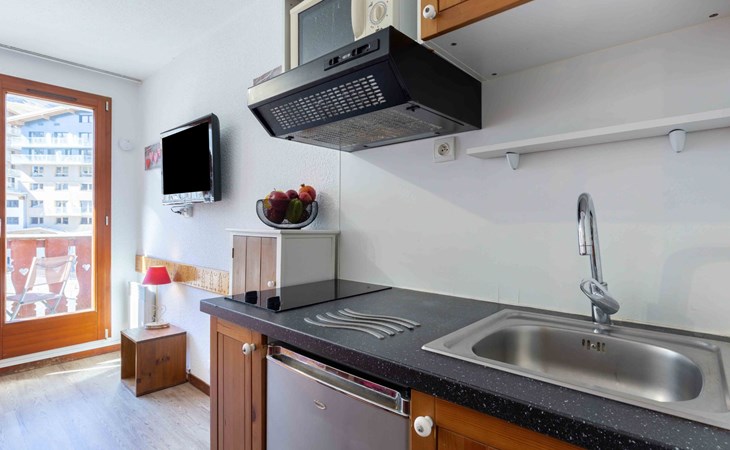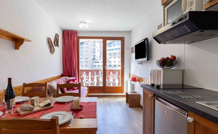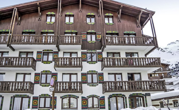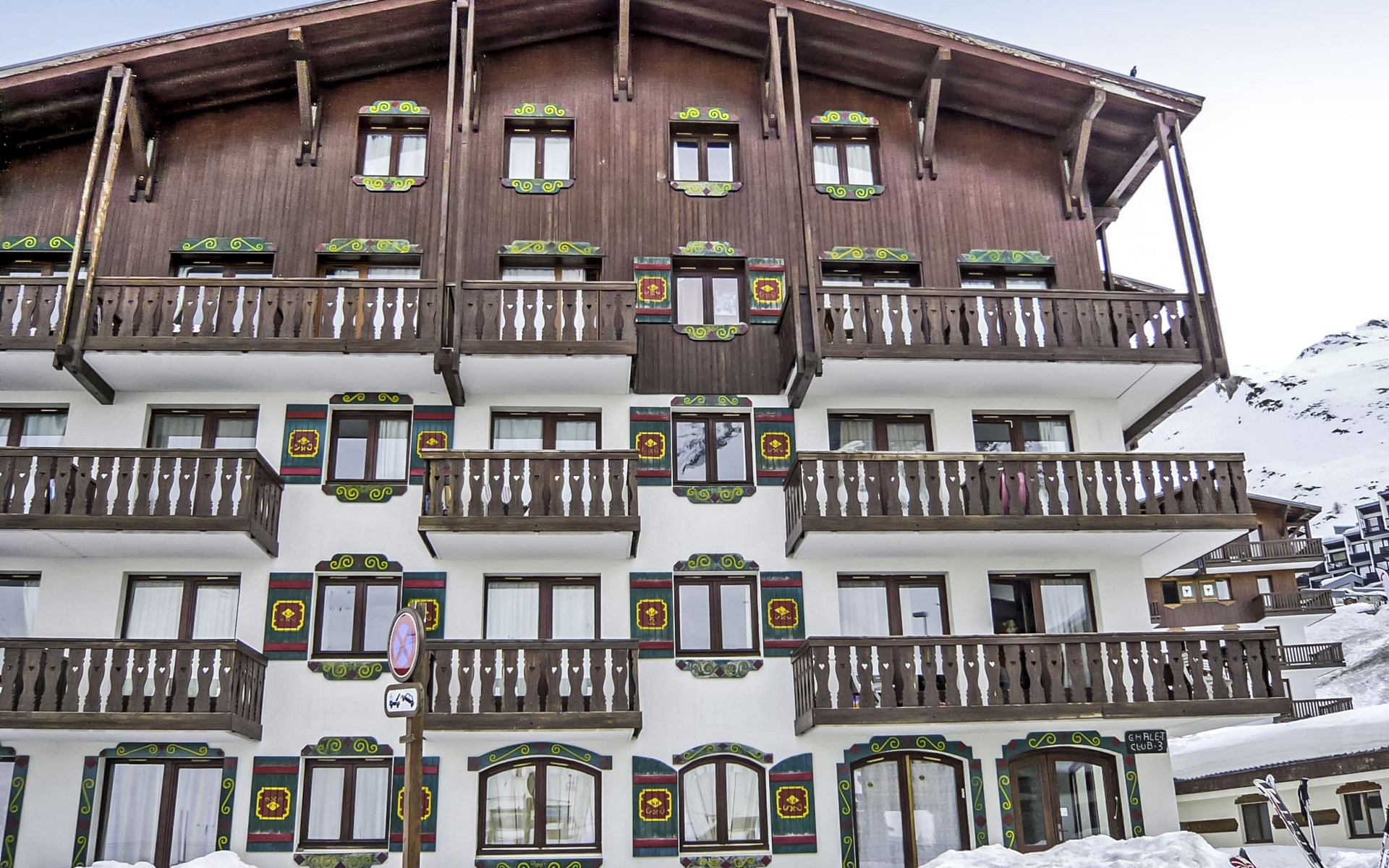 Tignes Val Claret: Residentie "Chalet Club (Val Claret)", van 5 verdiepingen. In het complex: lift, berging voor ski's, centrale verwarming. Supermarkt 200 m, restaurant 100 m, bushalte 200 m, overdekt zwembad 2.2 km. Sportcentrum 800 m, ski faciliteiten 150 m, skibushalte 10 m, skischool 200 m. Gratis skibus. Vergelijkbare accommodaties kunnen worden geboekt.