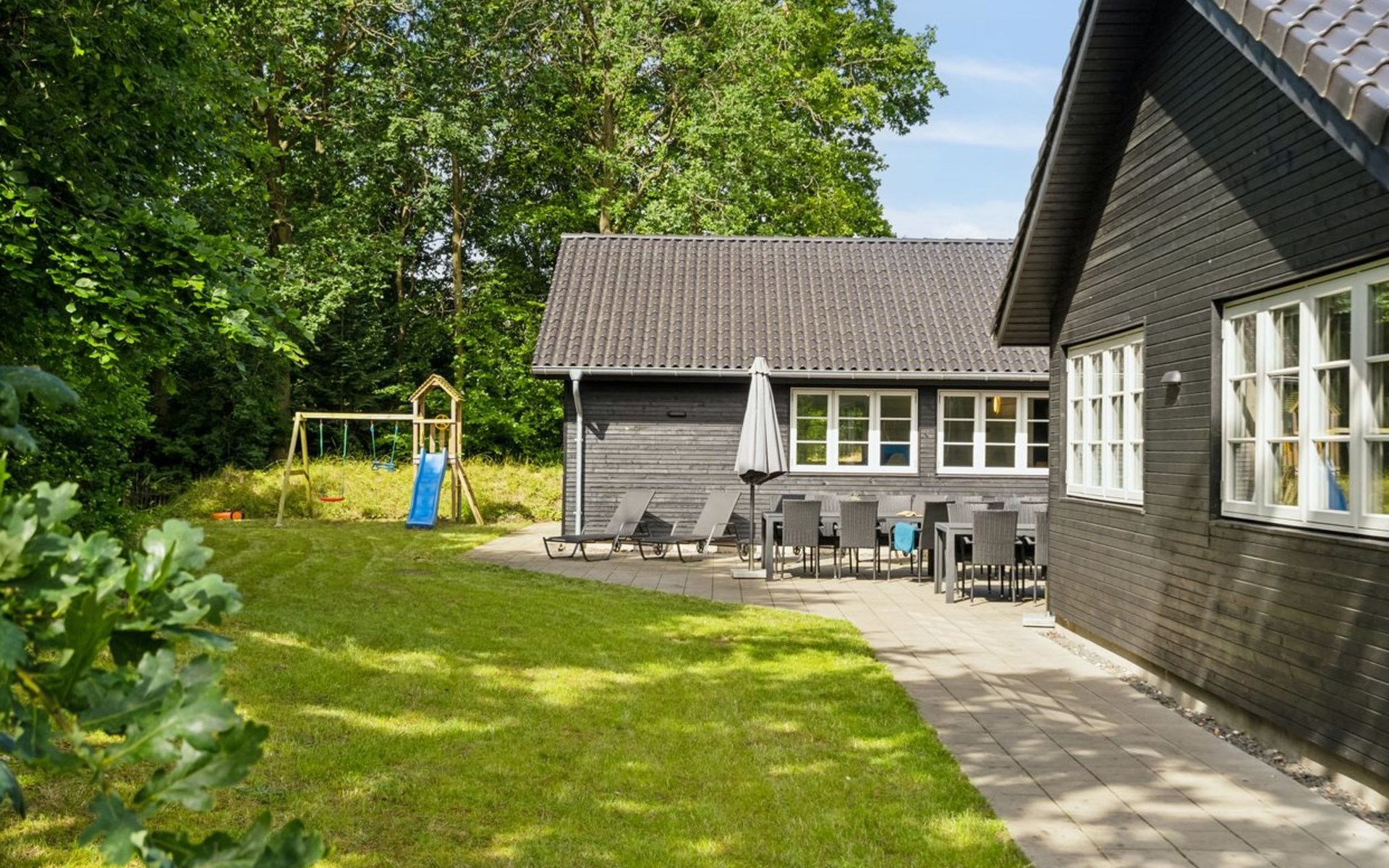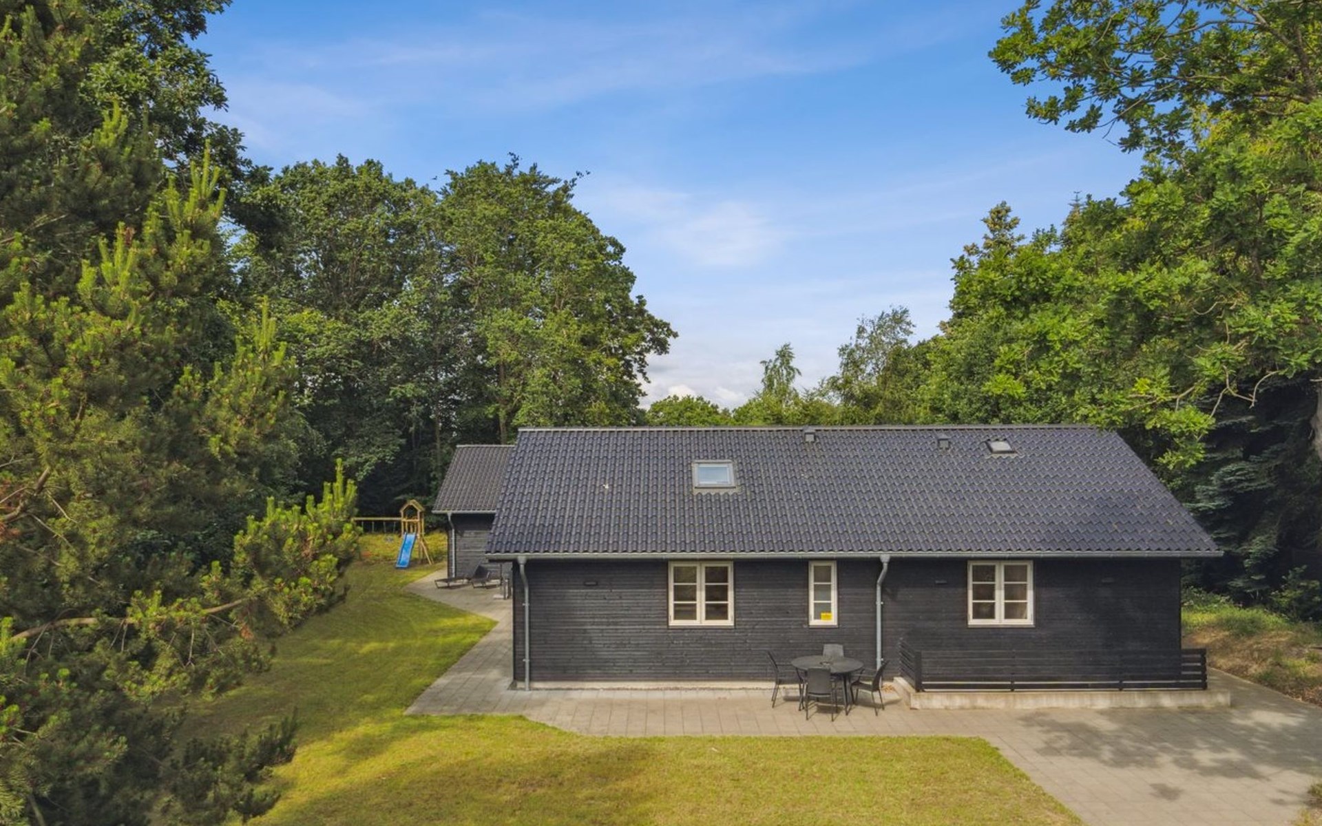 Eengezinswoning, bouwjaar 2021. 200 m van zee. Voor alleengebruik: wild terrein 1.775 m2, overdekt zwembad. Barbecue, kinderspeelplaats (schommel). In het huis: sauna, tafelvoetbal, wasmachine, droger. Parkeerplaats bij het huis. Levensmiddelenwinkel 3 km. De eigenaar accepteert geen jeugdgroepen.