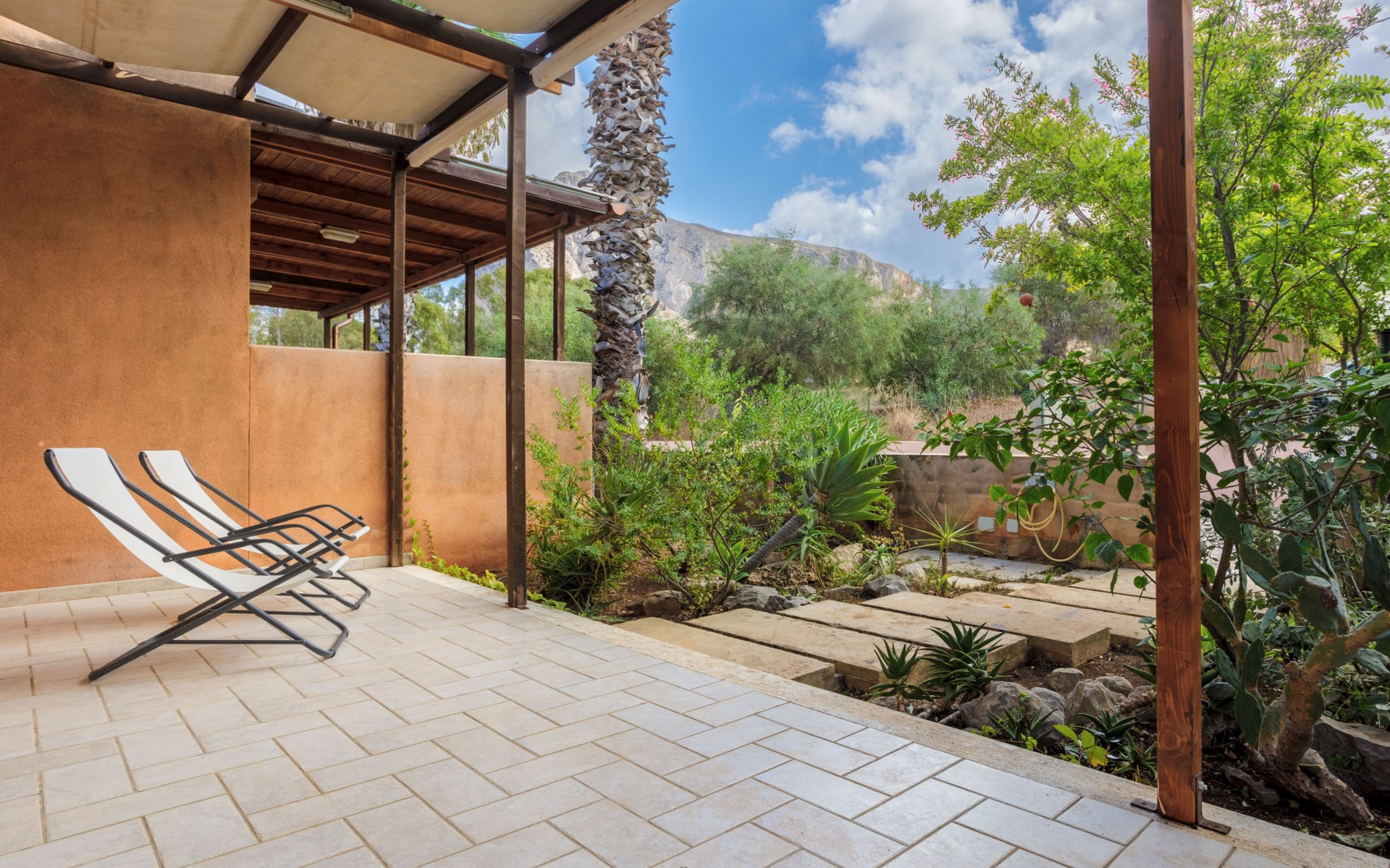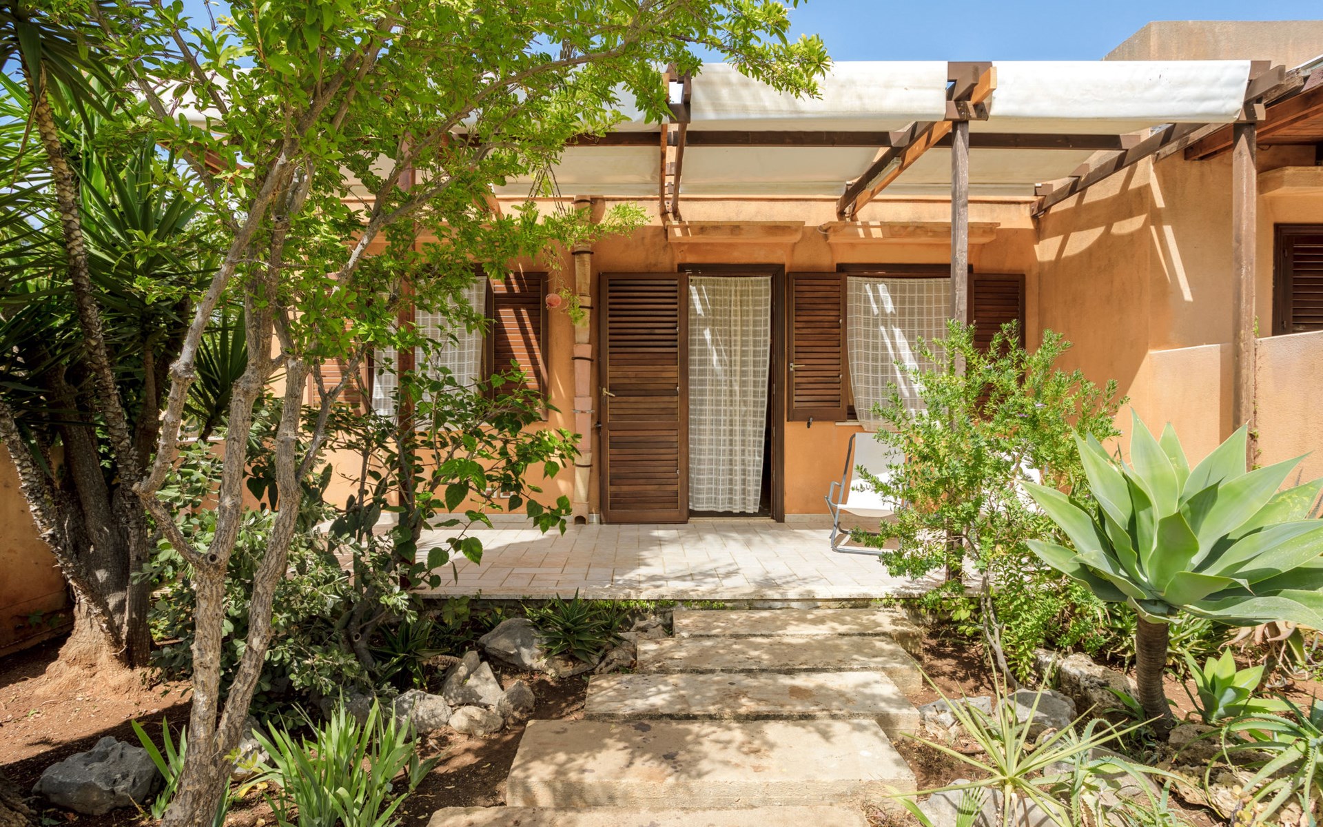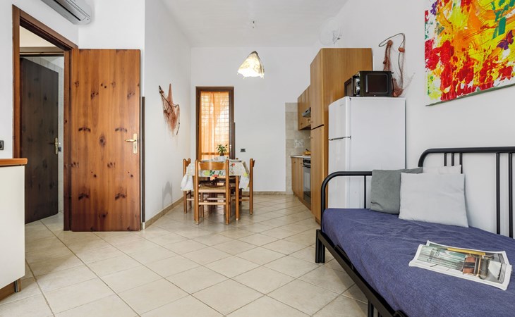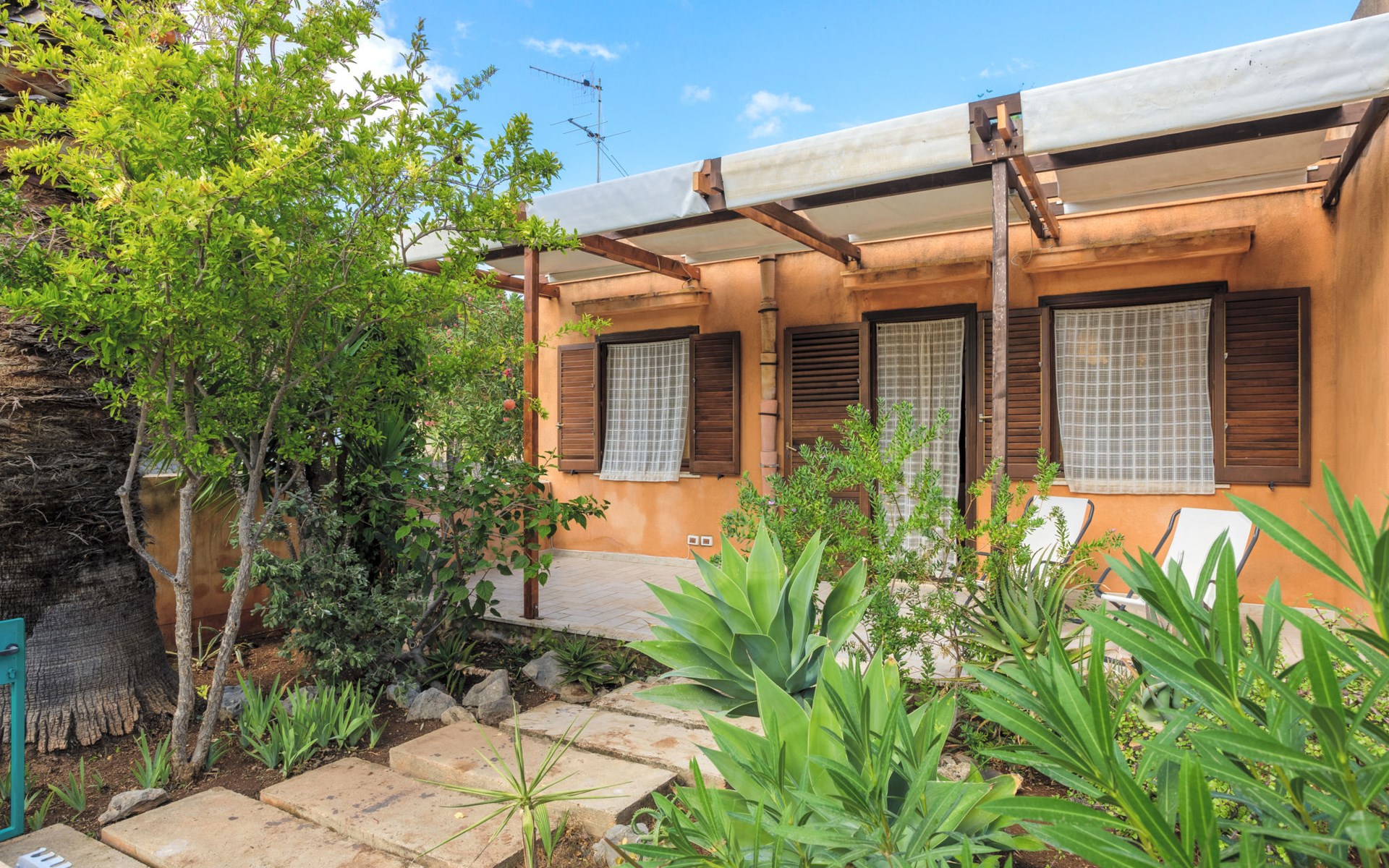 Twee onder één kap woning. In de plaats San Vito lo Capo, 38 km van het centrum van Trapani, zonnige ligging, gebied met weinig verkeer, 400 m van zee, 450 m van het strand. Voor alleengebruik: terrein 100 m2 (omheind), kleine tuin op verschillende niveaus. Levensmiddelenwinkel 400 m, supermarkt 550 m, restaurant 600 m, bar 150 m, bushalte 700 m, treinstation "Trapani" 38 km, zandstrand "San Vito lo Capo" 450 m. Attracties in de buurt: Faro di San Vito lo Capo 2.5 km, Lago di Venere 6.5 km, Grotta di Mangiapane 23 km, Erice 39 km, Faraglioni e Tonnara di Scopello 43 km, Parco Archeologico di Segesta 55 km. Wandelgebied Riserva Naturale dello Zingaro 12.5 km, Riserva Naturale Monte Cofano 23.5 km, Riserva Naturale Saline di Trapani 40 km. Auto noodzakelijk.