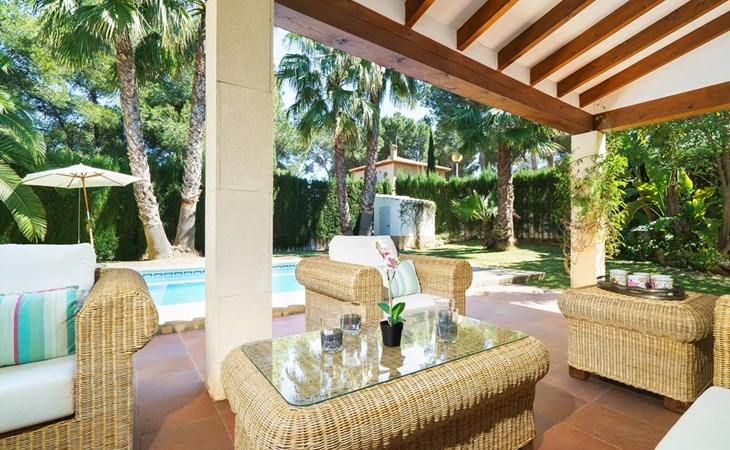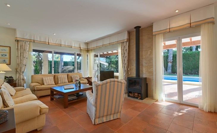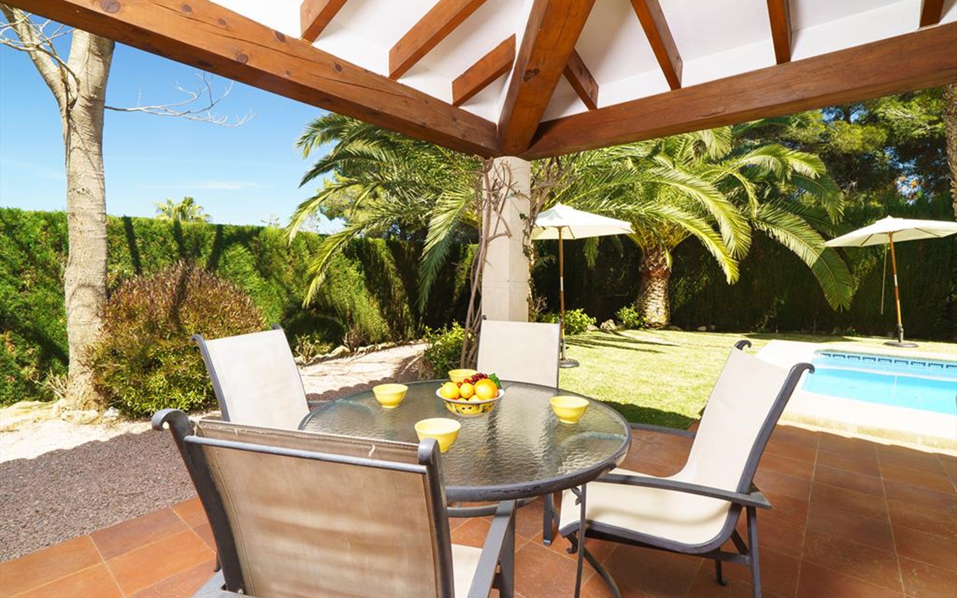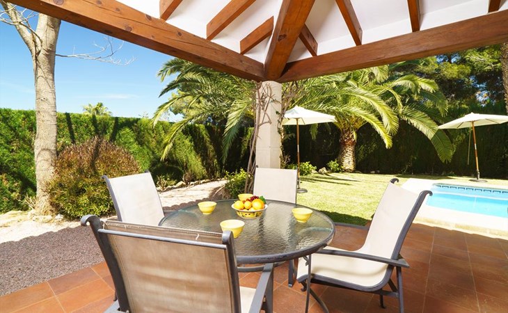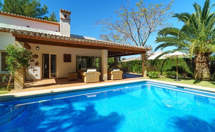 Grote en comfortabele villa met privé zwembad in Javea, Costa Blanca, Spanje voor 6 personen. De vakantievilla ligt in een residentiële omgeving, op 1 km van het strand van El Arenal, Javea en op 1 km van Mediterraneo, Javea.