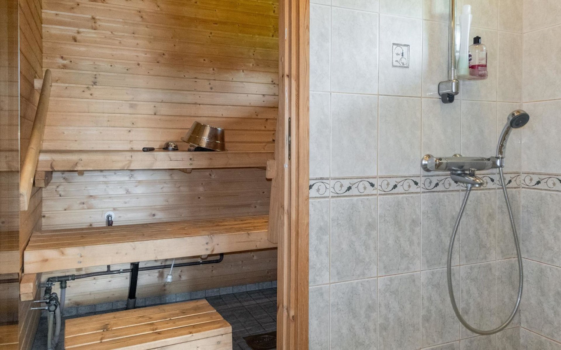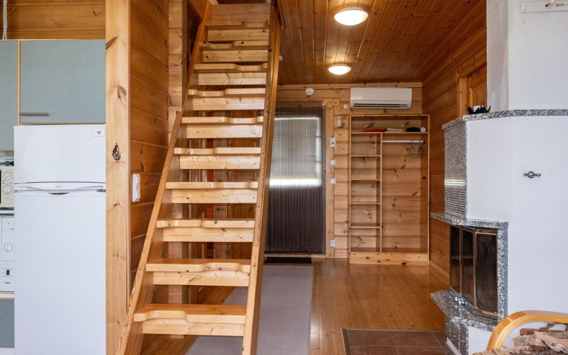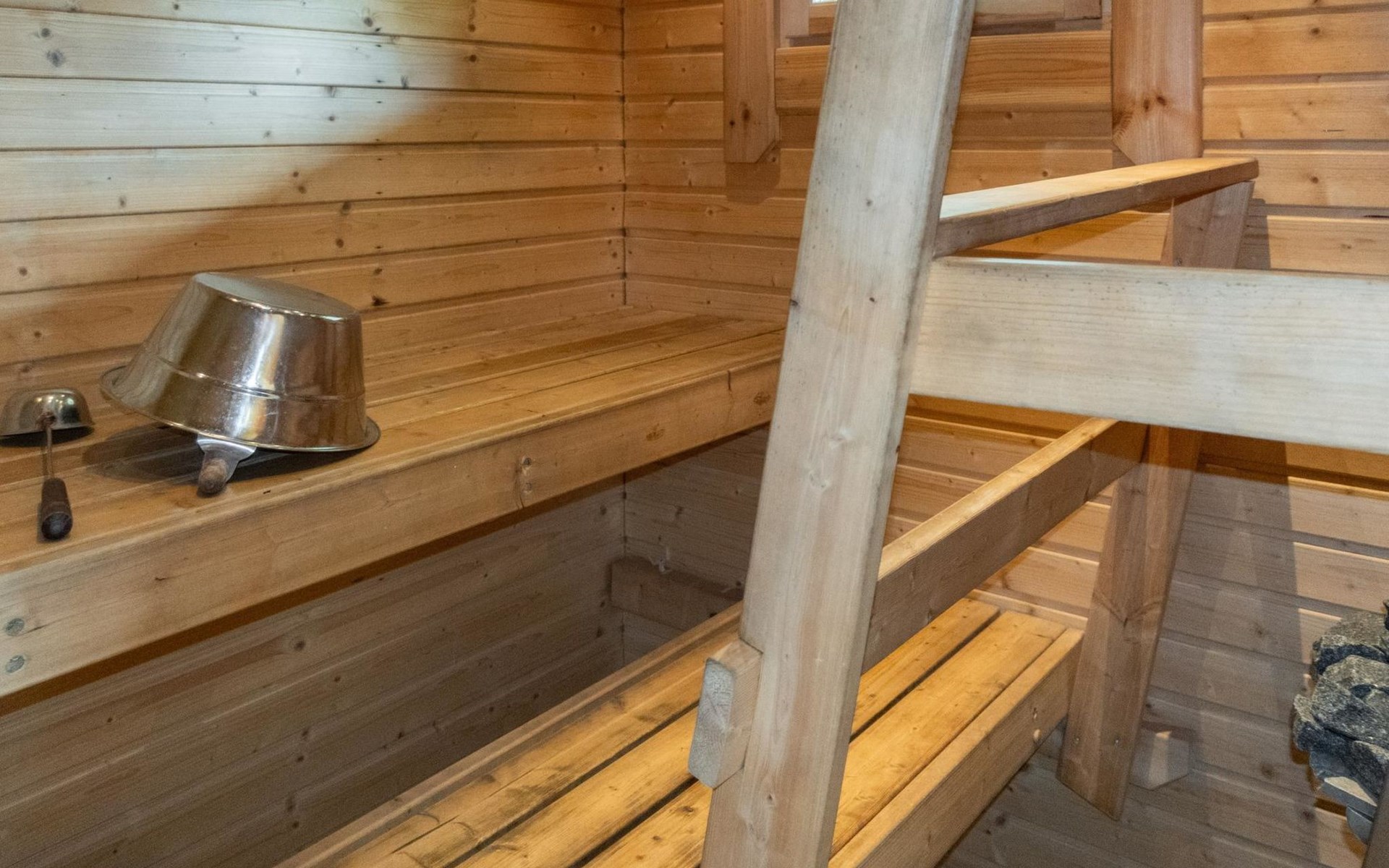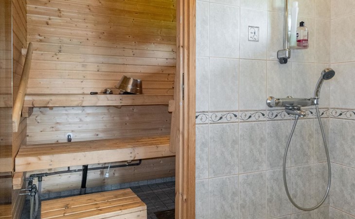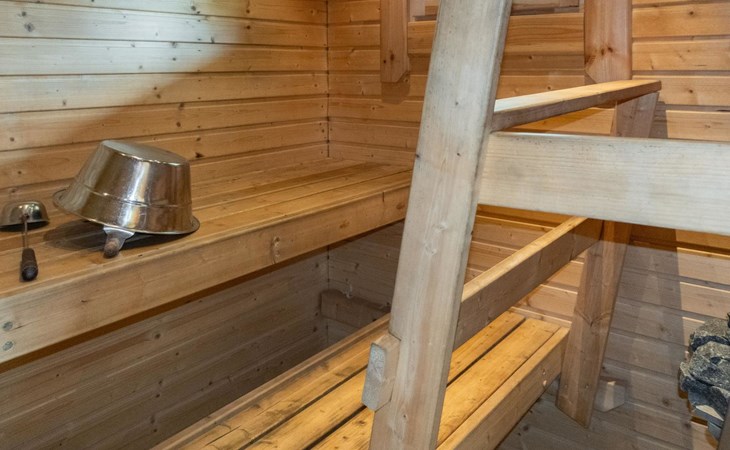 Sauna and washing facilities: The cabin’s sauna area includes an electric sauna and a spacious washing room. The washing room also has a washing machine.