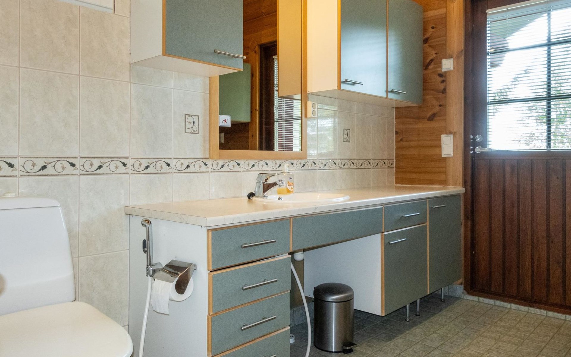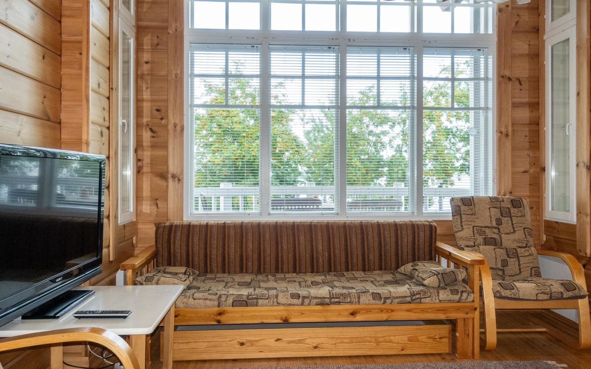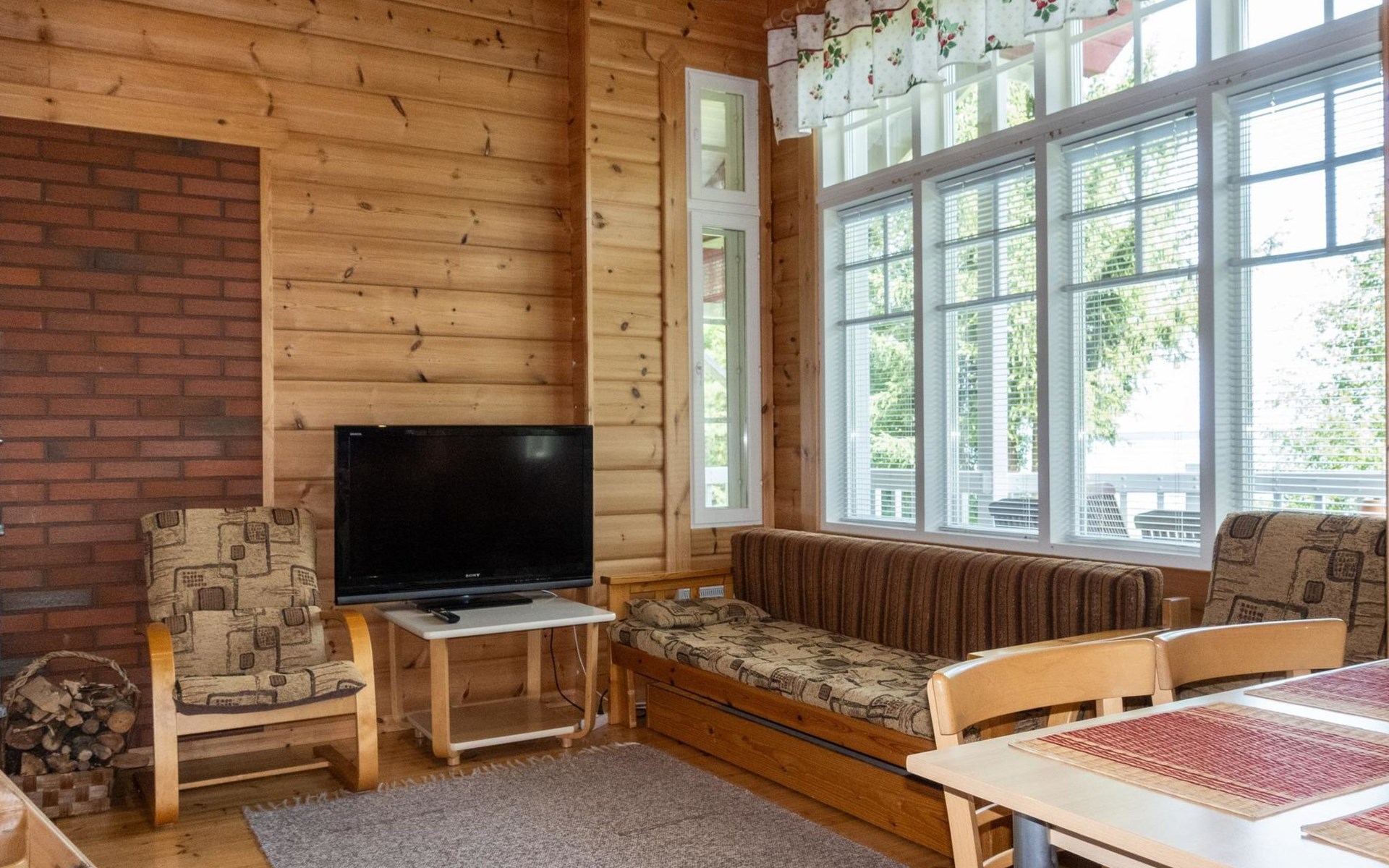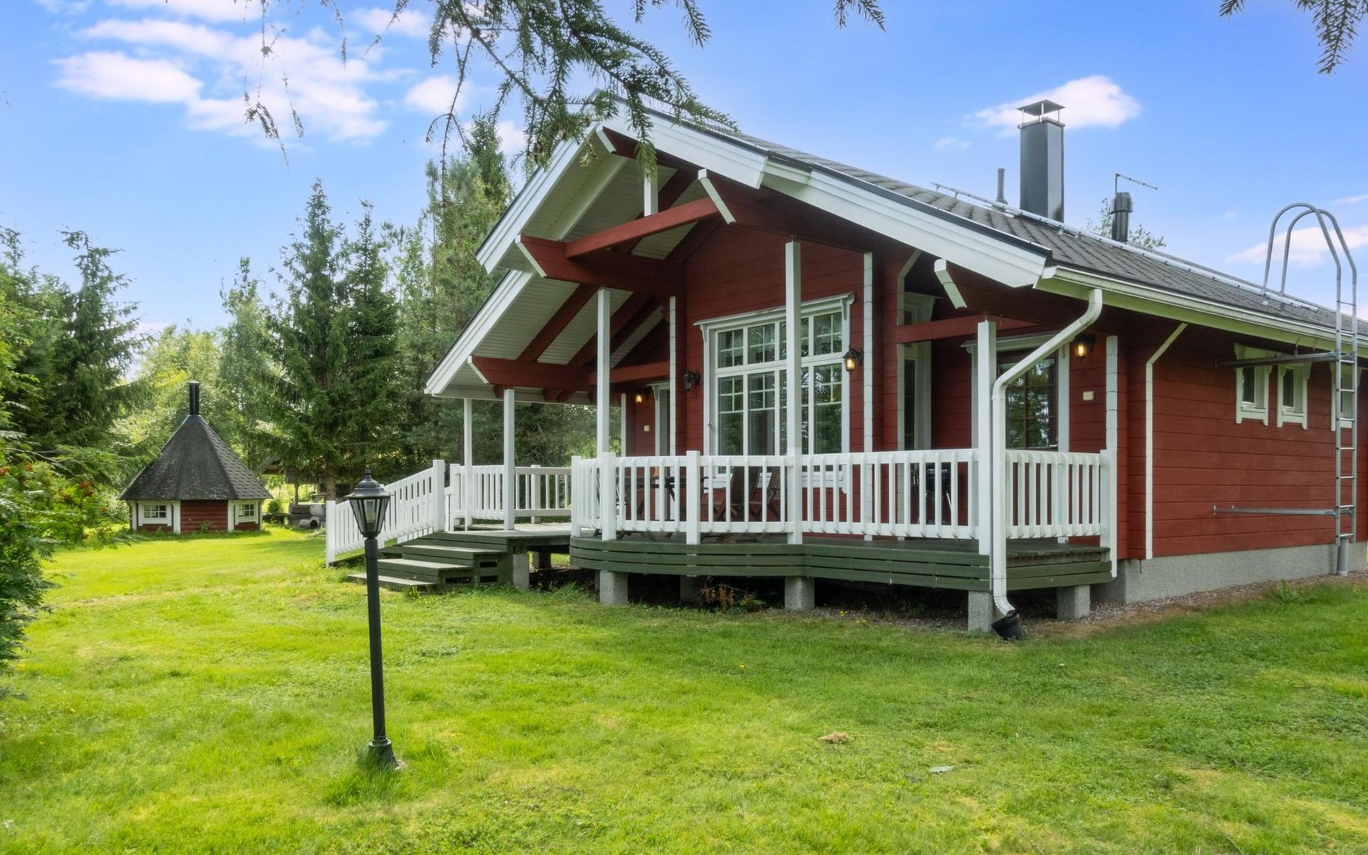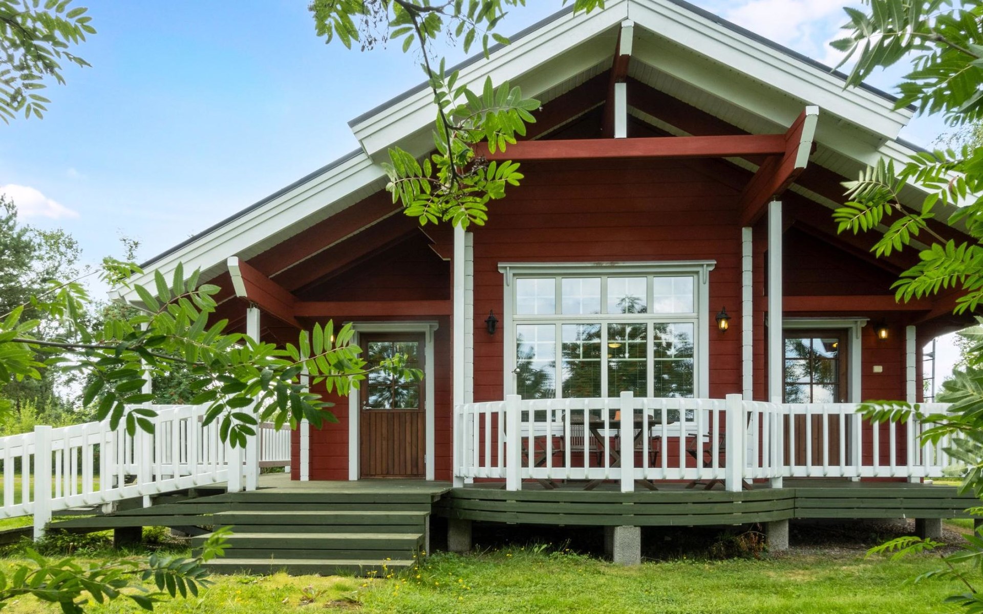 The cabin has wheelchair ramps to the entrance and terrace. The widths of the exterior and interior doors are sufficient for a wheelchair. However, there are low thresholds at the entrances and in the doorways of the sauna area. The kitchen counter and dining table in the cabin are lower than usual.
