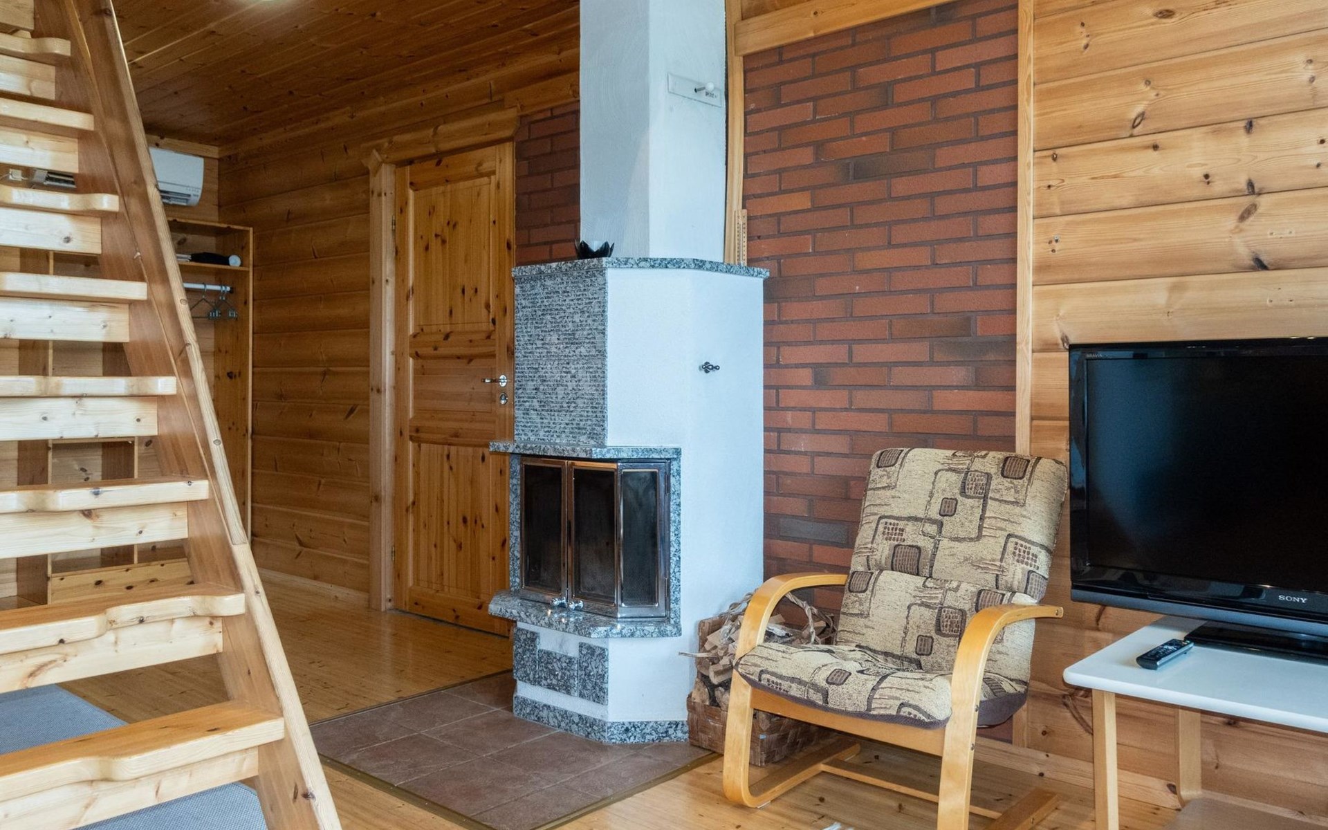 The log cabin includes the following spaces: Living Room/kitchen: The heart of the cabin, where you can spend time with family and friends, enjoying the cozy atmosphere.
