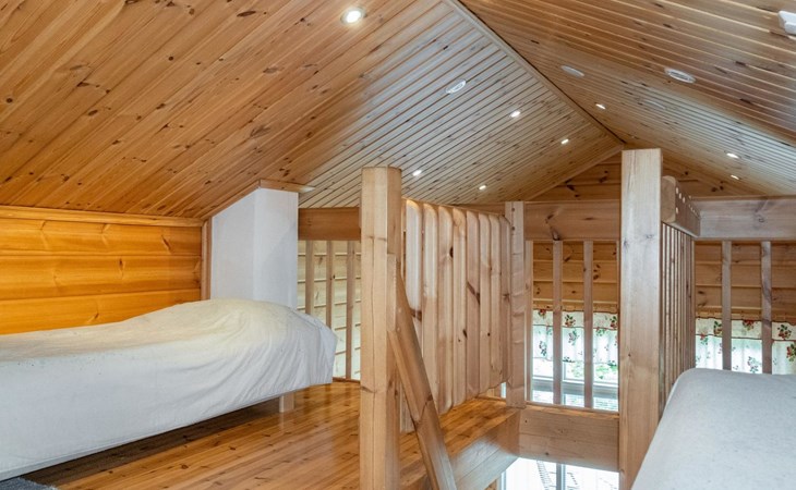 Loft: The loft has two low beds. The loft has a maximum height of 1.7 meters and steep stairs, making it best suited for children or young adults.