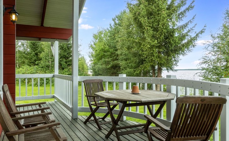 Terrace: A covered terrace on the lakeside offers a pleasant place to enjoy the lake view and cool off in the fresh outdoor air. The terrace can be accessed directly from the washroom.