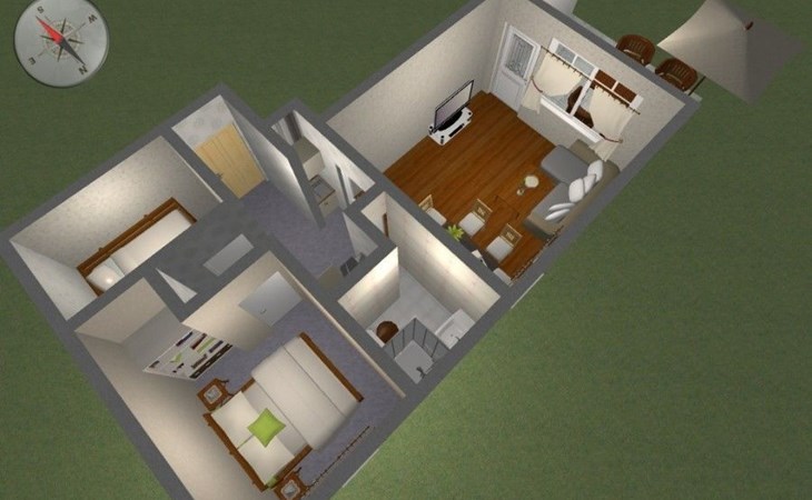 De sfeervolle woonkamer is voorzien van woonkamer met eethoek en open keuken. In de woonkamer vindt u een Flatscreen TV, radio en cdspeler. In de keuken heeft u de beschikking over een kookplaat, koelkast met vriesvakje, magnetron, toaster en Senseo en filterkoffieapparaat. Vanuit de woonkamer loopt u het terras op, waar u heerlijk geniet van de zon! Er zijn twee slaapkamers: een met tweepersoonsbed en een stapelbed. In de badkamer bevindt zich een douche, wastafel en toilet. Een kinderstoel en kinderbedje is beschikbaar. Op het zonnige terras is het heerlijk genieten.