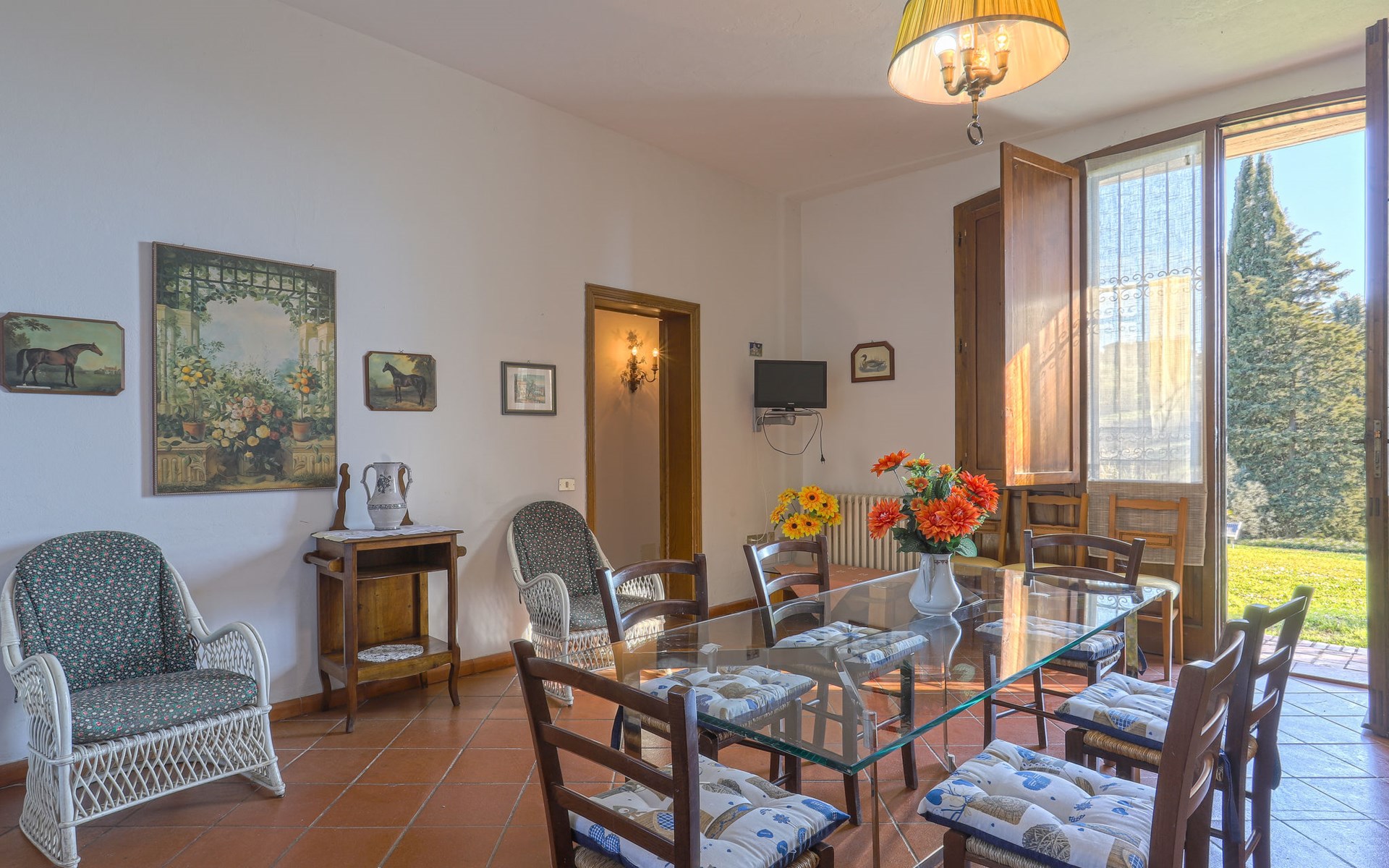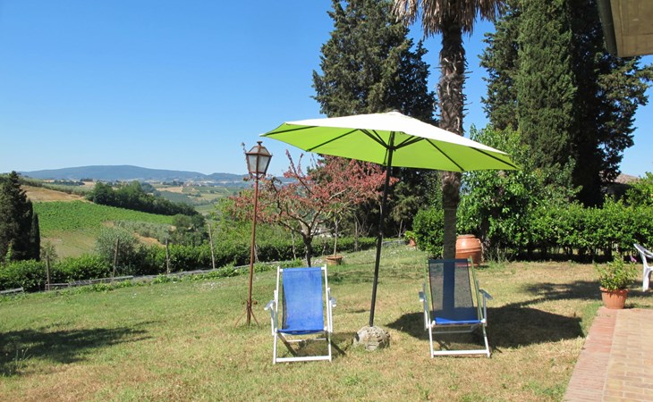 Certaldo: Gezellig op het wijngoed landbouwbedrijfje "Podere Conte Francesco", omgeven door bomen, velden en wijngaarden. 7 appartementen in de woning. 4 km van het centrum van Certaldo, 13 km van het centrum van San Gimignano, 57 km van het centrum van Firenze, geïsoleerde, zonnige, verhoogde ligging tegen een helling, 80 km van zee, 80 km van het strand, te midden van groen. Voor medegebruik: wild terrein met planten en bomen, wilde tuin, weide, boomgaard, openluchtzwembad (10 x 5 m, 150 cm diepte, seizoensgebonden beschikbaarheid: 02.Mei. - 03.Okt.). Buitendouche, tuinmeubelen, onderhoud zwembad door de eigenaar/tuinman. In het complex: Internet (WiFi), wasmachine (voor medegebruik, extra). 1.5 km lange toegangsweg (onverharde weg). Parkeerplaats op het terrein. Levensmiddelenwinkel 3 km, supermarkt 7 km, restaurant 7 km, bar 3 km, bushalte 3 km, treinstation "Certaldo" 7 km, zandstrand "Cecina Mare" 80 km, overdekt zwembad 7 km. Golfterrein (18 holes) 27 km, tennis 7 km, manege 3 km. Attracties in de buurt: Siena 45 km, Volterra 40 km, Pisa 83 km. Auto noodzakelijk. Baby uitrusting op aanvraag (incl.). De eigenaar woont op hetzelfde terrein. De woningen kunnen onderling van inrichting verschillen.