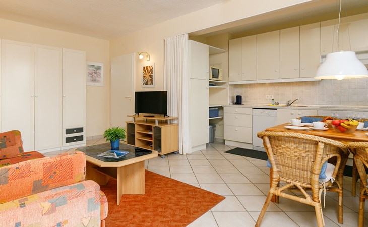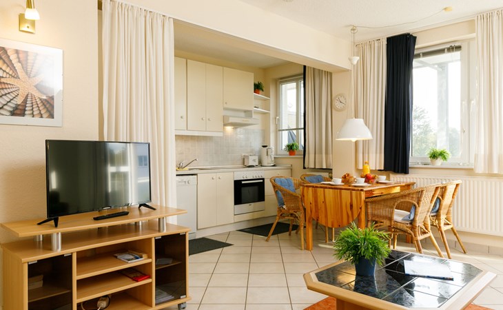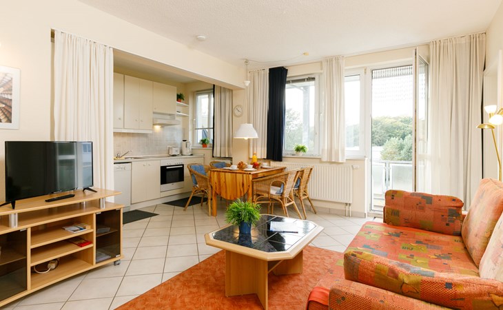 Appartementencomplex van 4 verdiepingen. In de plaats, 500 m van het centrum van Zinnowitz, 100 m van zee, 100 m van het strand. In het huis: lift, bergruimte voor fietsen, centrale verwarming. Parkeerplaats bij het huis. Supermarkt 650 m, bakkerij, café 270 m, bushalte 180 m, station 1 km, zandstrand 100 m, thermaalbad "Bernsteintherme" 240 m. Jachthaven 2.6 km, golfterrein (18 holes) 25 km, surfschool, tennis 750 m, midgetgolf 240 m. Lift tot de 3e verdieping.