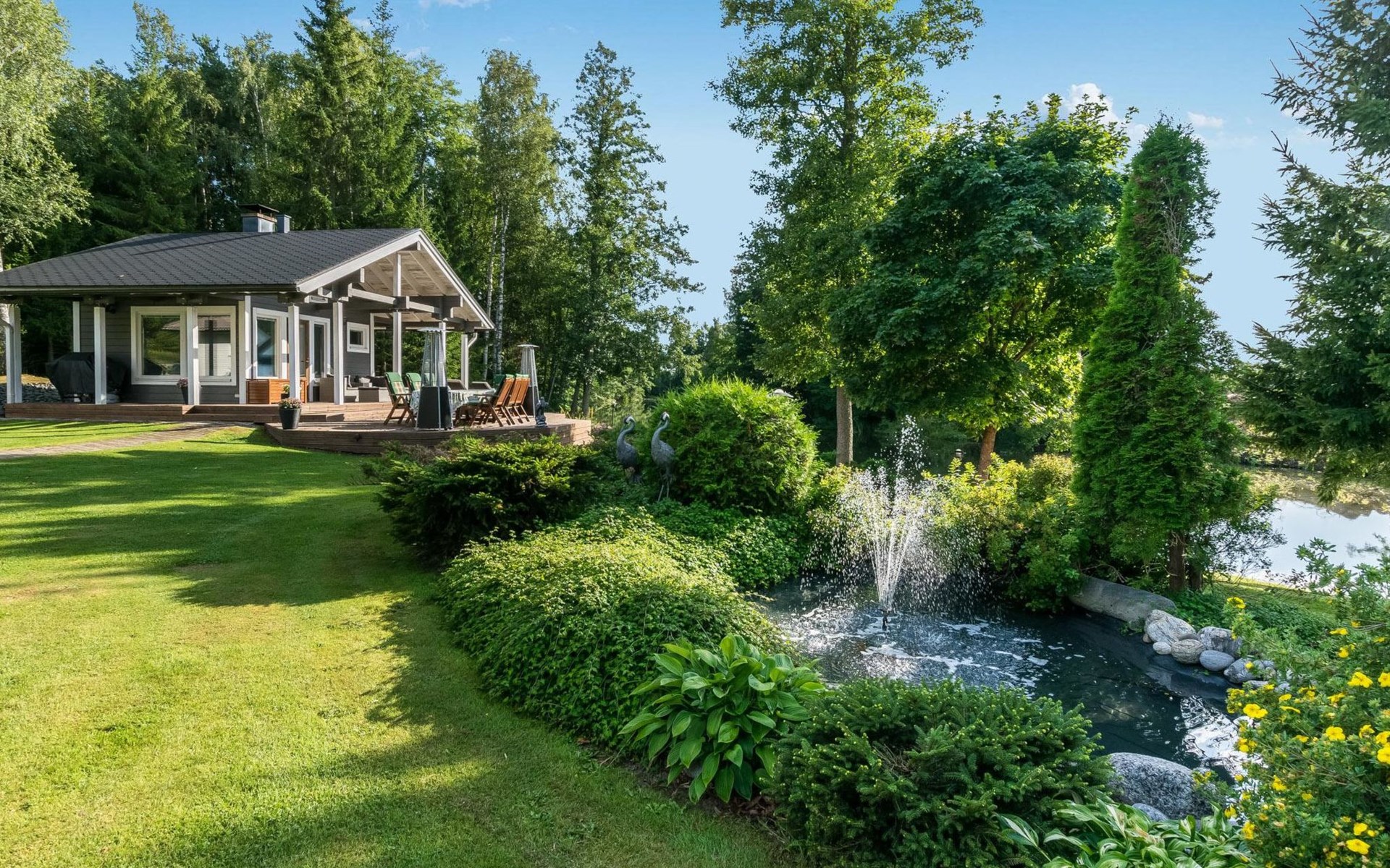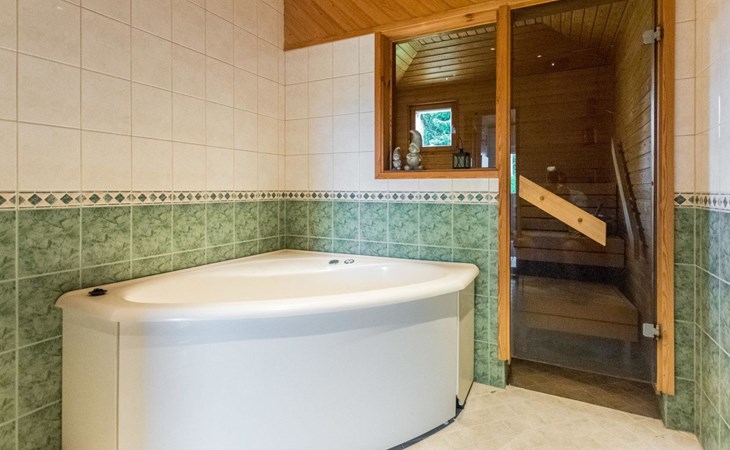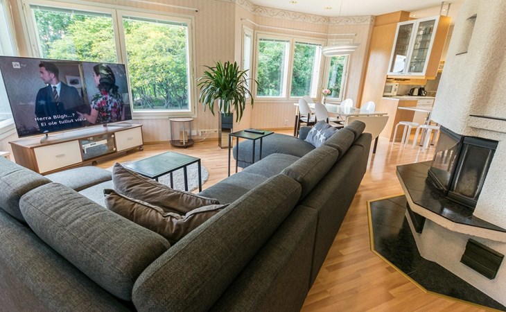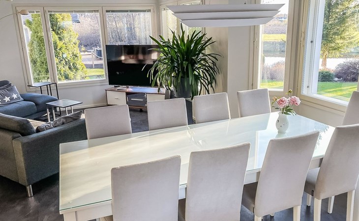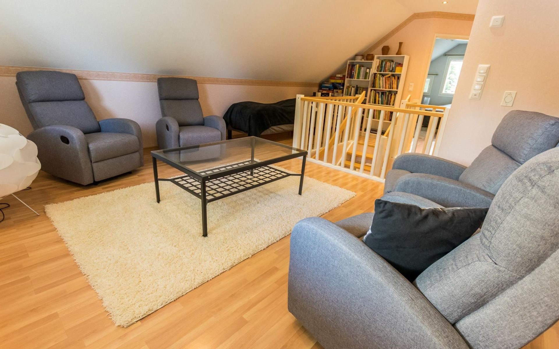 Main building 190 m²: On the ground floor, 3 bedrooms: 180 cm wide motor bed in the master bedroom (beds can be separated if necessary), in the second bedroom a 160 cm wide double bed and in the third two single beds. Kitchen, separate WC, instant ready electric sauna stove, hydro massage bath. On the upper floor, 2 bedrooms with two separate beds each, separate WC, living area. In alcove 2 beds, laver to be spread and mattress.