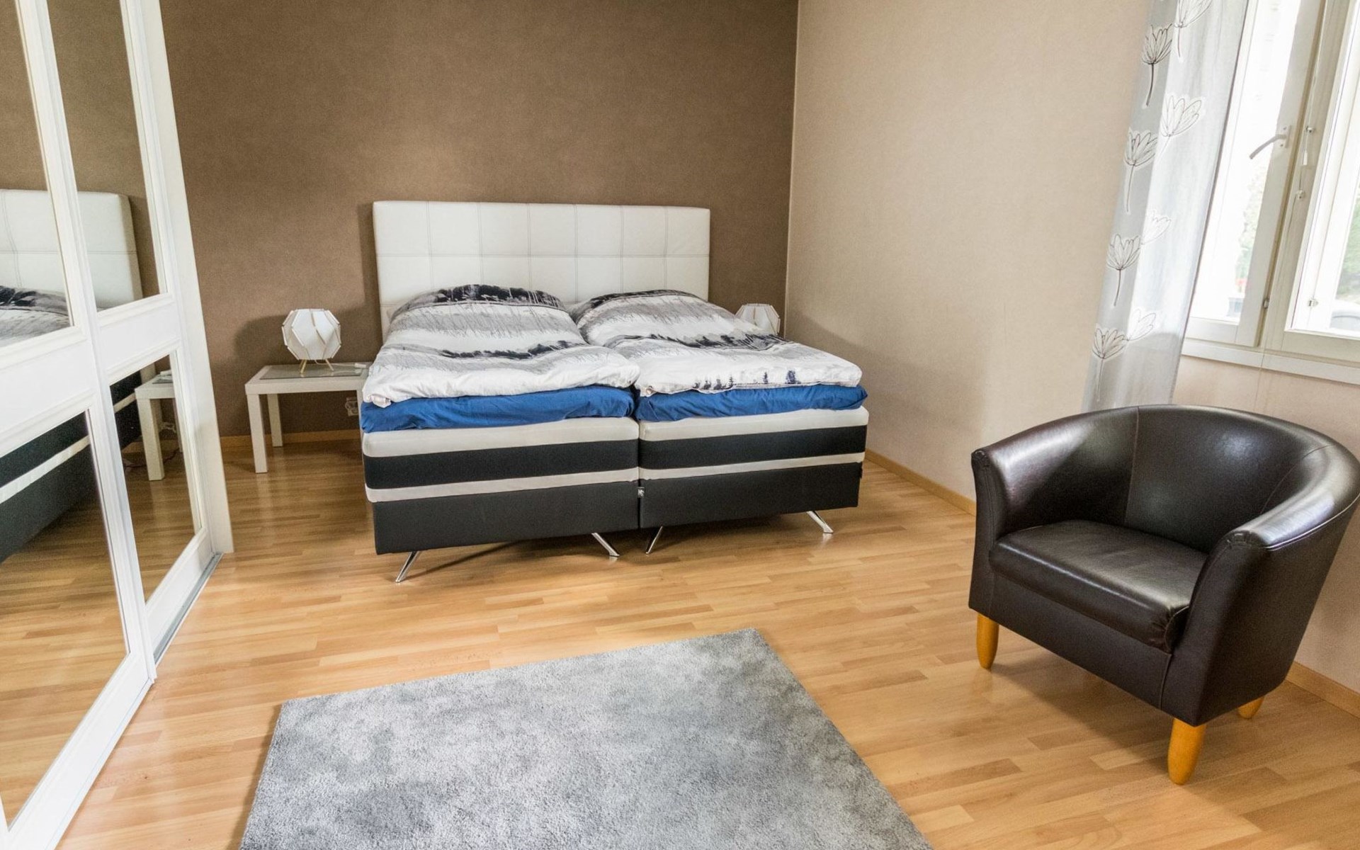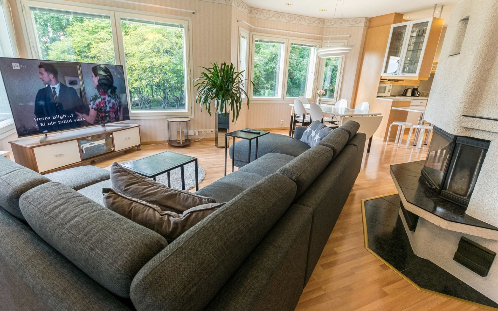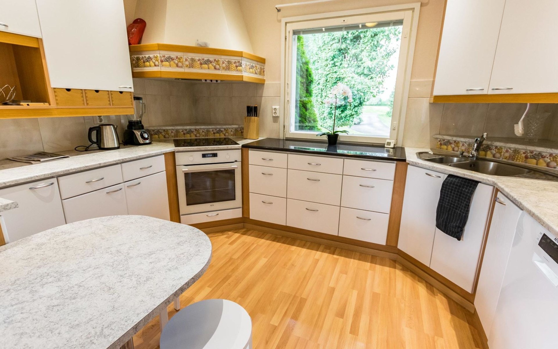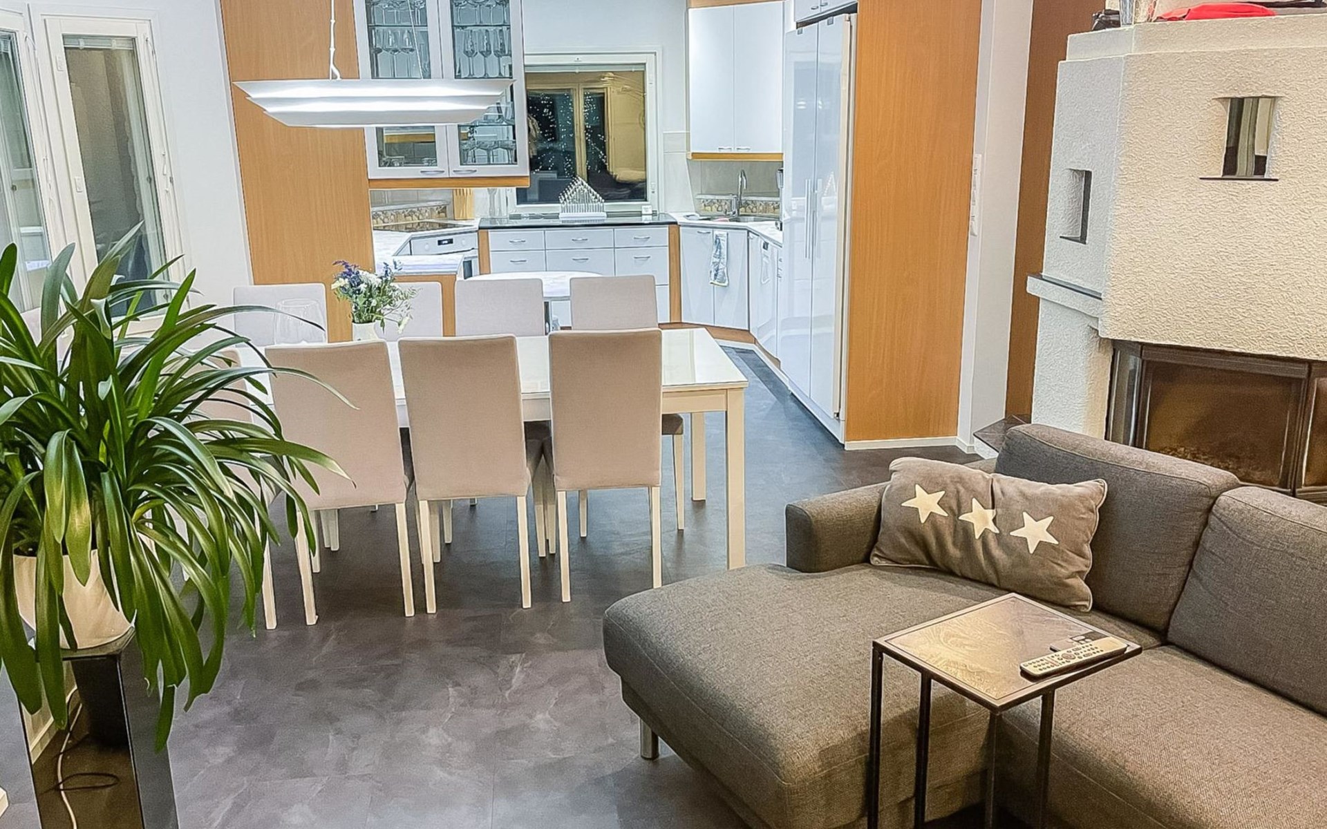 Main building 190 m²: On the ground floor, 3 bedrooms: 180 cm wide motor bed in the master bedroom (beds can be separated if necessary), in the second bedroom a 160 cm wide double bed and in the third two single beds. Kitchen, separate WC, instant ready electric sauna stove, hydro massage bath. On the upper floor, 2 bedrooms with two separate beds each, separate WC, living area. In alcove 2 beds, laver to be spread and mattress.