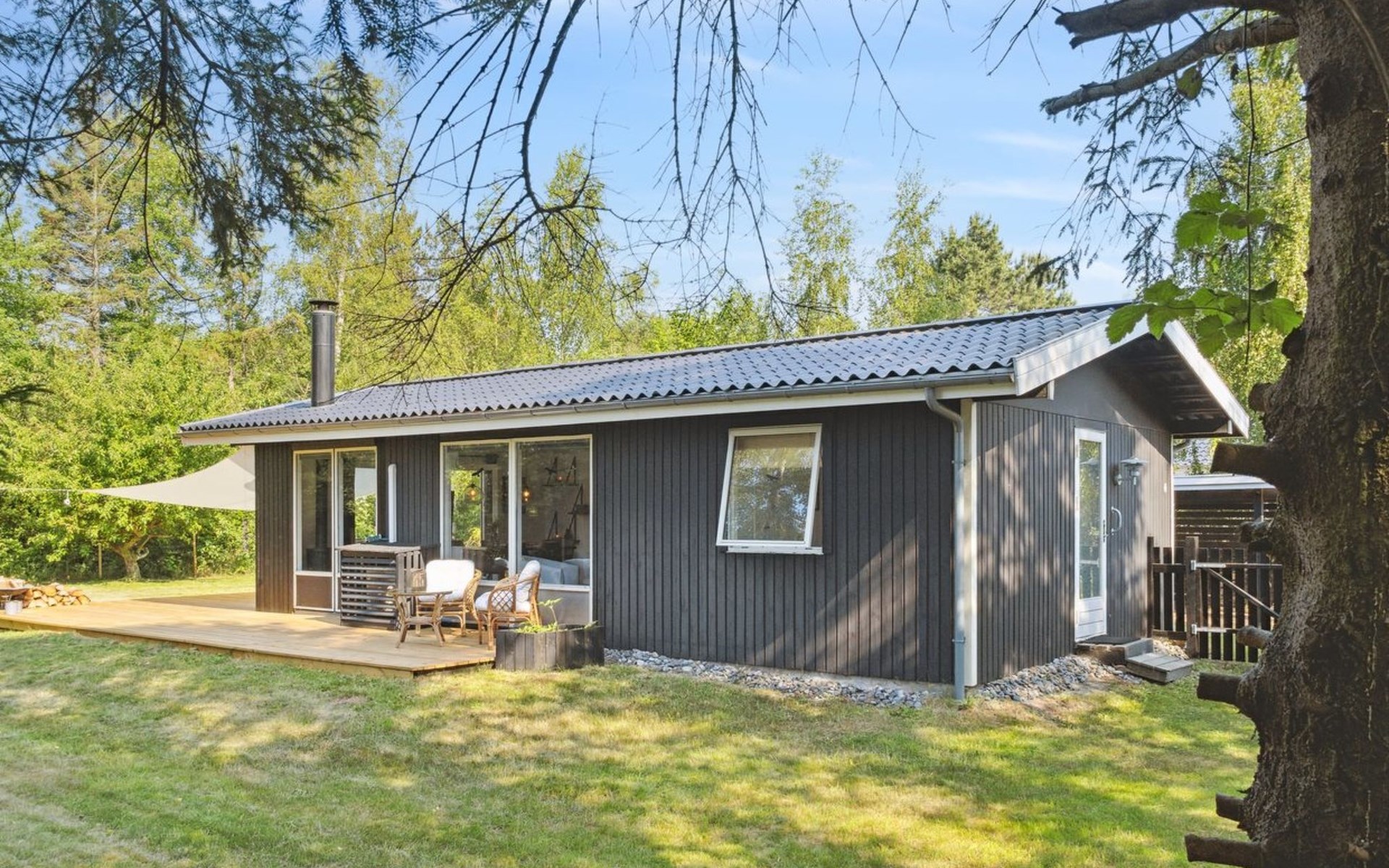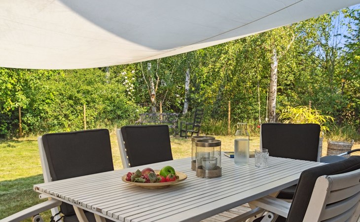 Eengezinswoning, bouwjaar 1985. 600 m van zee. Voor medegebruik: tuin. Voor alleengebruik: wild terrein 1.293 m2, tuin (omheind). Barbecue, kinderspeelplaats (schommel), parkeerplaats bij het huis. Carport. Levensmiddelenwinkel 570 m. Golfterrein 1.4 km. De eigenaar accepteert geen jeugdgroepen.