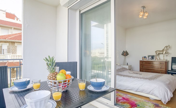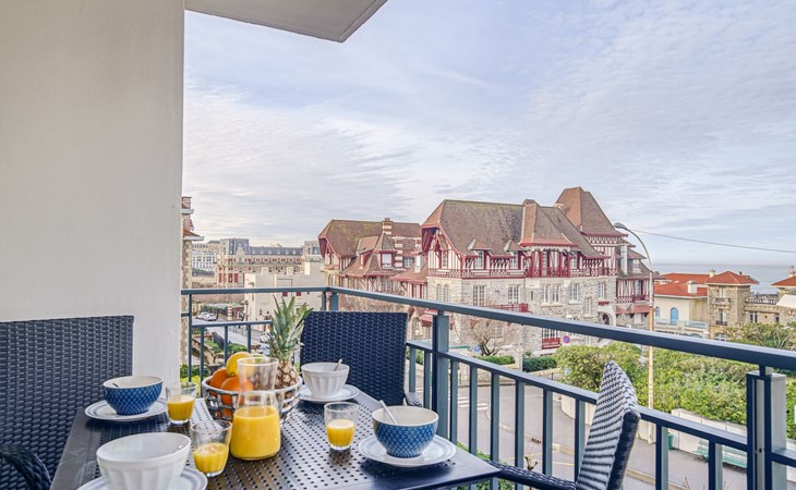 Residentie "Océana", van 4 verdiepingen. In de wijk Miramar, 100 m van zee, van het strand, de straat oversteken. In het complex: lift. Winkel 250 m, levensmiddelenwinkel 300 m, supermarkt 400 m, restaurant 250 m, bakkerij 250 m, bushalte "Sarasate" 100 m, station 3.8 km, zandstrand "Miramar" 100 m, overdekt zwembad 600 m. Golfterrein (18 holes) 1 km, surfschool 800 m. Attracties in de buurt: Quartier pittoresque St-Charles 350 m, Phare de Biarritz 700 m, Port de Pêcheurs 1 km, Marché des Halles 1.2 km, Bayonne 8 km, Saint-Jean-de-Luz 18 km. Wandelgebied La Rhune 28 km. De sleuteloverdracht vindt plaats bij het agentschap Interhome. Vliegveld 3.3 km van het huis.