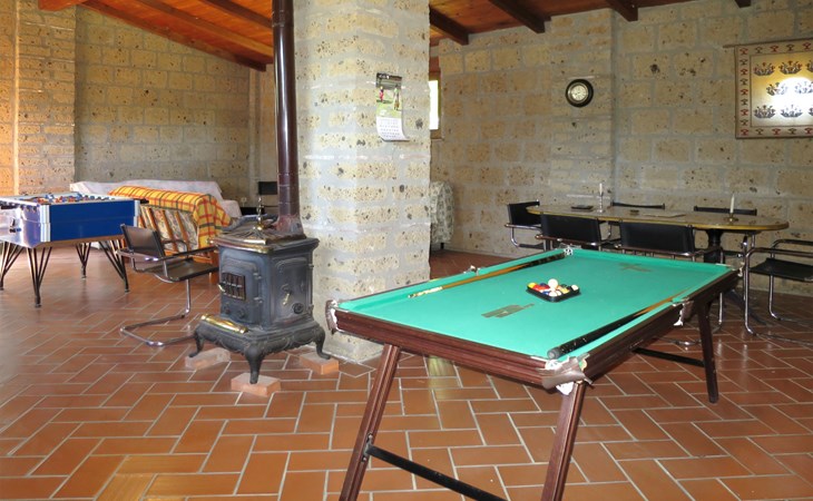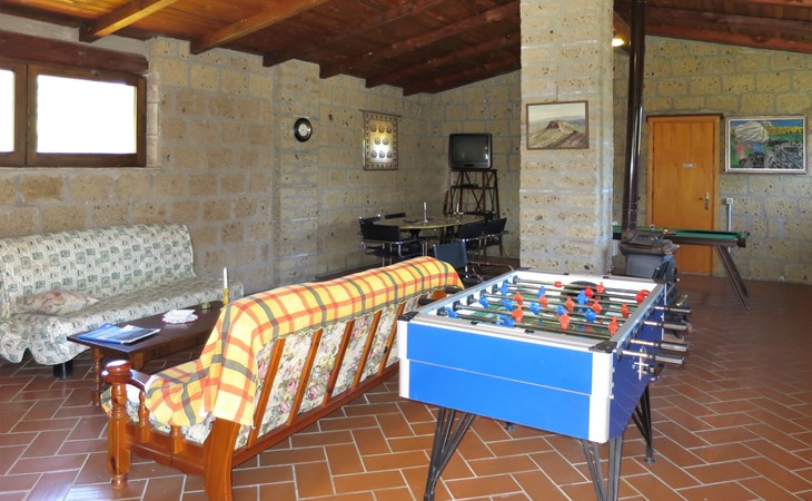 Rustieke, eenvoudig boerderijtje "Sociano", omgeven door bomen, weiden en velden. 4 appartementen in de woning. 11 km van het centrum van Bagnoregio, geïsoleerde ligging op een heuvel, 18 km van het meer, te midden van groen. Voor medegebruik: wild terrein 10.000 m2 met weide, openluchtzwembad (10 x 5 m, 80 - 180 cm diepte, seizoensgebonden beschikbaarheid: 30.Mei. - 19.Sep.). WC bij het zwembad, buitendouche, barbecue. In het huis: salon met TV, Internet (WiFi), biljart, tafelvoetbal, wasmachine (voor medegebruik). 1.5 km lange toegangsweg (onverharde weg). Parkeerplaats op het terrein. Winkel 11 km, levensmiddelenwinkel 11 km, supermarkt 11 km, bushalte 5 km, meer (zwemmen) "Lago di Bolsena" 18 km. Attracties in de buurt: Civita di Bagnoregio 7 km, Bolsena 16 km, Montefiascone 18 km, Orvieto 25 km, Viterbo 30 km. Lokale verkoop van streekproducten. De eigenaar heeft een hond. Dieren in de buurt.