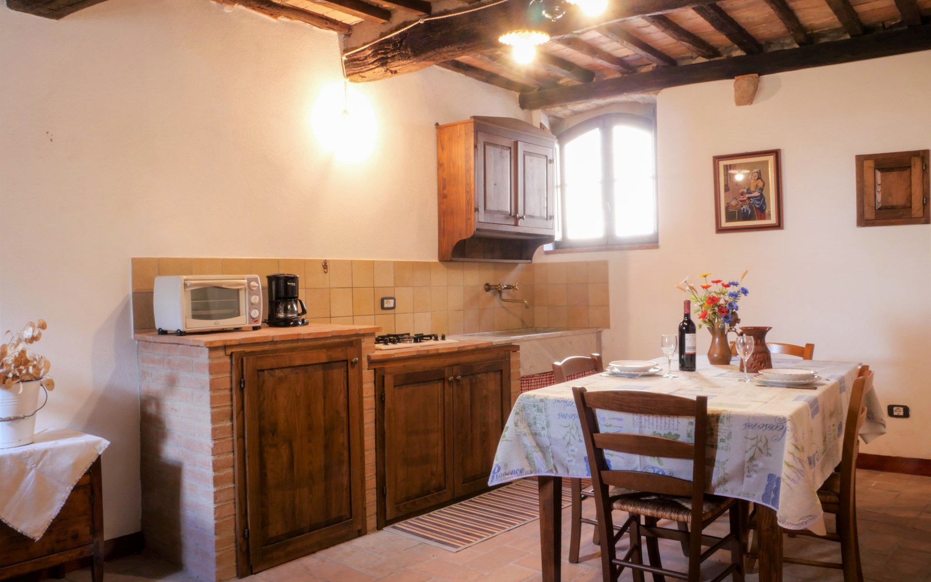 Rustieke, historisch landhuis "Borgo la Civitella", uit de 13e eeuw, omgeven door bomen en velden. 8 appartementen in de woning. 3.3 km van het centrum van Roccastrada, geïsoleerde, zonnige, verhoogde ligging, 40 km van zee. In het huis: wasmachine (voor medegebruik, extra). 600 m lange rommelige toegangsweg. Parkeerplaats op 50 m. Winkel 3.3 km, supermarkt 3.3 km, bushalte 1.5 km, treinstation "Roccastrada" 5 km, veerboot "Piombino" 66 km, meer Accesa 30 km. Jachthaven 44 km, golfterrein (18 holes) 41 km. Attracties in de buurt: Massa Marittima 30 km, Grosseto 35 km, Siena 55 km. Wandelgebied Mountain-bike 2 km. Auto noodzakelijk.