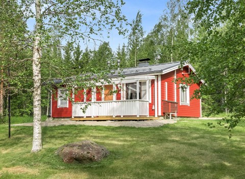 170 km north-west of Helsinki. Log cottage not next to any lake 2011, living room/kitchen, 2 bedrooms 2 beds in each, sauna (wood-burning stove), washroom with 2 showers, dressing room, eco-WC with shower, 2 sleeping lofts with altogether four mattresses. Underfloor heating in toilet and wash/dressing room. Two eco-WCs.