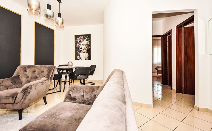Huis met 2 woningen "Maldini". 200 m van het centrum van Sukošan, zonnige ligging, 300 m van zee, 480 m van het strand. Voor medegebruik: terrein 150 m2. Barbecue. In het huis: internetaansluiting. Parkeerplaats bij het huis op het terrein. Winkel 200 m, restaurant 230 m, bushalte 500 m, kiezelstrand 480 m.