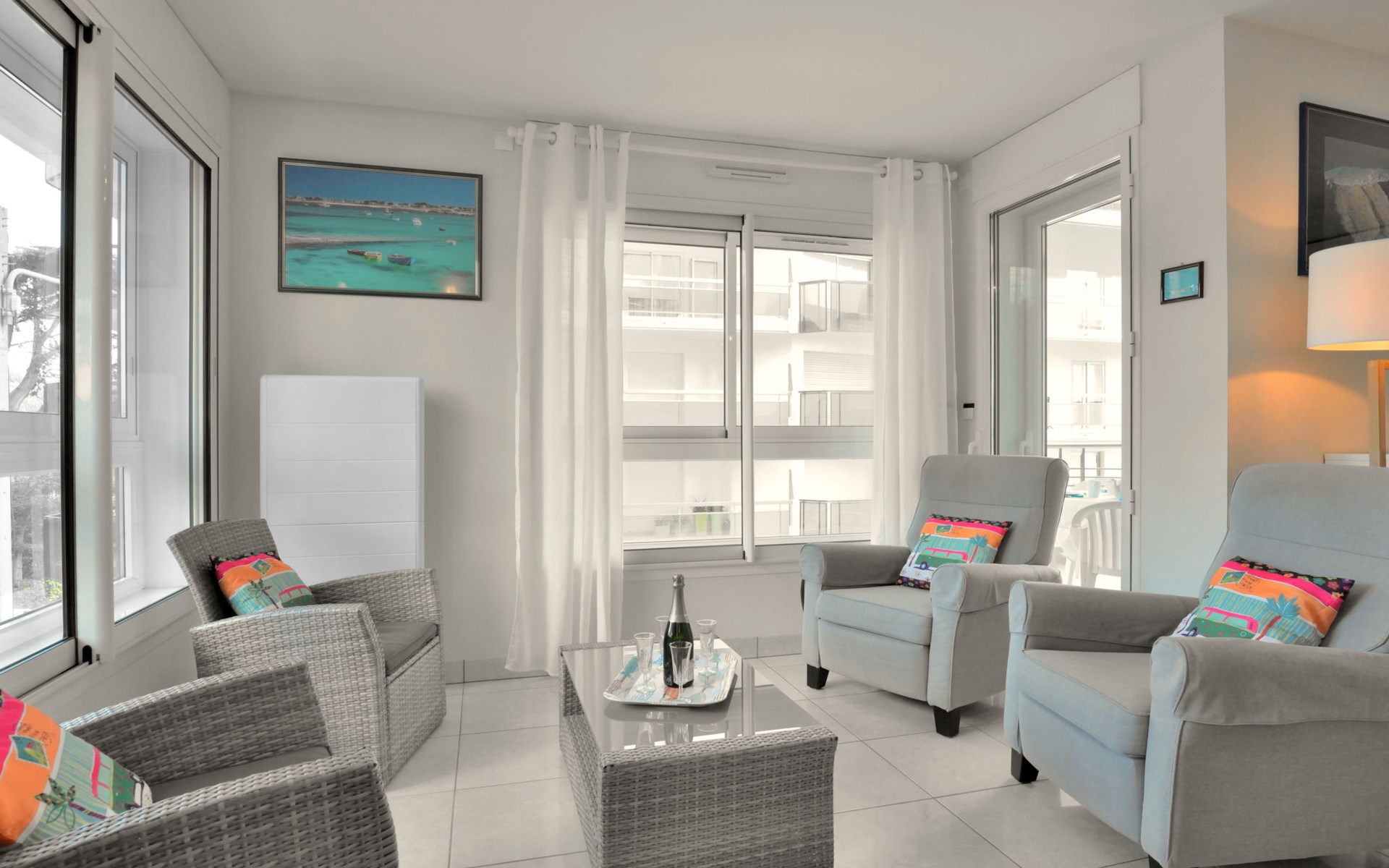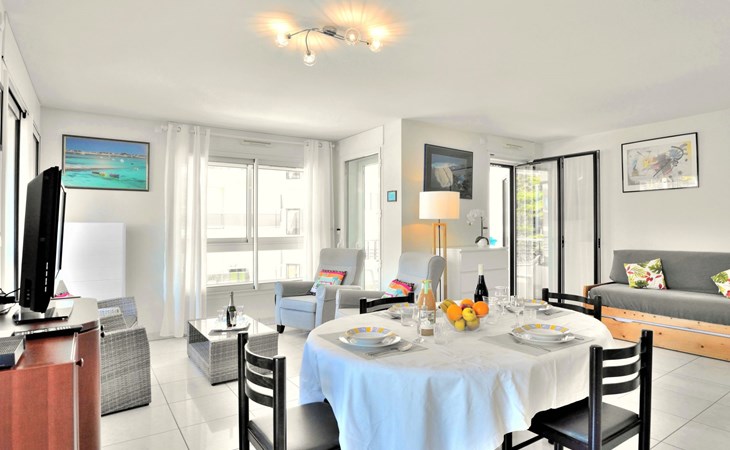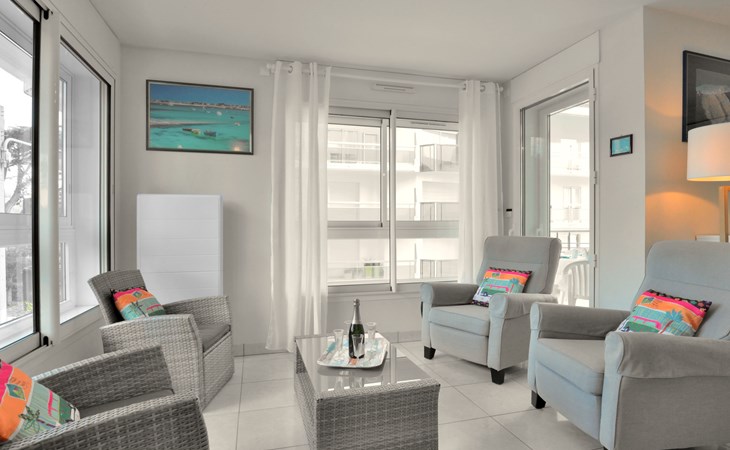 Moderne, mooi appartementencomplex "Mariza", van 8 verdiepingen. 100 m van het centrum van La Baule, centrale ligging, 20 m van zee. In het huis: lift. Gemeenschappelijke garage nr. 84. Levensmiddelenwinkel 100 m, supermarkt 300 m, restaurant, bushalte 100 m, treinstation "La Baule" 1 km, zandstrand "Grande Plage de La Baule" 20 m. Tennis 1 km. Attracties in de buurt: Le Pouliguen 6 km, Guérande 8 km, St Lyphard-Parc de la Brière 14 km, Le Croisic 14 km, Piriac sur Mer 19 km, Nantes 77 km. Wandelgebied GR34. Gesloten residentie met een elektrische deur.