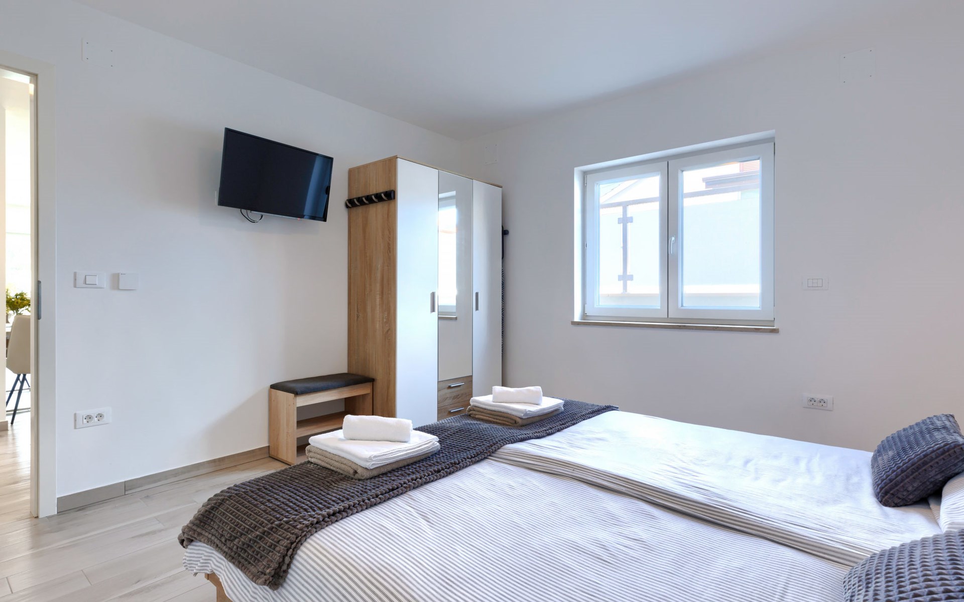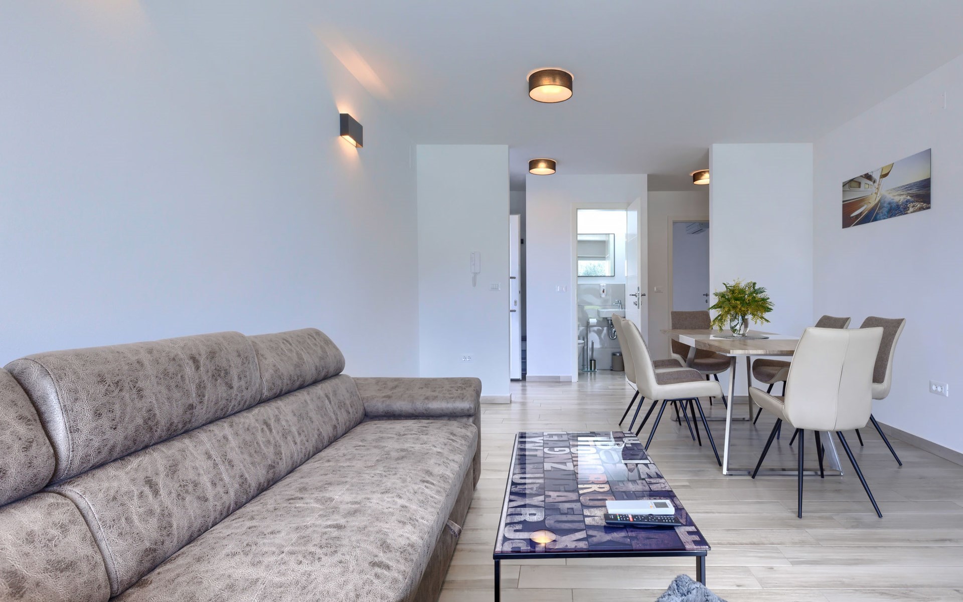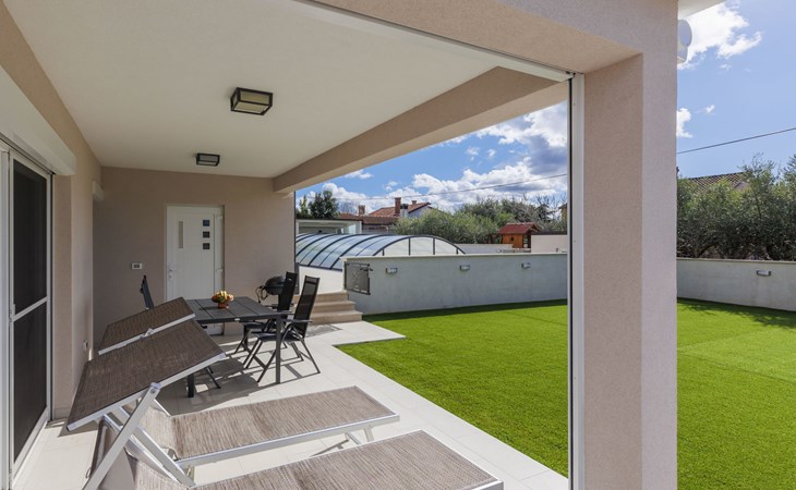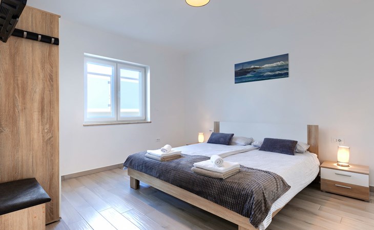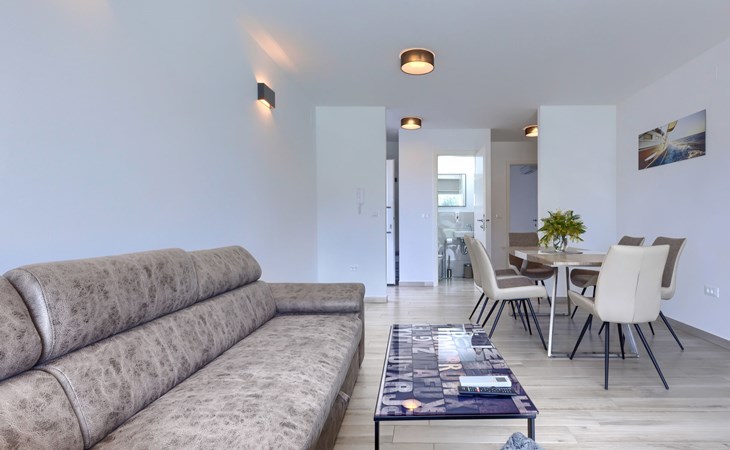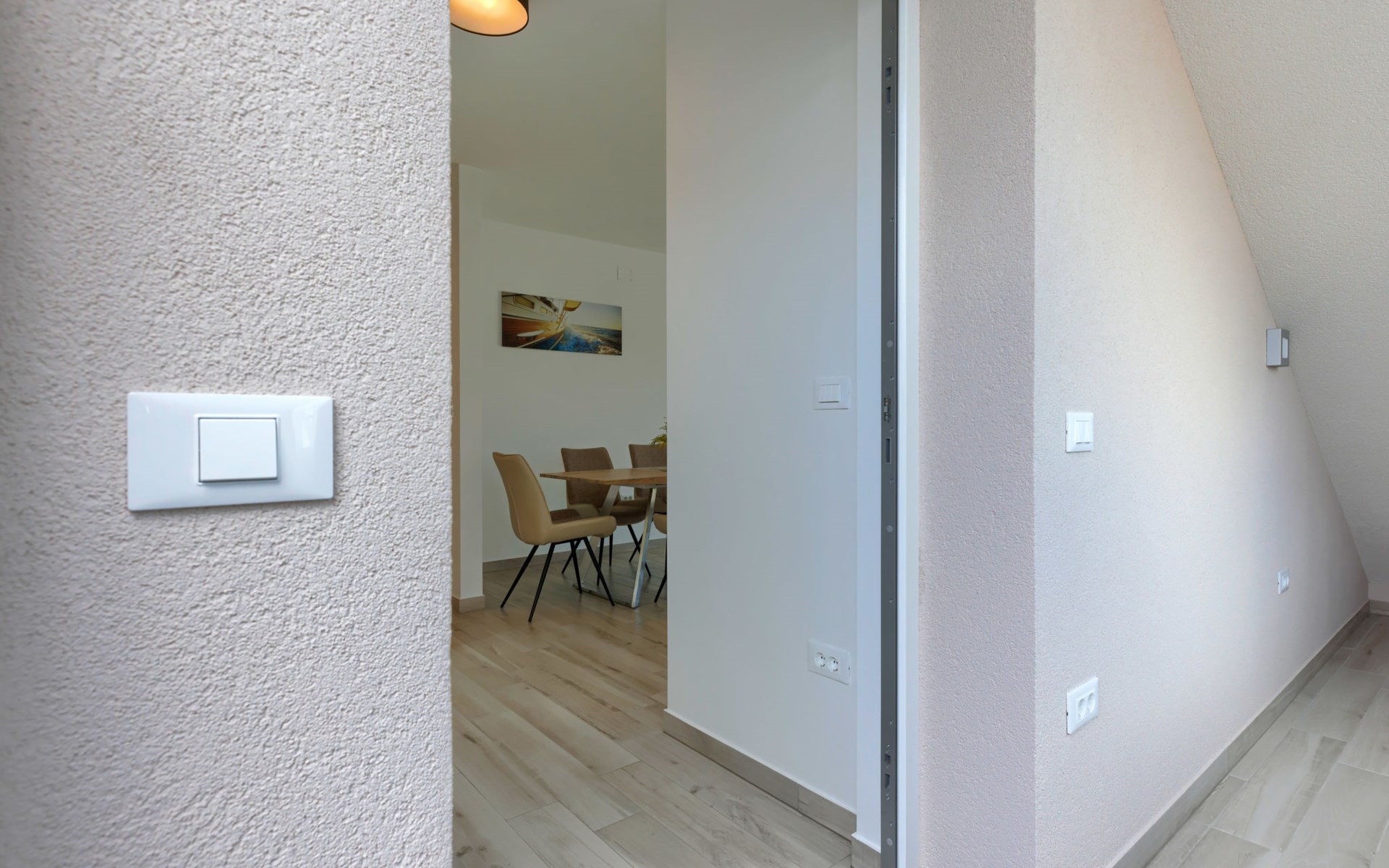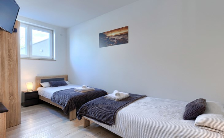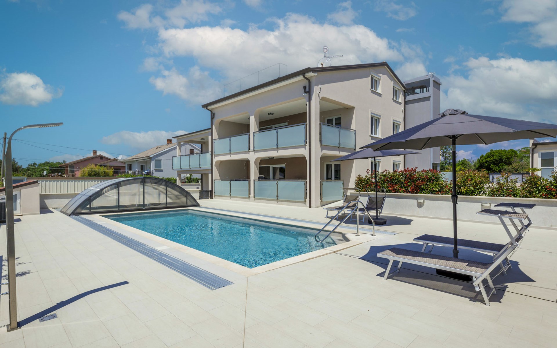 Murine 3 km van Umag: Appartementencomplex "Villa Galici", bouwjaar 2022. In het gehucht Galići, 1 km van het centrum van Murine, zonnige ligging, 2.5 km van zee, 2.5 km van het strand. Voor medegebruik: terrein 1.000 m2 met gazon, openluchtzwembad hoekig verwarmd (10 x 5 m, 150 cm diepte, seizoensgebonden beschikbaarheid: 01.Jan. - 31.Dec.) met trap en oprolbaar afdekscherm. Buitendouche. In het huis: internetaansluiting, tafelvoetbal. Parkeerplaats bij het huis op het terrein. Winkel 1.5 km, restaurant 800 m, bushalte 4.1 km, kiezelstrand 2.5 km, rotsstrand 2.5 km. Wandelroutes 100 m vanaf het huis, fietspad 150 m. De eigenaar accepteert geen jeugdgroepen.
