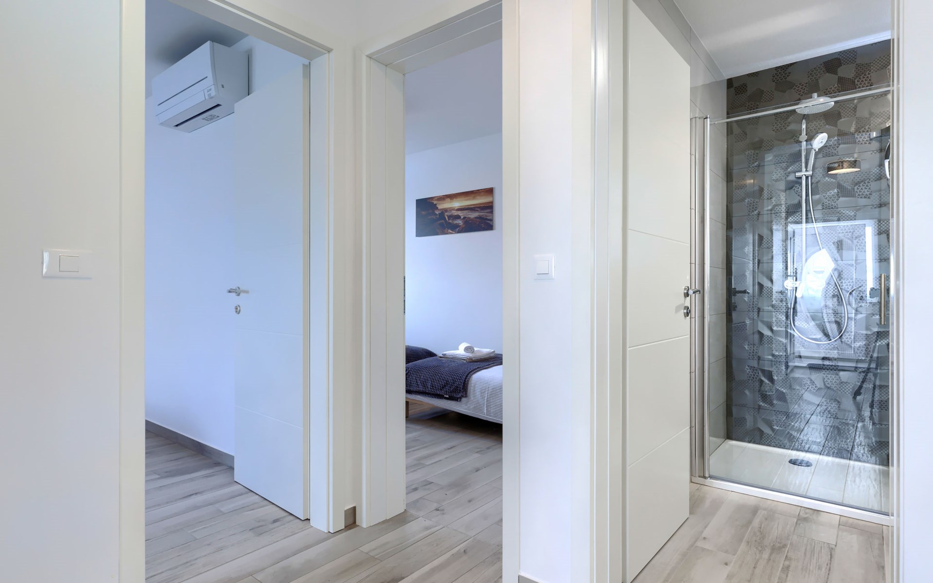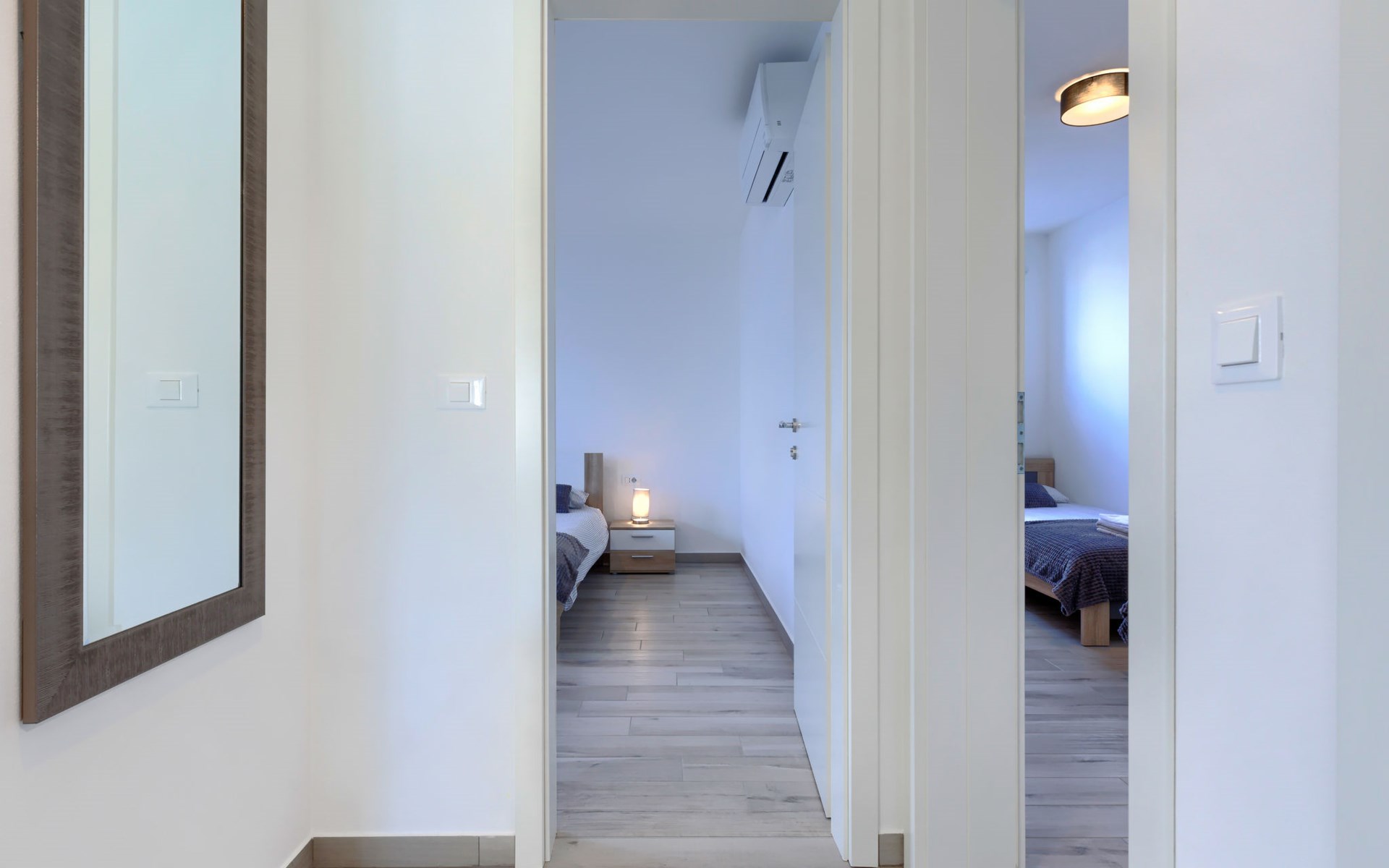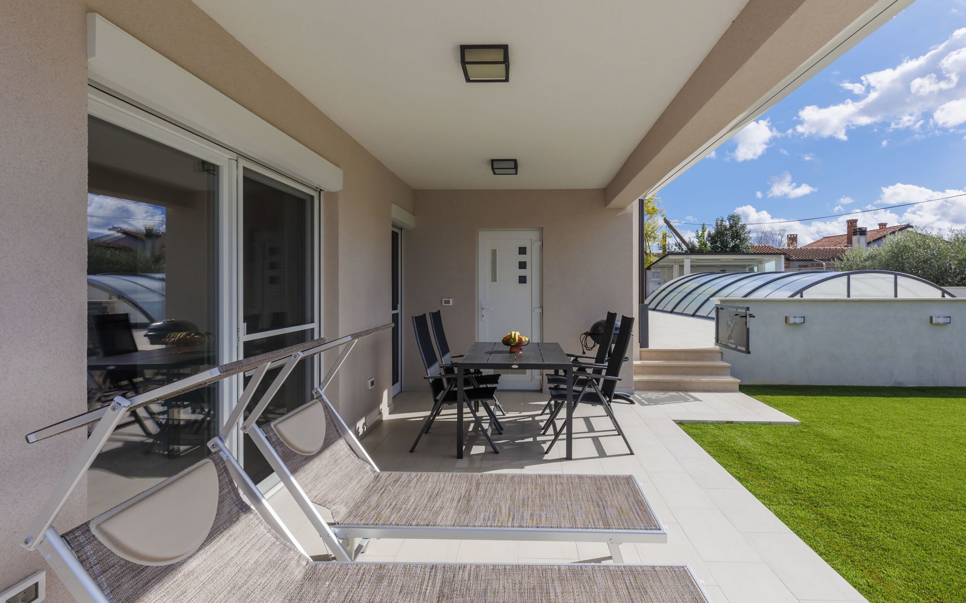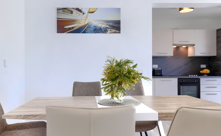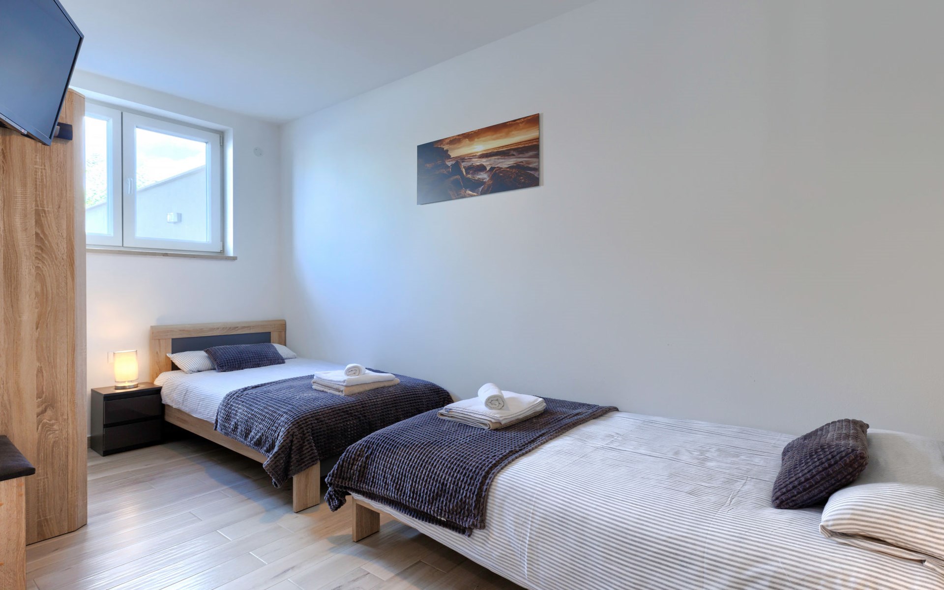 Murine 3 km van Umag: Appartementencomplex "Villa Galici", bouwjaar 2022. In het gehucht Galići, 1 km van het centrum van Murine, zonnige ligging, 2.5 km van zee, 2.5 km van het strand. Voor medegebruik: terrein 1.000 m2 met gazon, openluchtzwembad hoekig verwarmd (10 x 5 m, 150 cm diepte, seizoensgebonden beschikbaarheid: 01.Jan. - 31.Dec.) met trap en oprolbaar afdekscherm. Buitendouche. In het huis: internetaansluiting, tafelvoetbal. Parkeerplaats bij het huis op het terrein. Winkel 1.5 km, restaurant 800 m, bushalte 4.1 km, kiezelstrand 2.5 km, rotsstrand 2.5 km. Wandelroutes 100 m vanaf het huis, fietspad 150 m. De eigenaar accepteert geen jeugdgroepen.