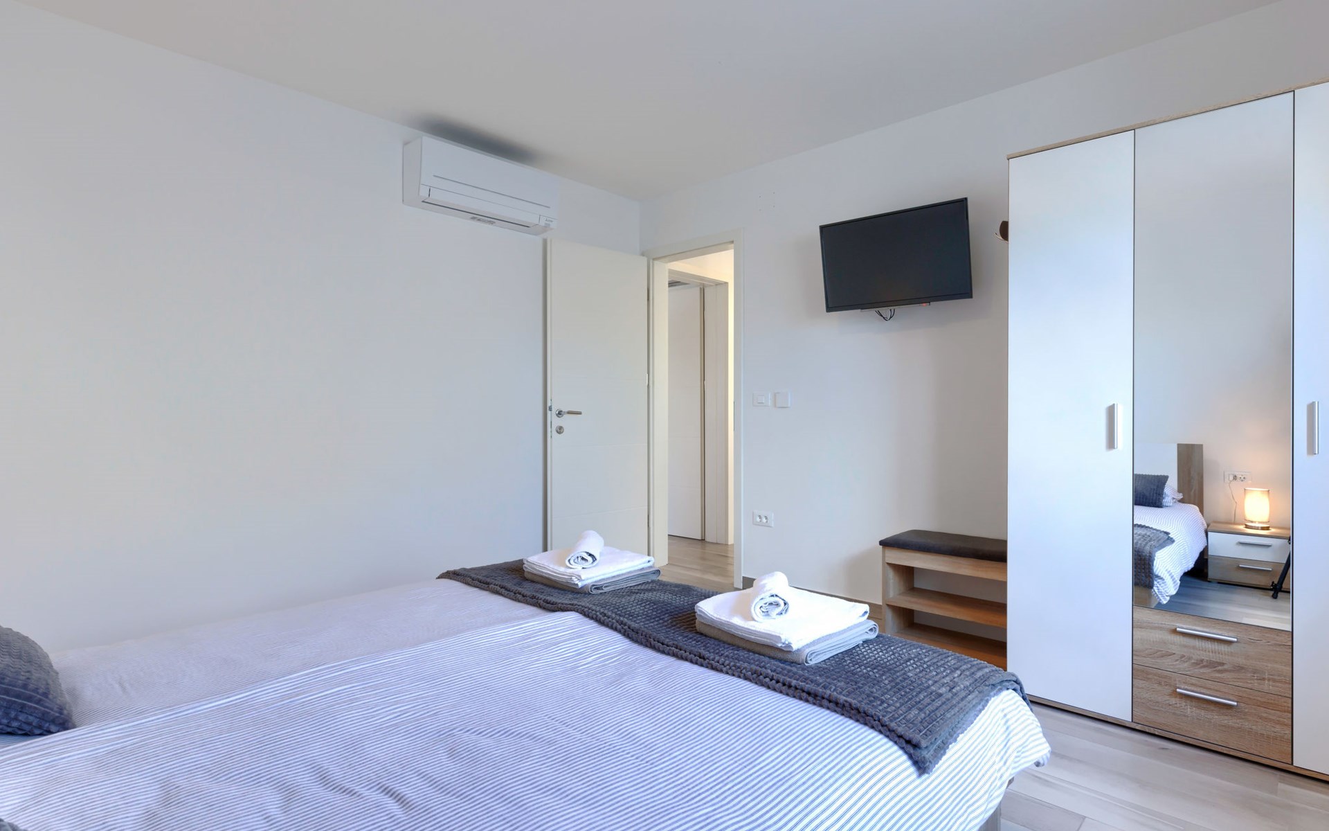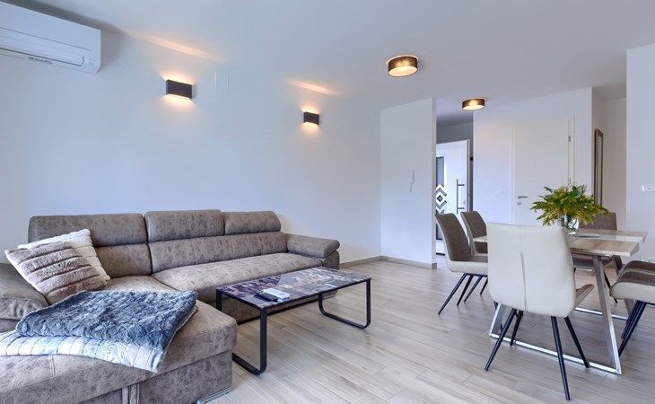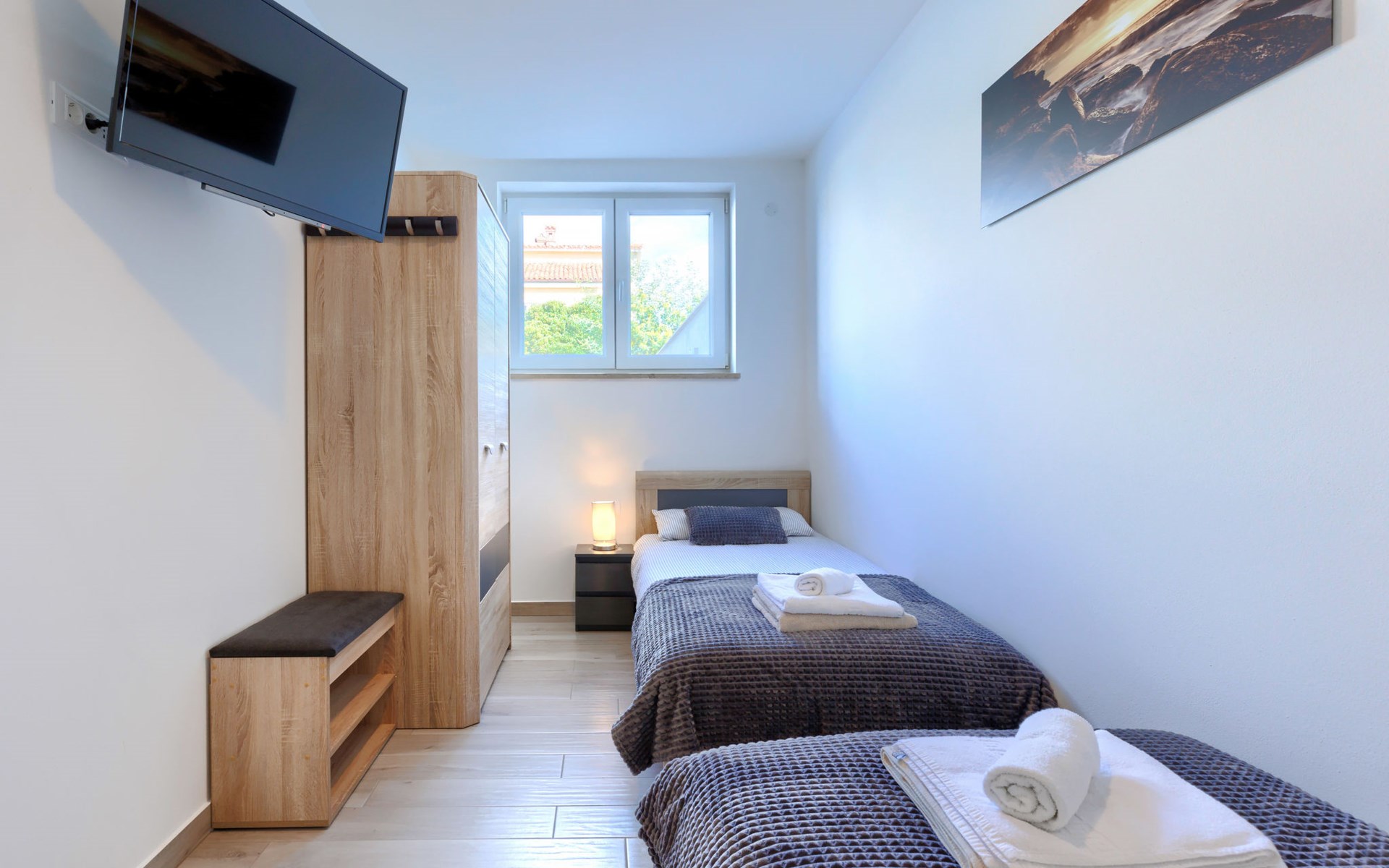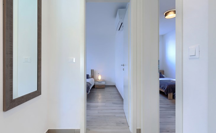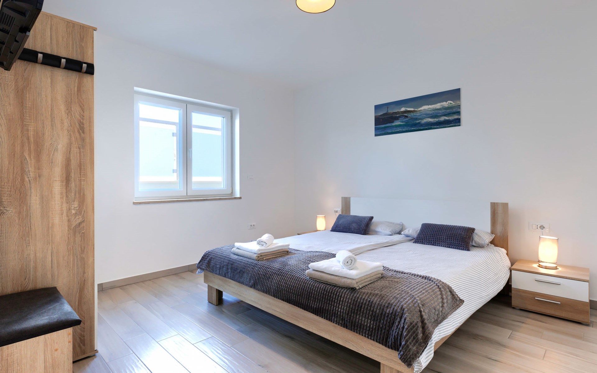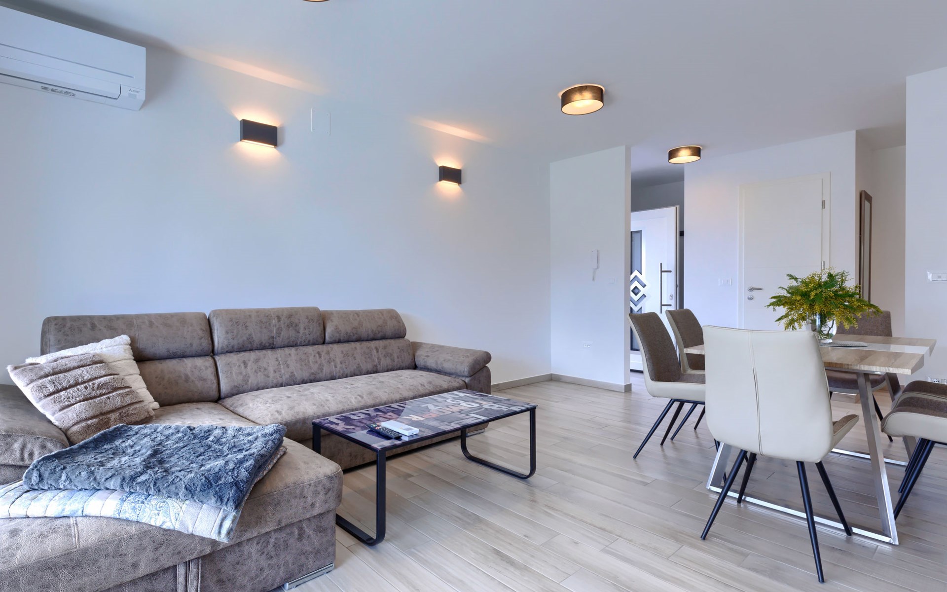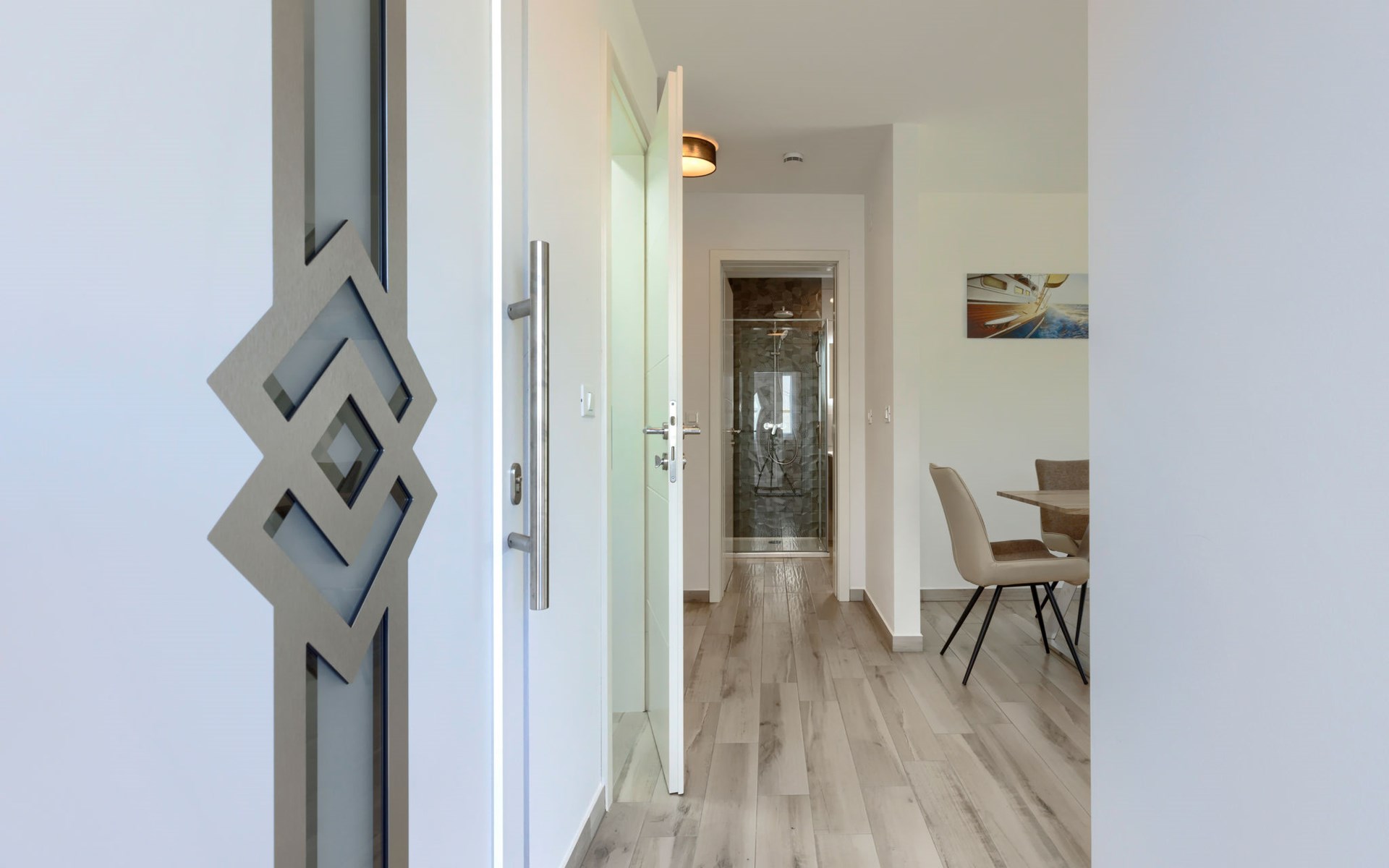Murine 3 km van Umag: Appartementencomplex "Villa Galici", bouwjaar 2022. In het gehucht Galići, 1 km van het centrum van Murine, zonnige ligging, 2.5 km van zee, 2.5 km van het strand. Voor medegebruik: terrein 1.000 m2 met gazon, openluchtzwembad hoekig verwarmd (10 x 5 m, 150 cm diepte, seizoensgebonden beschikbaarheid: 01.Jan. - 31.Dec.) met trap en oprolbaar afdekscherm. Buitendouche. In het huis: internetaansluiting, tafelvoetbal. Parkeerplaats bij het huis op het terrein. Winkel 1.5 km, restaurant 800 m, bushalte 4.1 km, kiezelstrand 2.5 km, rotsstrand 2.5 km. Wandelroutes 100 m vanaf het huis, fietspad 150 m. De eigenaar accepteert geen jeugdgroepen.