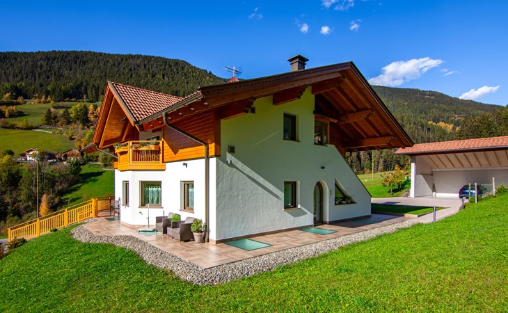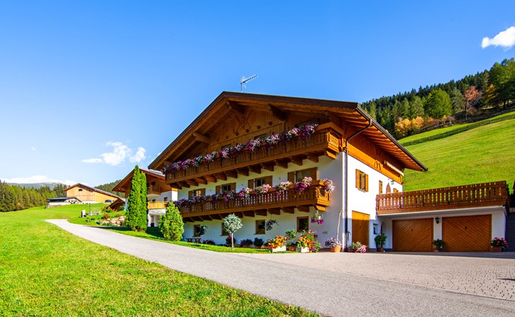 Sarentino: Gezellige, comfortabele cottage "Spieglhof", 1.050 m boven zeeniveau, van 2 verdiepingen, bouwjaar 2017, omgeven door weiden. 3 appartementen in de woning. Boven Astfeld/Campolasta, in het gehucht Trienbachberg, 2 km van het centrum van Astfeld/Campolasta, 4.5 km van het centrum van Sarntheim/Sarentino, 24 km van het centrum van Bozen/Bolzano, zonnige ligging, 7.2 km van het skigebied, te midden van groen. Voor medegebruik: terrein 3 ha, tuin (niet omheind), weide, ligweide. In het huis: sauna (extra). Fitnessruimte, stoombad (extra). Infrarood sauna, ontspanningsruimte, tafeltennis, tafelvoetbal, bergruimte voor fietsen, centrale verwarming, wasmachine (extra), droger (voor medegebruik, extra), skischoendroger. Overdekte parkeerplaats (voor 3 auto's). Winkel 1.5 km, supermarkt 6 km, restaurant 1.5 km, fietsverhuur 6 km, bushalte "152 Sarnthein-Reinswald-Durnholz" 200 m, openluchtzwembad 4.5 km, thermaalbad "Meran/Merano" 52 km. Golfterrein (9 holes) 32 km, manege 1 km, fietspad 1.5 km, kabelbaan 7 km, ski faciliteiten 7 km, skibushalte 400 m, skischool 7 km, rodelbaan 7 km. Attracties in de buurt: Aberstückl/Sonvigo 11 km. Bekende skigebieden kunnen gemakkelijk worden bereikt: Reinswald/San Martino 7 km, Rosengarten/Catinaccio (Welschnofen) 45 km. Bekende meren kunnen gemakkelijk worden bereikt: Durnholzer See/Lago Valdurna (1545 m) 12 km. Wandelgebied Urlesteig (Reinswald/San Martino) 7 km, Radelspitz/Cima Rodella (2442 m) 2 km, Sarner Scharte/Forcola Sar. (2460 m) 2 km. De eigenaar woont op hetzelfde terrein.