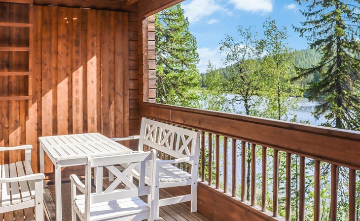 This settlement with a view of the hillside and Lake Syväjärvi can accommodate a maximum of 10 people.