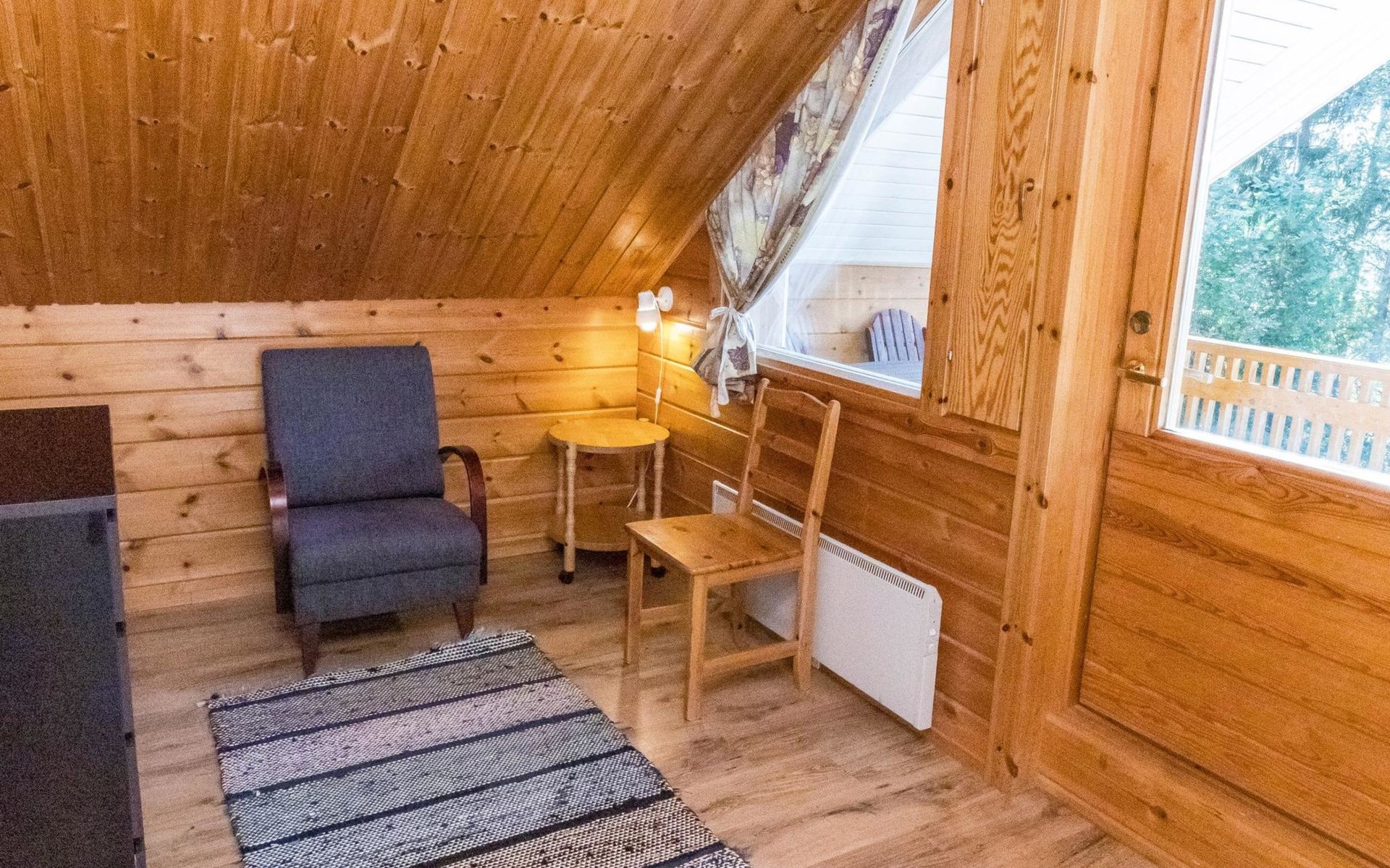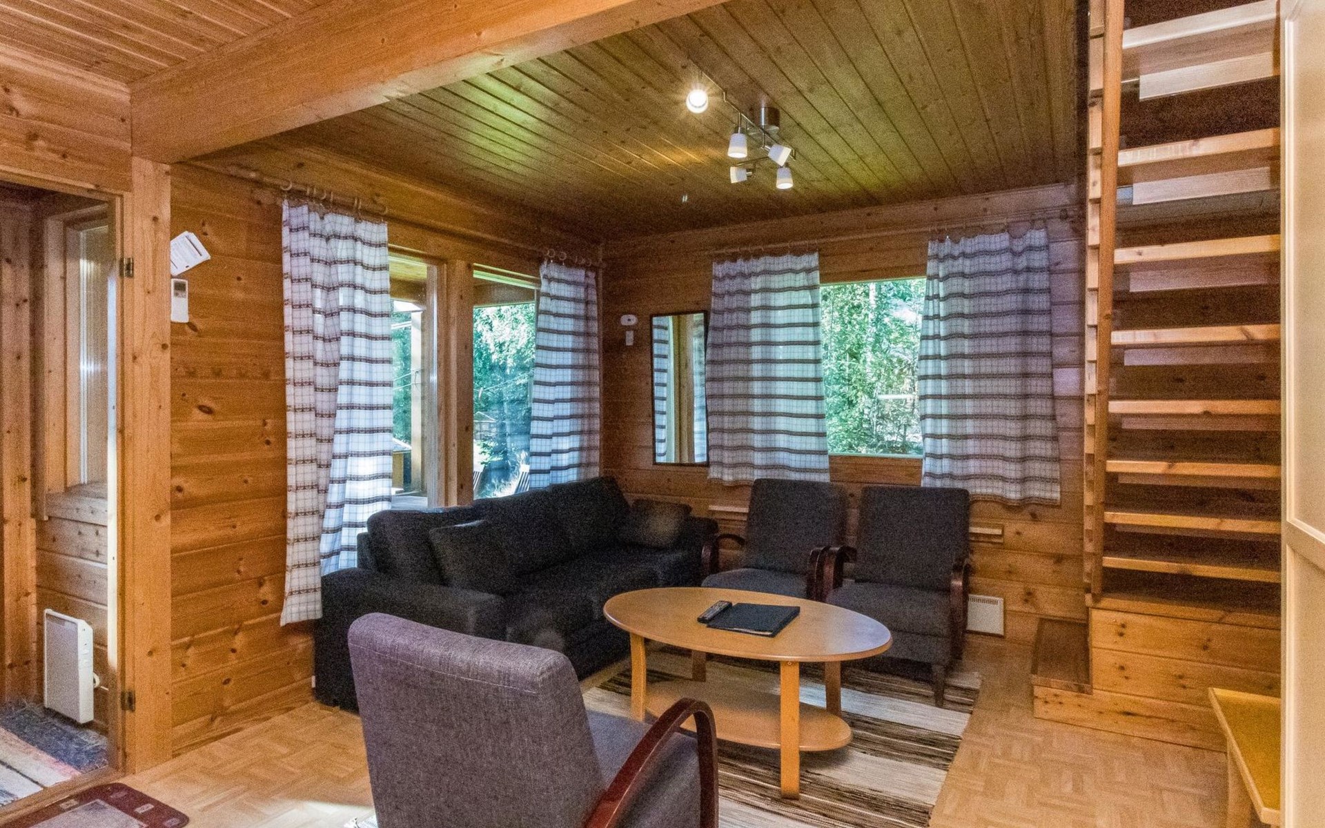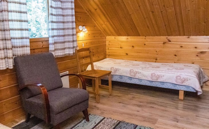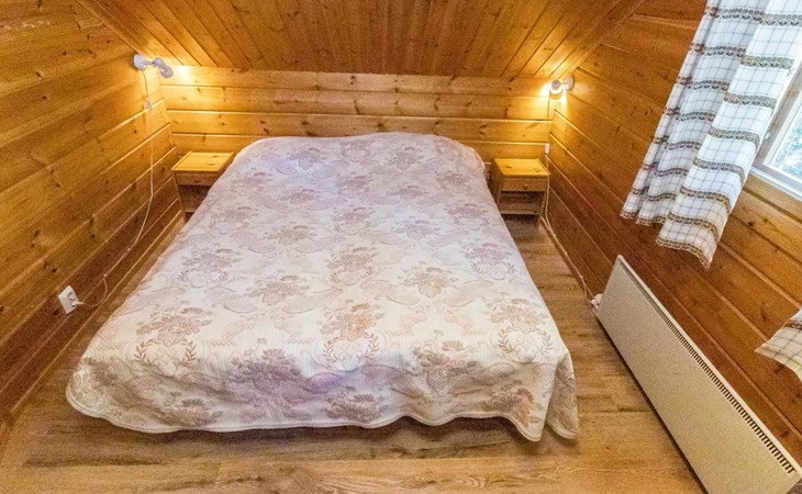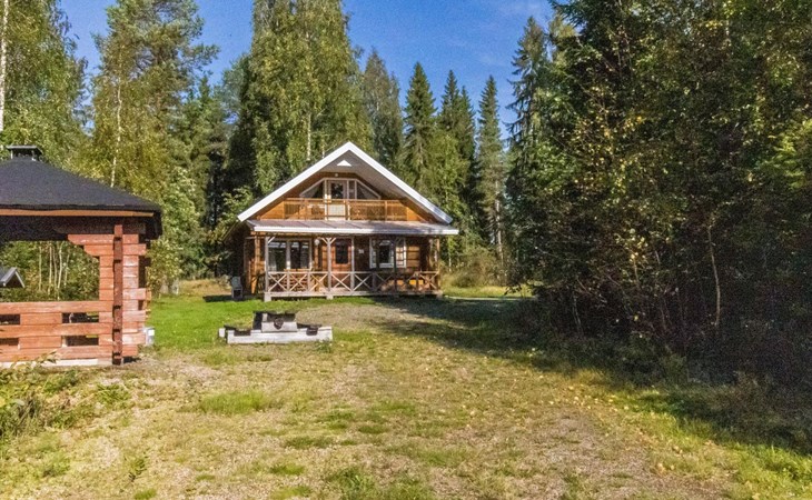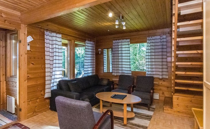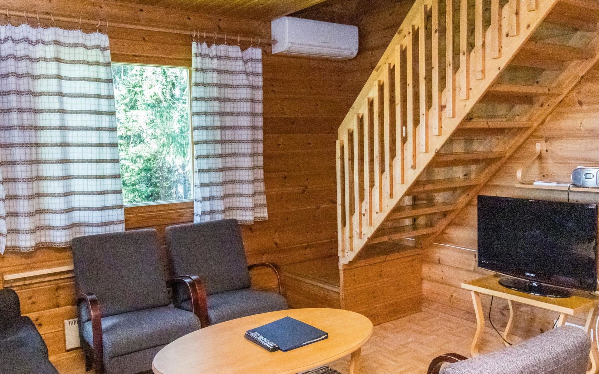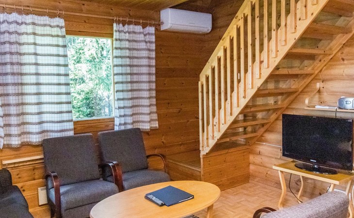 Log cabin 1999, living room/kitchen, downstairs: bedroom 2 beds, in upper floor bedroom 2+1 beds, bedrooms with 2 beds, Child safety gate downstairs and upstairs, washroom, sauna (electric sauna stove), terrace.