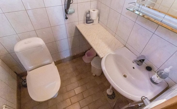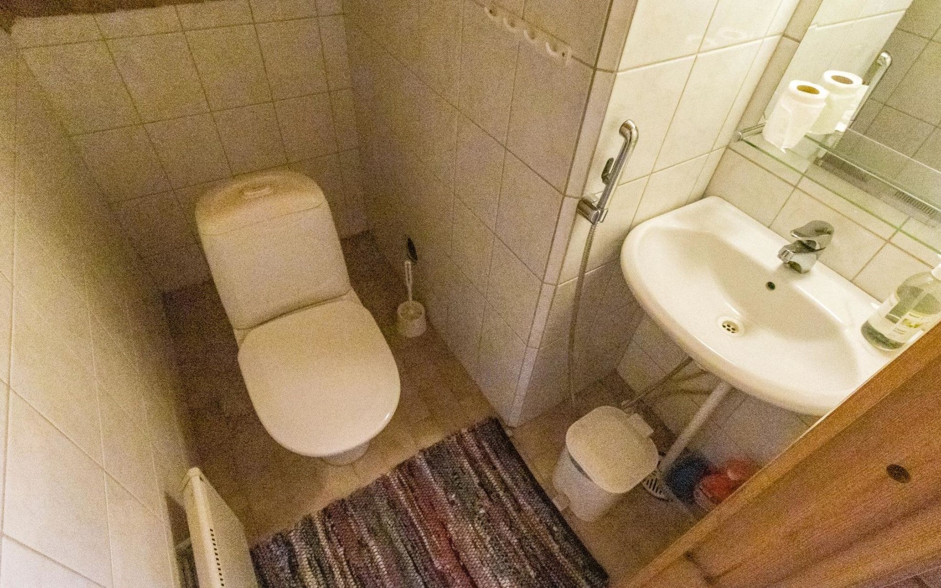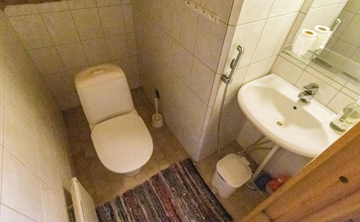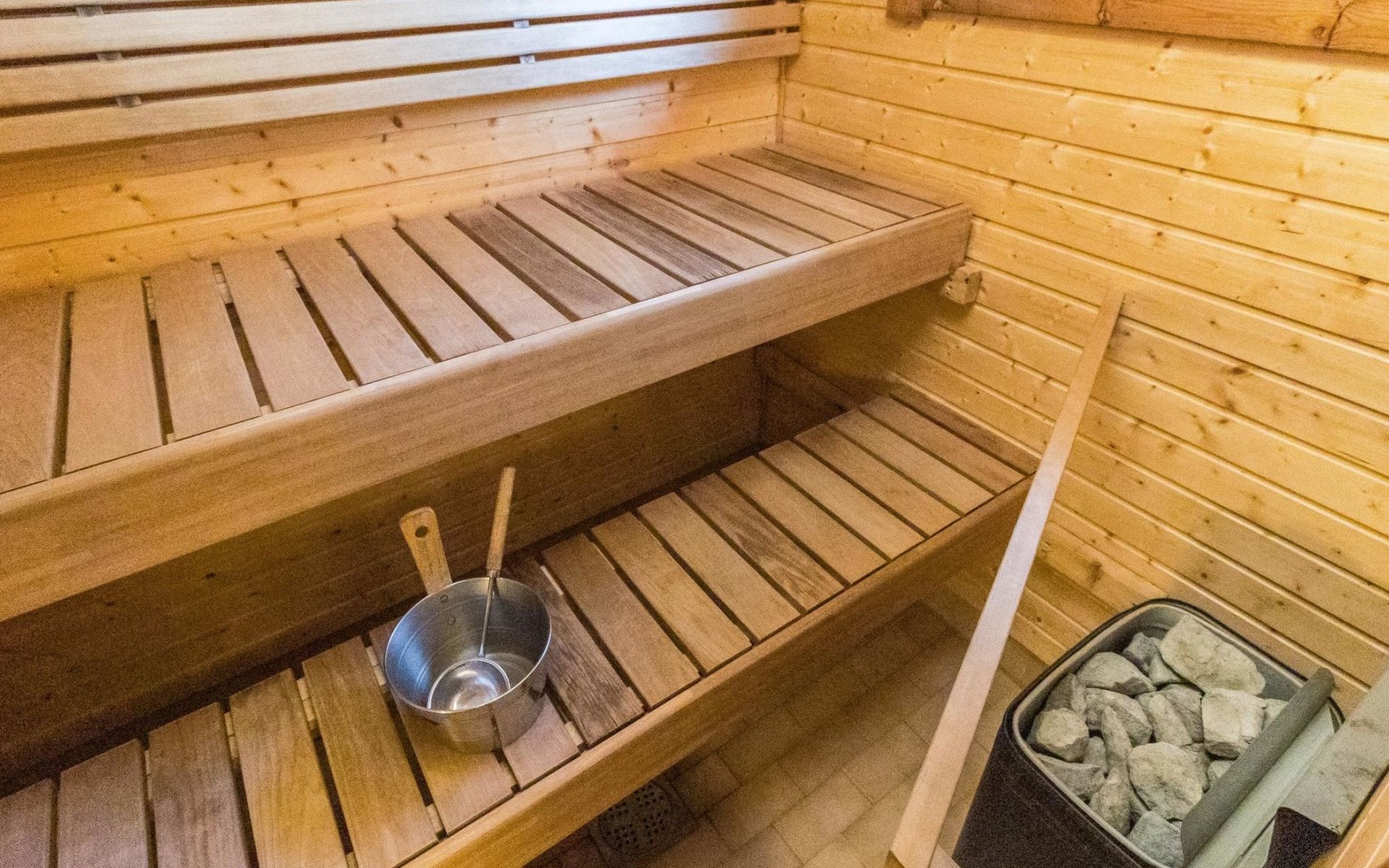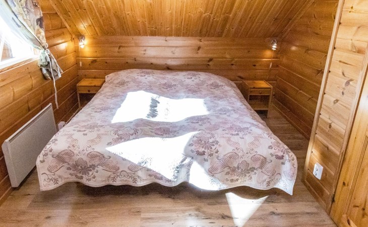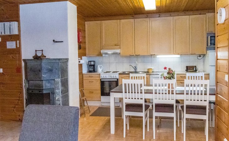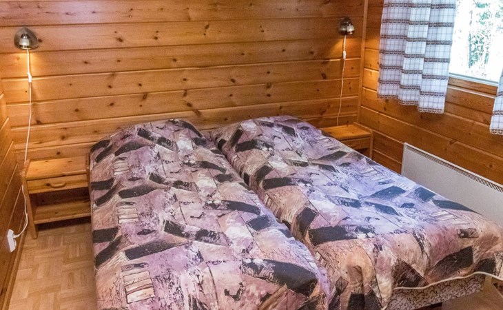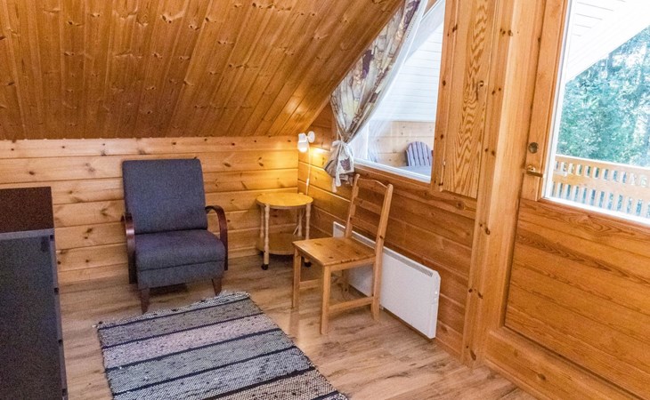 Log cabin 1999, living room/kitchen, downstairs: bedroom 2 beds, in upper floor bedroom 2+1 beds, bedrooms with 2 beds, Child safety gate downstairs and upstairs, washroom, sauna (electric sauna stove), terrace.