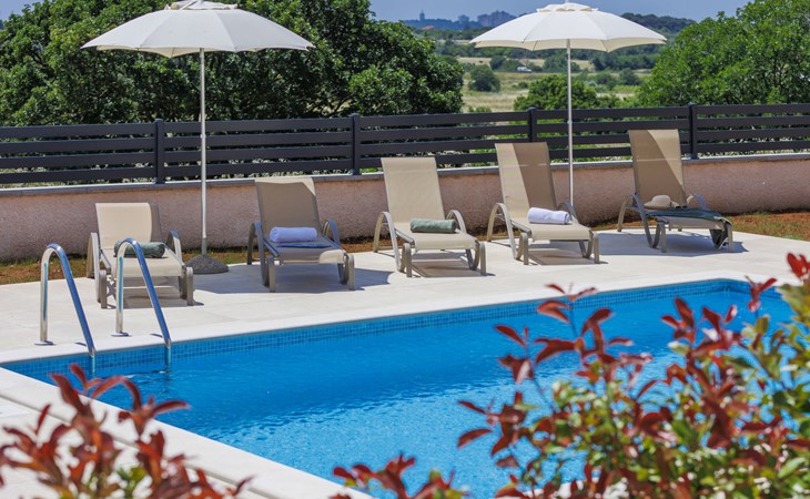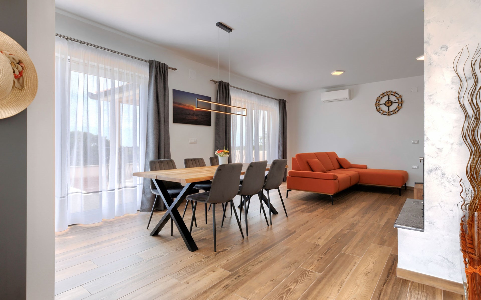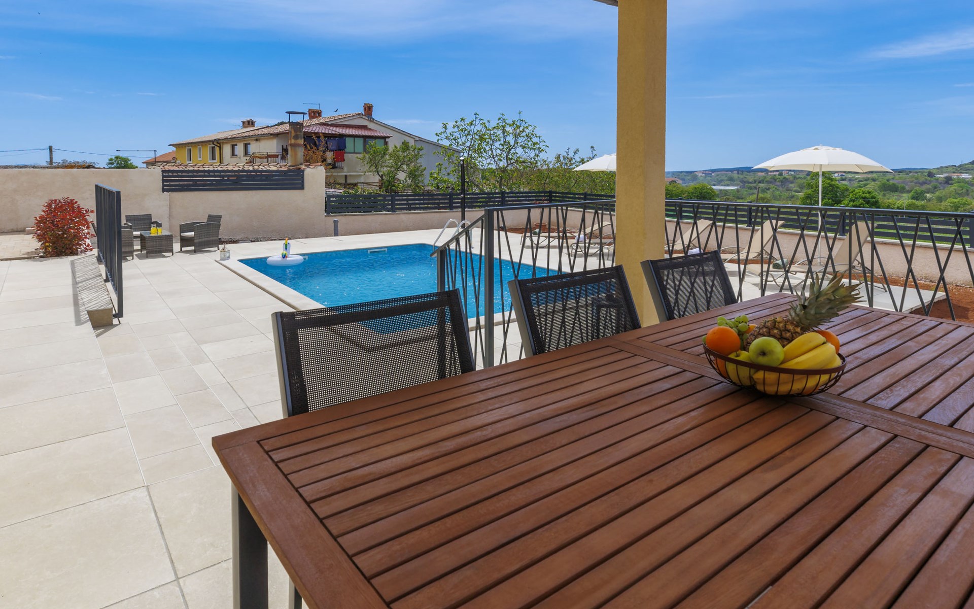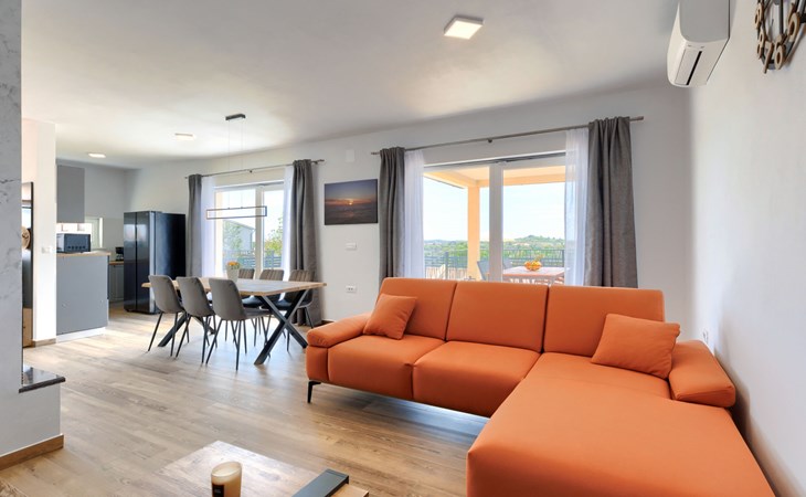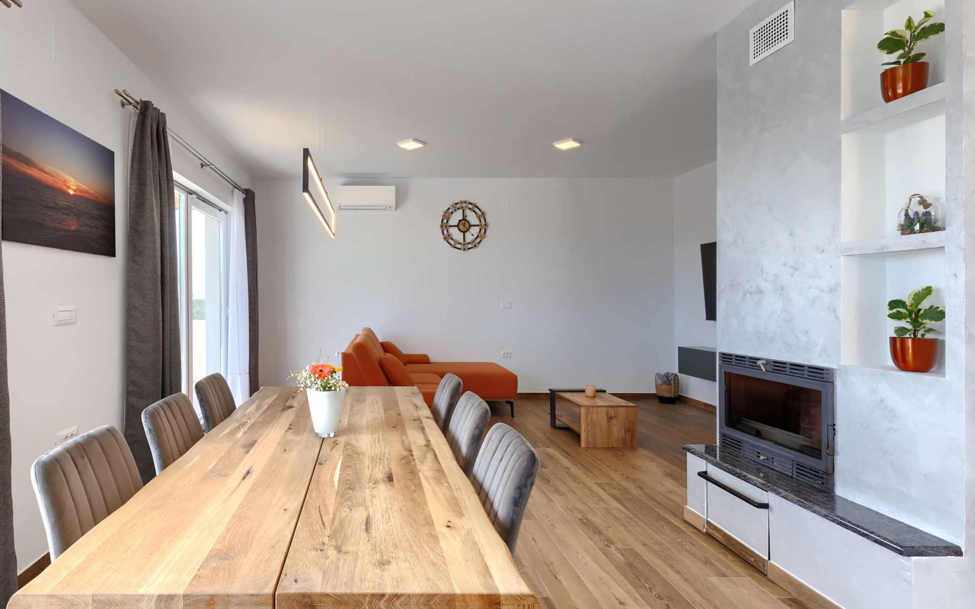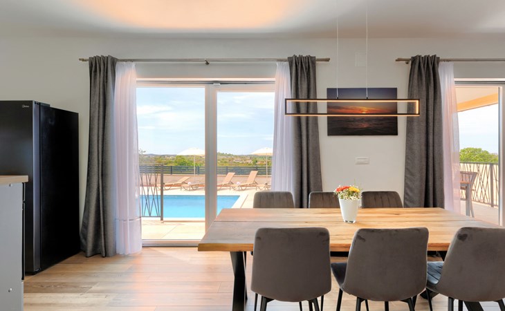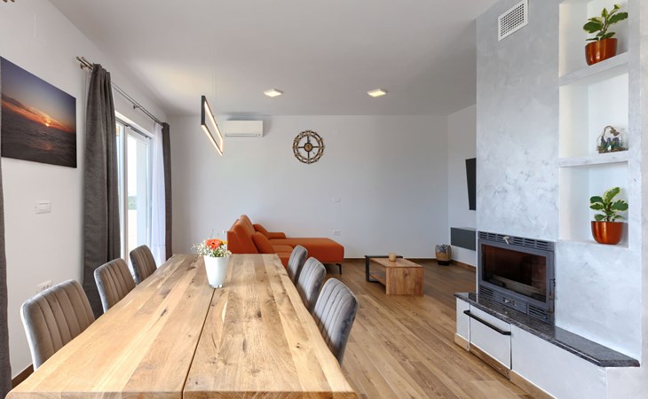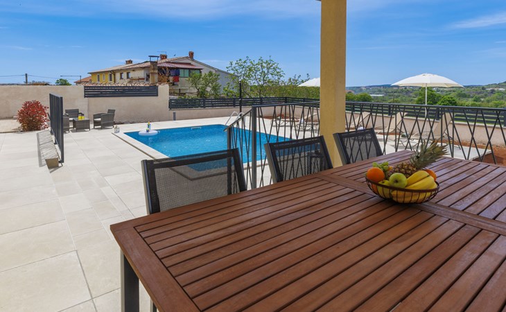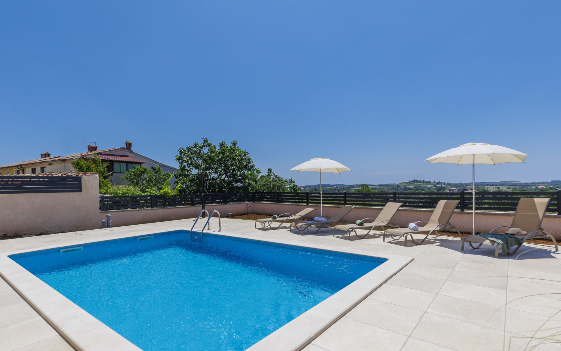 Mooi eengezinswoning "Villa Dora", van 2 verdiepingen, bouwjaar 2023. In het gehucht Jadreški, 7.5 km van het centrum van Pula, rustige, zonnige ligging, 7 km van zee. Voor alleengebruik: terrein 394 m2, tuin met gazon, openluchtzwembad hoekig (6 x 4 m, 150 cm diepte, seizoensgebonden beschikbaarheid: 01.Mei. - 15.Okt.). Buitendouche, barbecue. In het huis: internetaansluiting, wasmachine. Parkeerplaats (voor 2 auto's) bij het huis op het terrein. Winkel 150 m, supermarkt 5 km, restaurant 3.2 km, bushalte 280 m, zandstrand 7 km kiezelstrand 7 km. Wandelroutes 100 m vanaf het huis, fietspad 150 m. Attracties in de buurt: Amphitheater 8 km, NP Brijuni 14 14 km, Nature park Rt Kamenjak 17 km. Geschikt voor families. De eigenaar accepteert geen jeugdgroepen. Vliegveld 7 km van het huis.