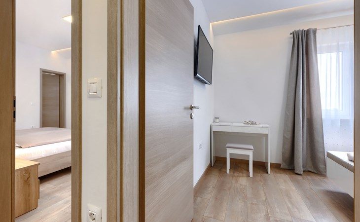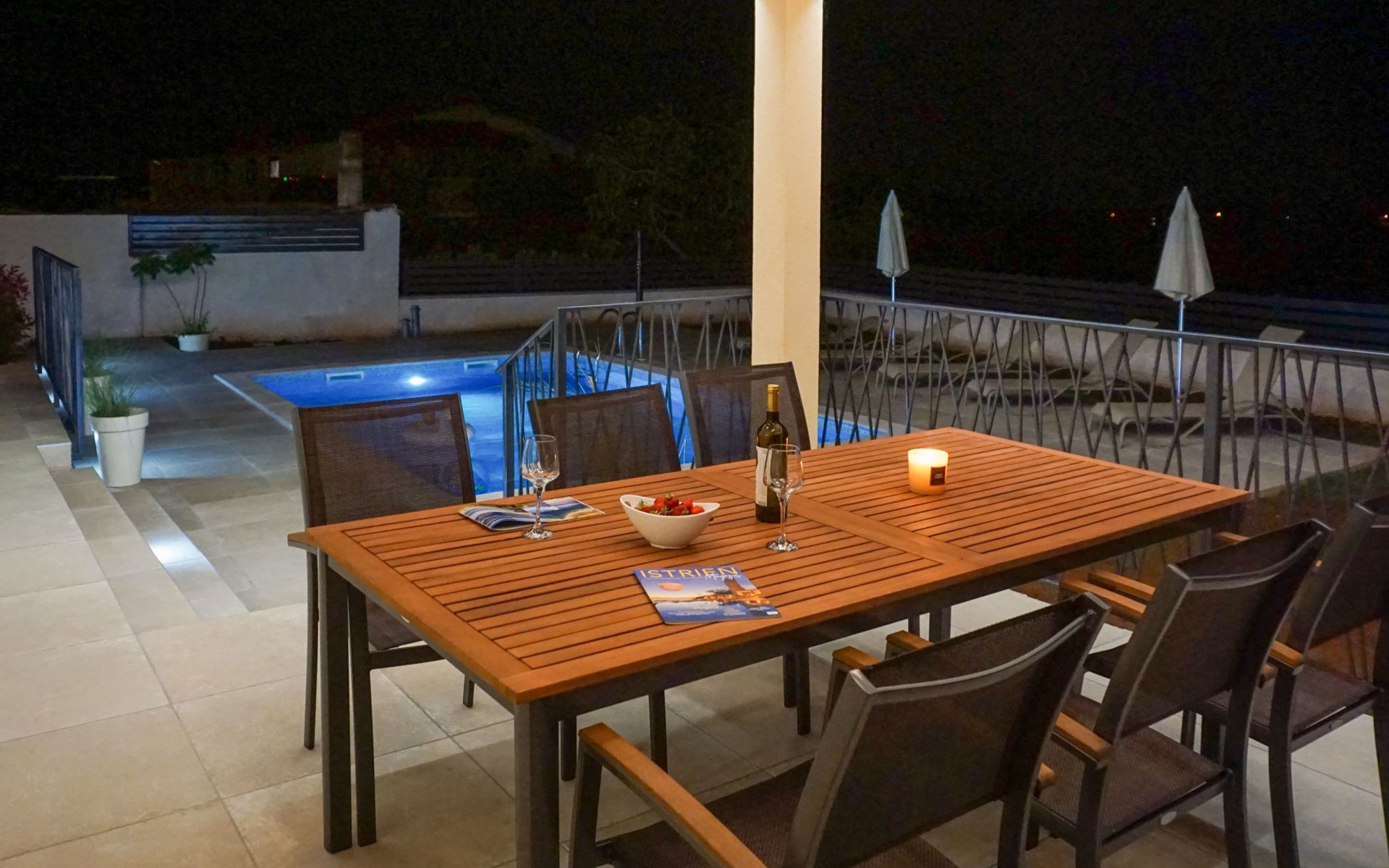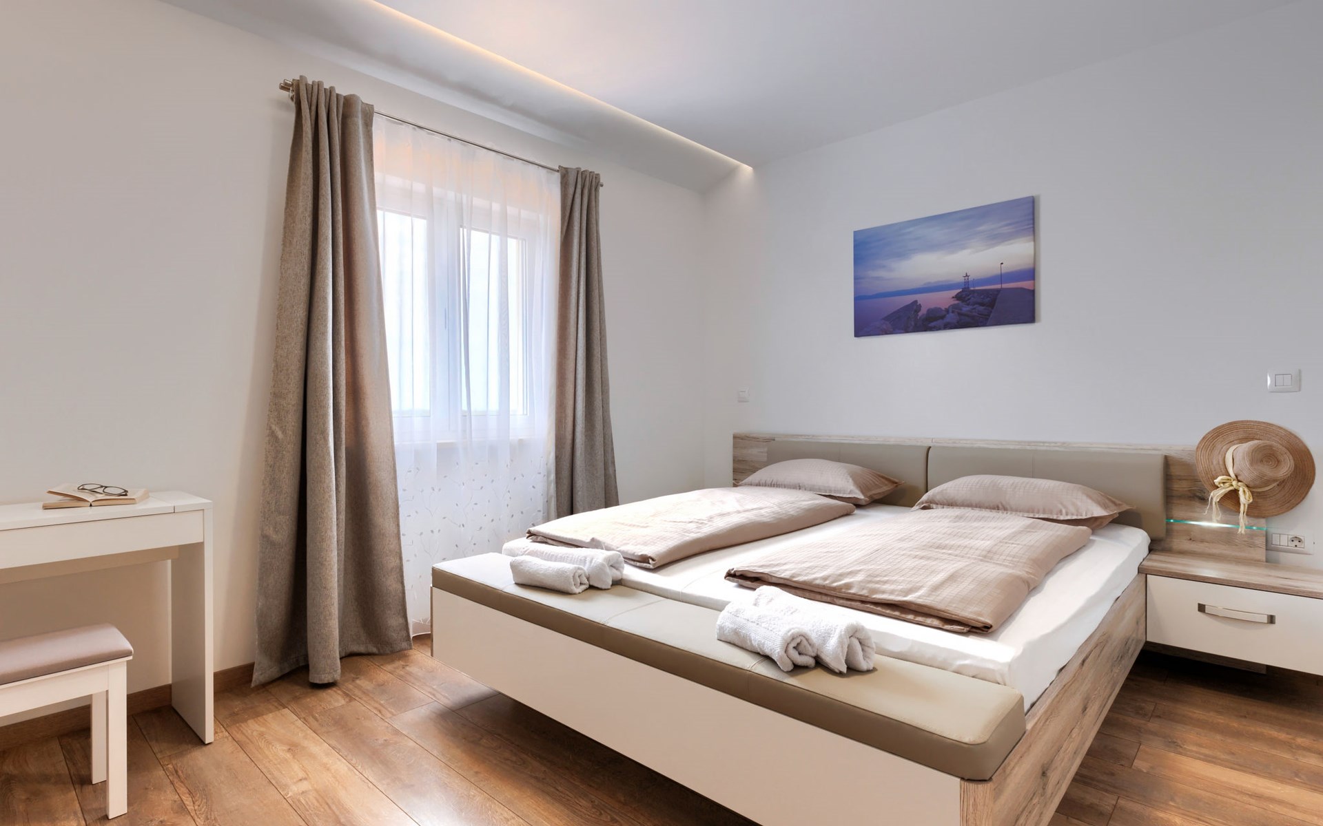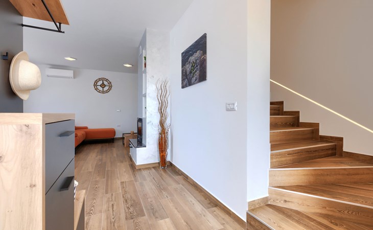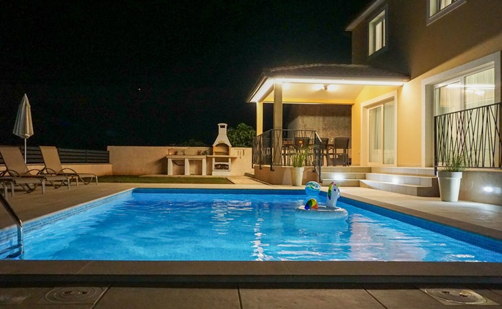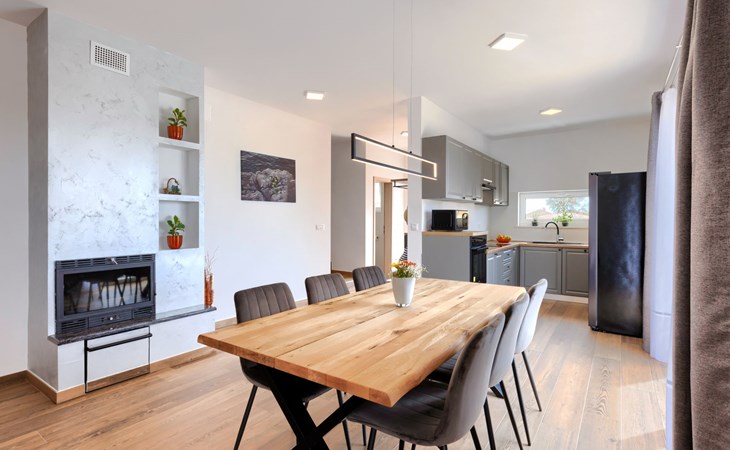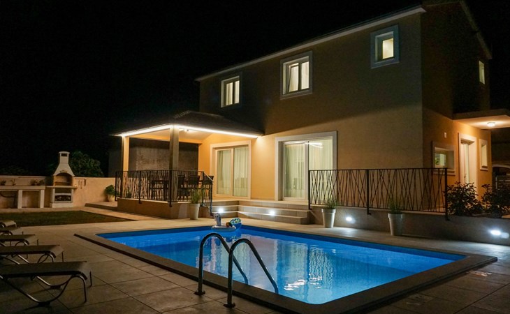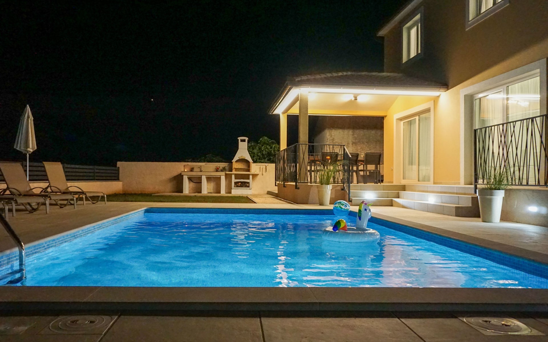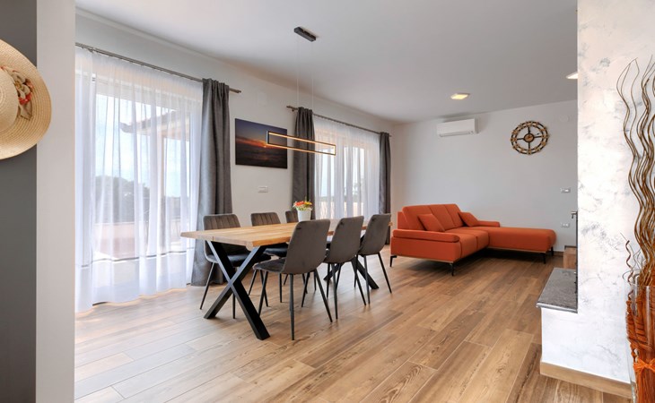 Mooi eengezinswoning "Villa Dora", van 2 verdiepingen, bouwjaar 2023. In het gehucht Jadreški, 7.5 km van het centrum van Pula, rustige, zonnige ligging, 7 km van zee. Voor alleengebruik: terrein 394 m2, tuin met gazon, openluchtzwembad hoekig (6 x 4 m, 150 cm diepte, seizoensgebonden beschikbaarheid: 01.Mei. - 15.Okt.). Buitendouche, barbecue. In het huis: internetaansluiting, wasmachine. Parkeerplaats (voor 2 auto's) bij het huis op het terrein. Winkel 150 m, supermarkt 5 km, restaurant 3.2 km, bushalte 280 m, zandstrand 7 km kiezelstrand 7 km. Wandelroutes 100 m vanaf het huis, fietspad 150 m. Attracties in de buurt: Amphitheater 8 km, NP Brijuni 14 14 km, Nature park Rt Kamenjak 17 km. Geschikt voor families. De eigenaar accepteert geen jeugdgroepen. Vliegveld 7 km van het huis.