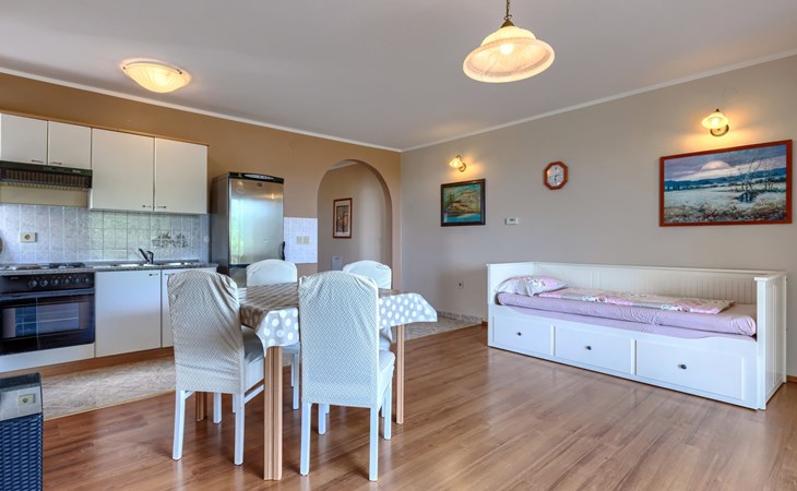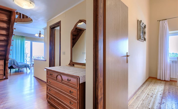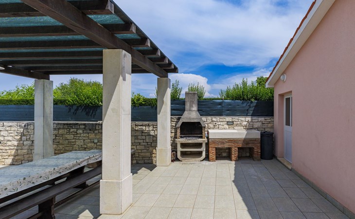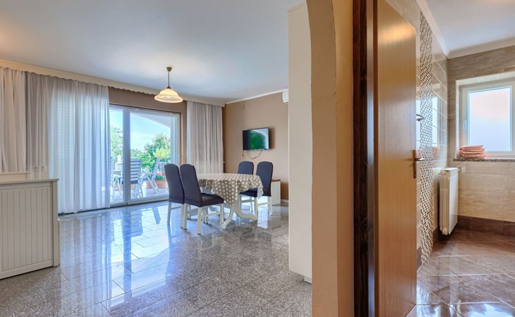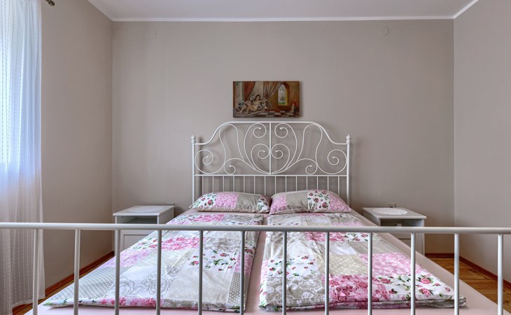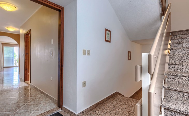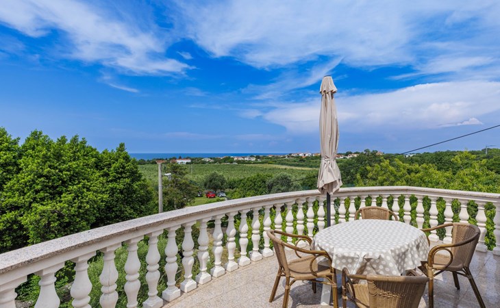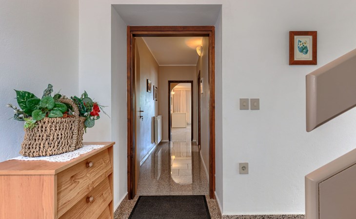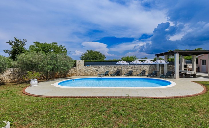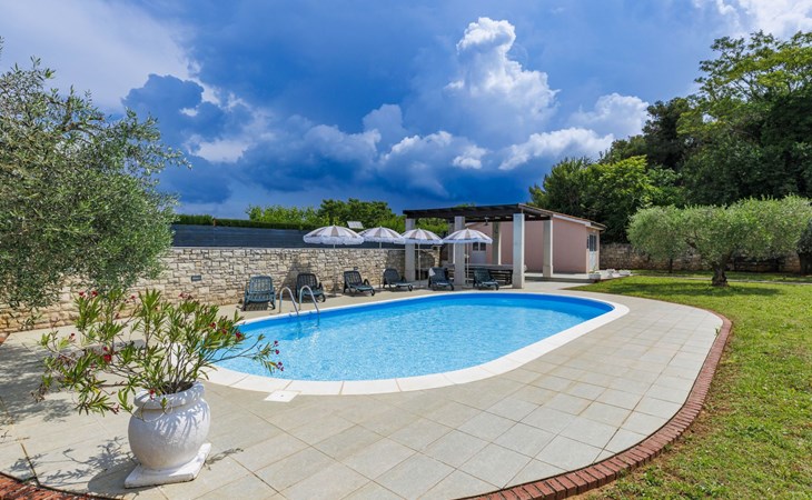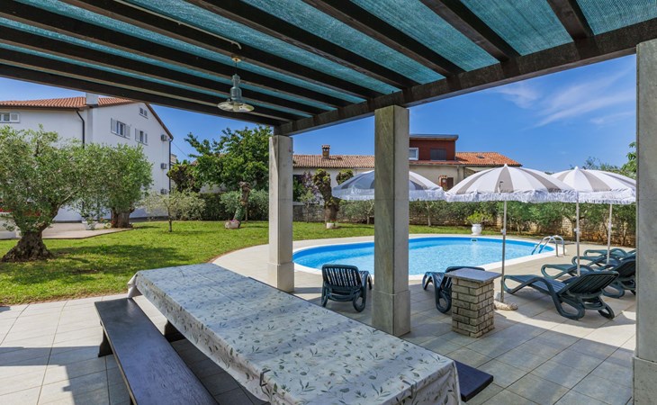 Gezellige twee onder één kap woning "Villa Maran", van 3 verdiepingen. Boven Zambratija, 6 km van het centrum van Umag, rustige, zonnige, verhoogde ligging, 800 m van zee, te midden van groen. Voor alleengebruik: terrein 1.200 m2 (omheind), tuin met gazon 300 m2, openluchtzwembad (10 x 5 m, 135 cm diepte, seizoensgebonden beschikbaarheid: 01.Mei. - 30.Sep.). Buitendouche, prieel, tuinmeubelen, barbecue. In het huis: internetaansluiting, wasmachine. Parkeerplaats bij het huis op het terrein. Winkel 1 km, restaurant 1 km, bushalte 7 km, treinstation 35 km, zandstrand 1 km, rotsstrand 1 km. Golfterrein (18 holes) 6 km, tennis 1.5 km, sportcentrum 1.5 km. De eigenaar accepteert geen jeugdgroepen. De omgeving is gevoelig voor geluidsoverlast. Gelieve geen lawaai te maken en de rust te bewaren.