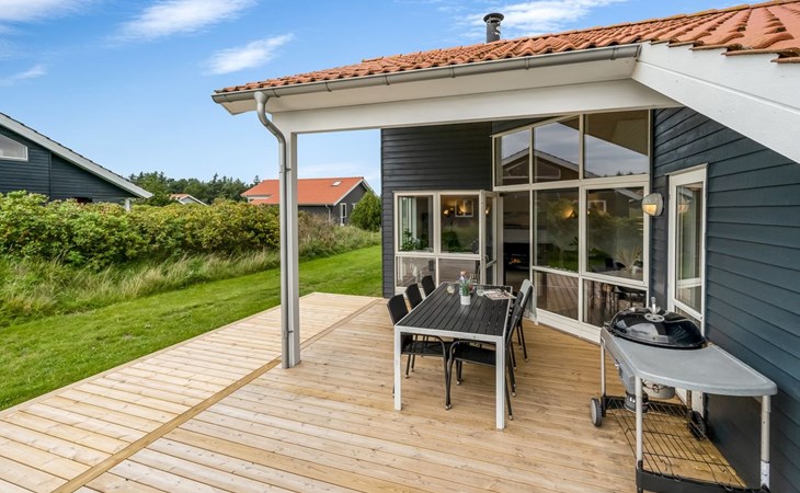 Eengezinswoning, bouwjaar 2009. 800 m van zee. Voor alleengebruik: wild terrein 400 m2. Barbecue. In het huis: wasmachine, droger. Parkeerplaats bij het huis. Carport. Levensmiddelenwinkel 3 km. Golfterrein 20 km. De eigenaar accepteert geen jeugdgroepen.