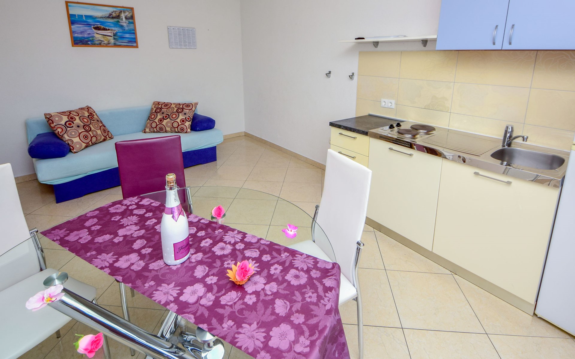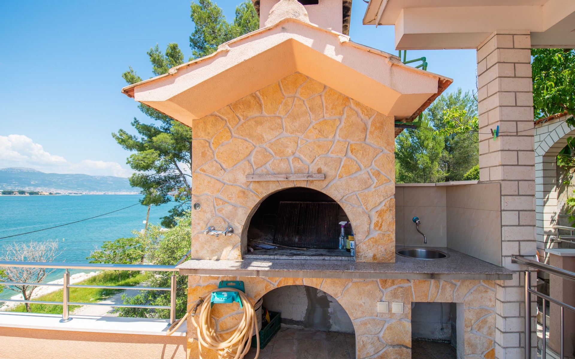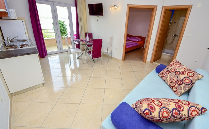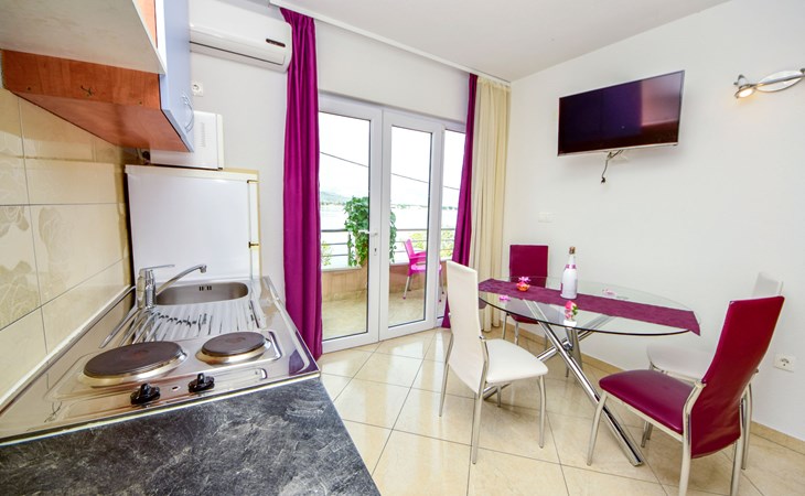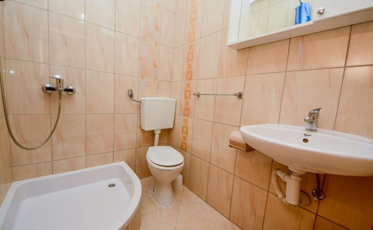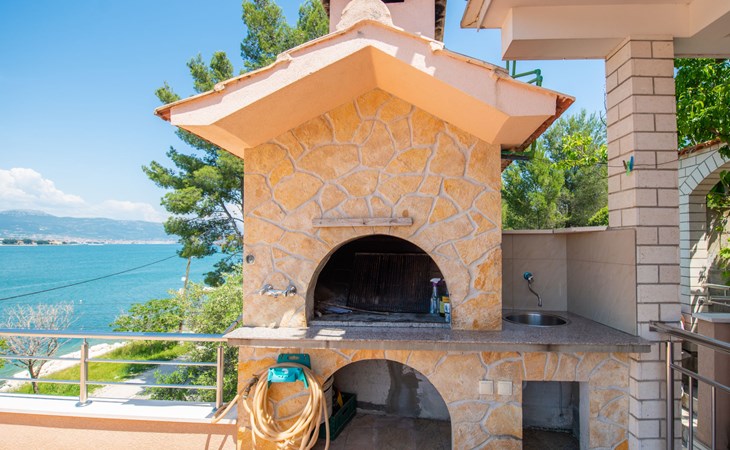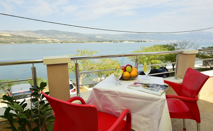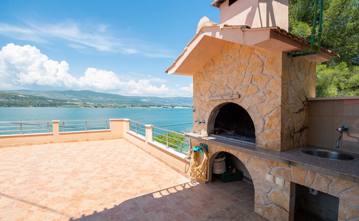 Mastrinka (Čiovo) 4 km van Trogir: Appartementencomplex "Vinka". Zonnige ligging, 30 m van zee, 30 m van het strand, de straat oversteken, aan een weg. Voor medegebruik: terrein 500 m2. Barbecue. In het huis: internetaansluiting, wasmachine (extra) (voor medegebruik). Openbare parkeerplaatsen in de straat. Winkel, restaurant 800 m, bushalte 240 m, kiezelstrand, rotsstrand 30 m. Privé aanlegsteiger voor een boot (extra) op aanvraag. Vliegveld 5.5 km van het huis.