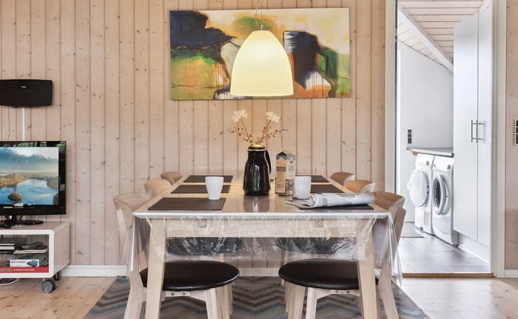 Eengezinswoning, bouwjaar 2011. 800 m van zee. Voor alleengebruik: terrein 900 m2, verzorgde tuin. Barbecue, kinderspeelplaats (schommel). In het huis: sauna, wasmachine, droger. Parkeerplaats bij het huis. Levensmiddelenwinkel 800 m. Golfterrein 10 km. De eigenaar accepteert geen jeugdgroepen.