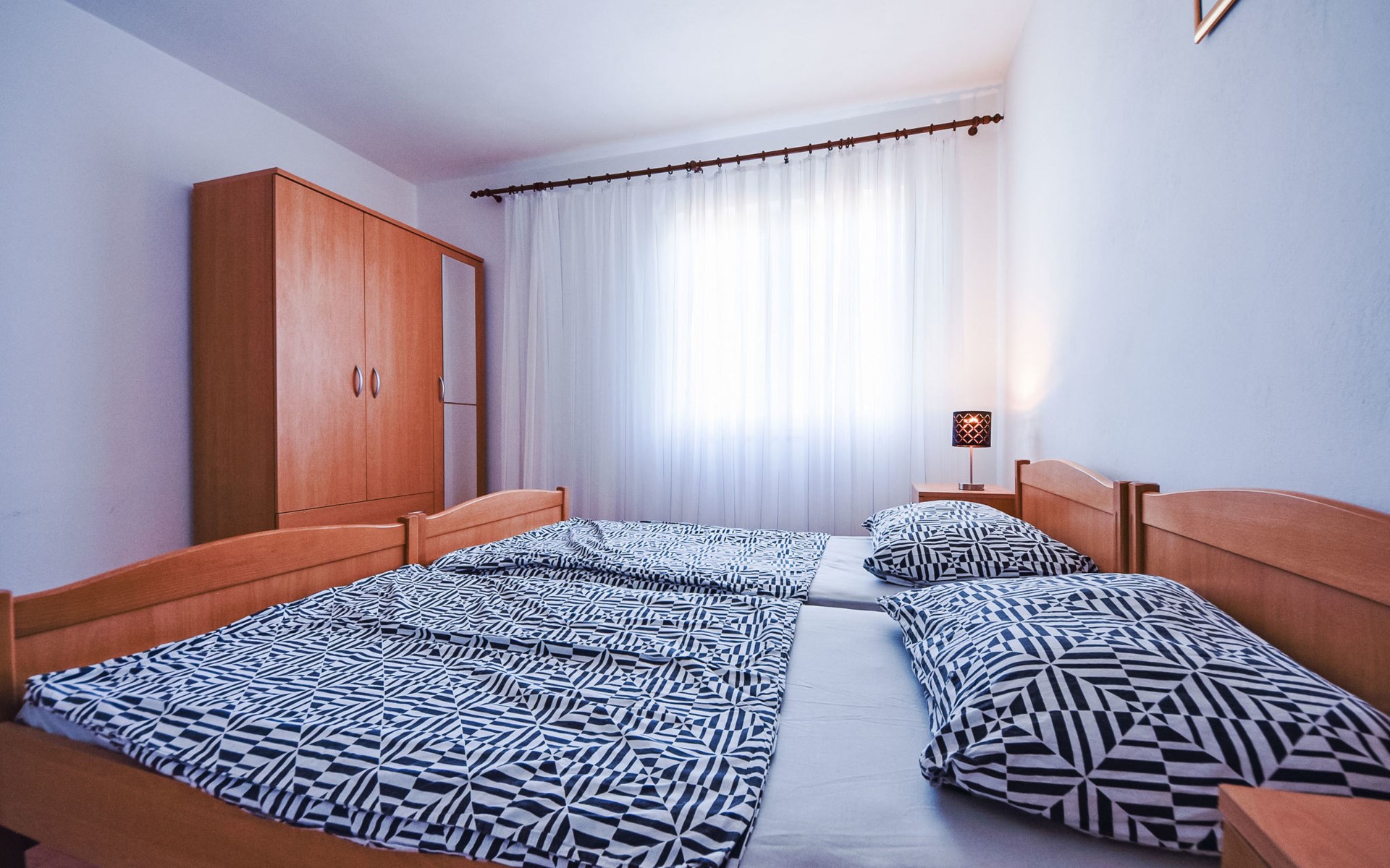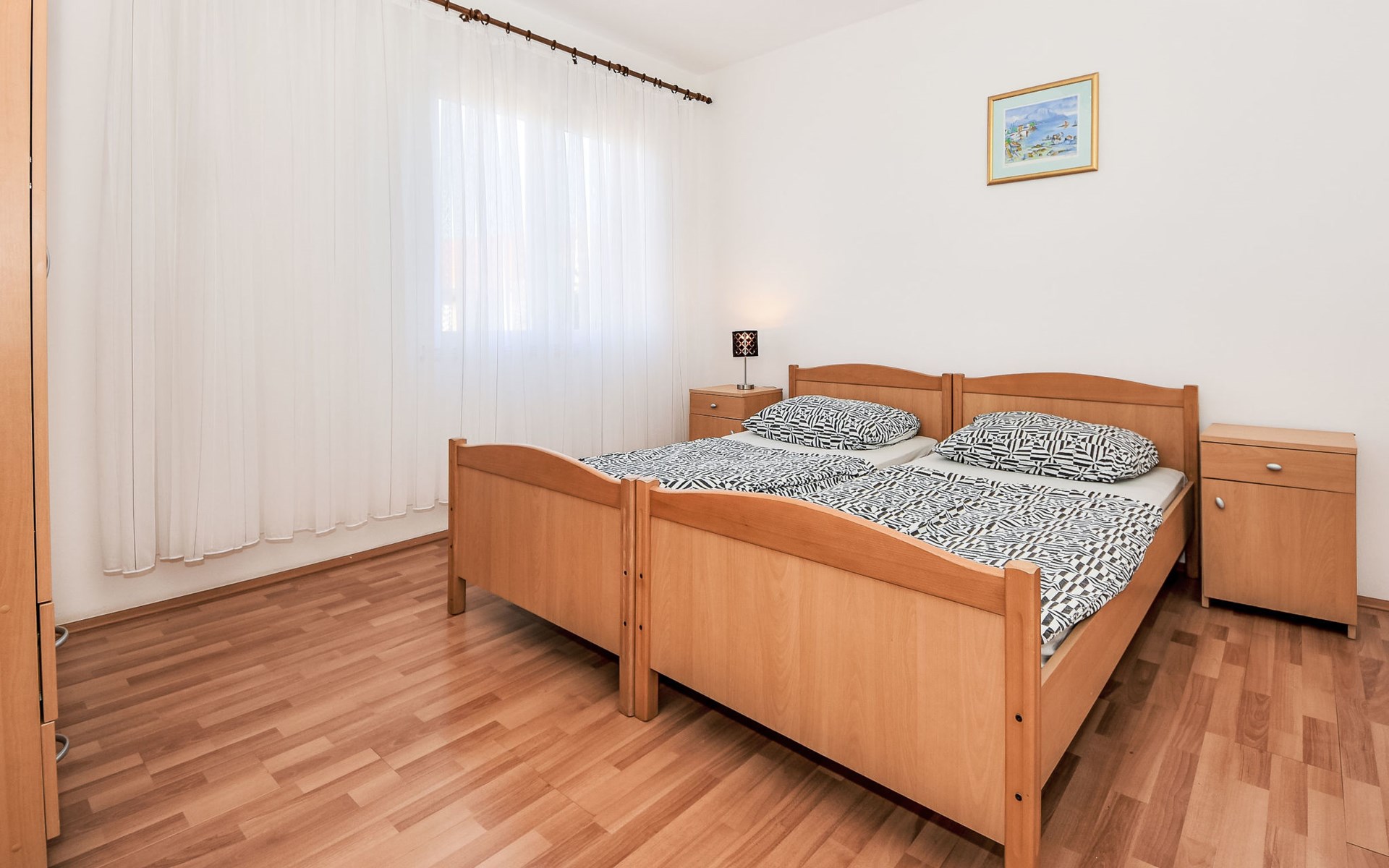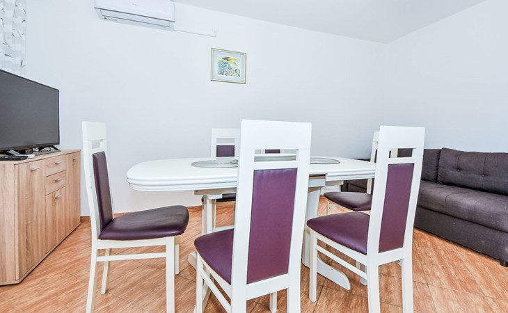Huis met 2 woningen "Maldini". 200 m van het centrum van Sukošan, zonnige ligging, 300 m van zee, 480 m van het strand. Voor medegebruik: terrein 150 m2. Barbecue. In het huis: internetaansluiting. Parkeerplaats bij het huis op het terrein. Winkel 200 m, restaurant 230 m, bushalte 500 m, kiezelstrand 480 m.