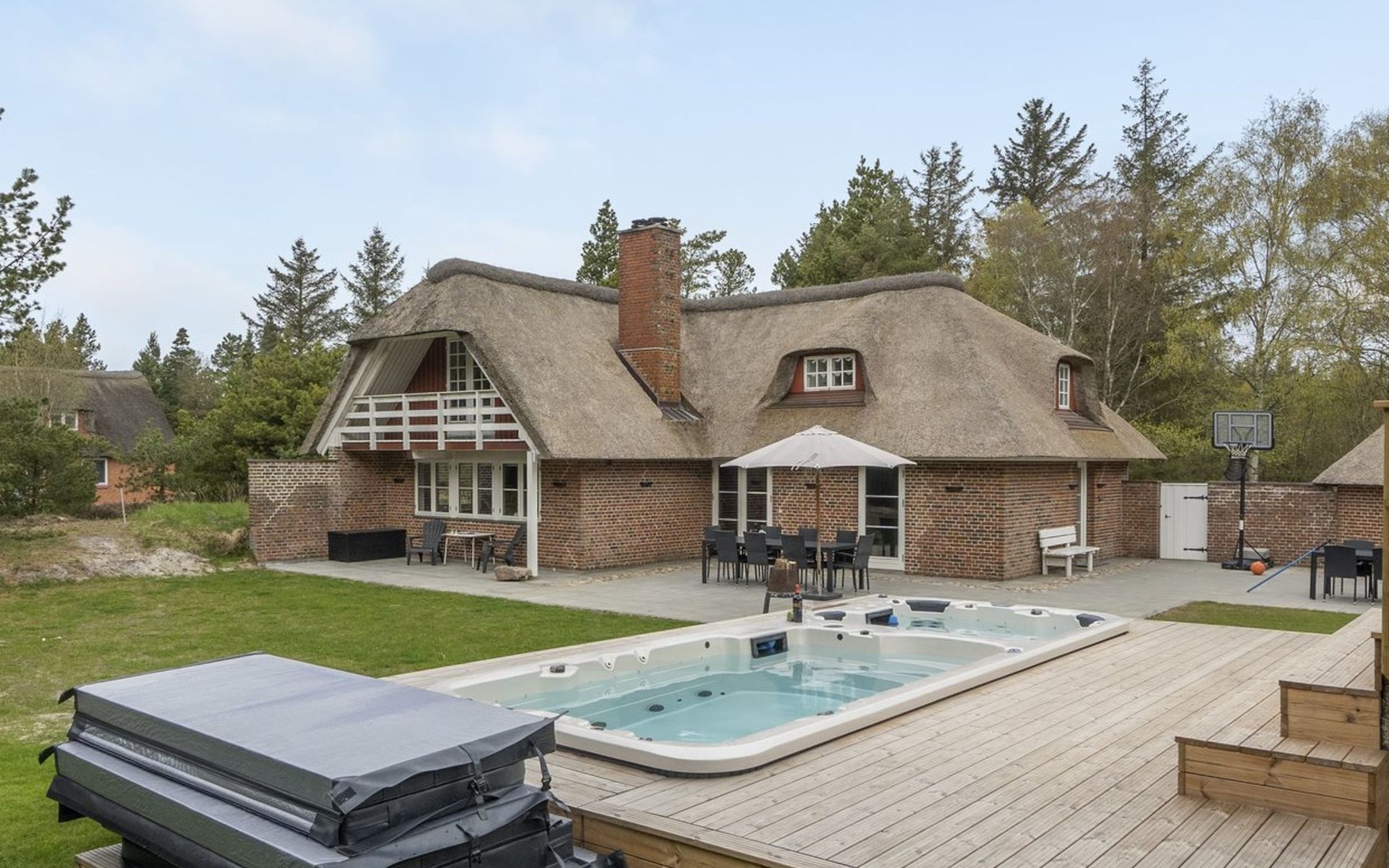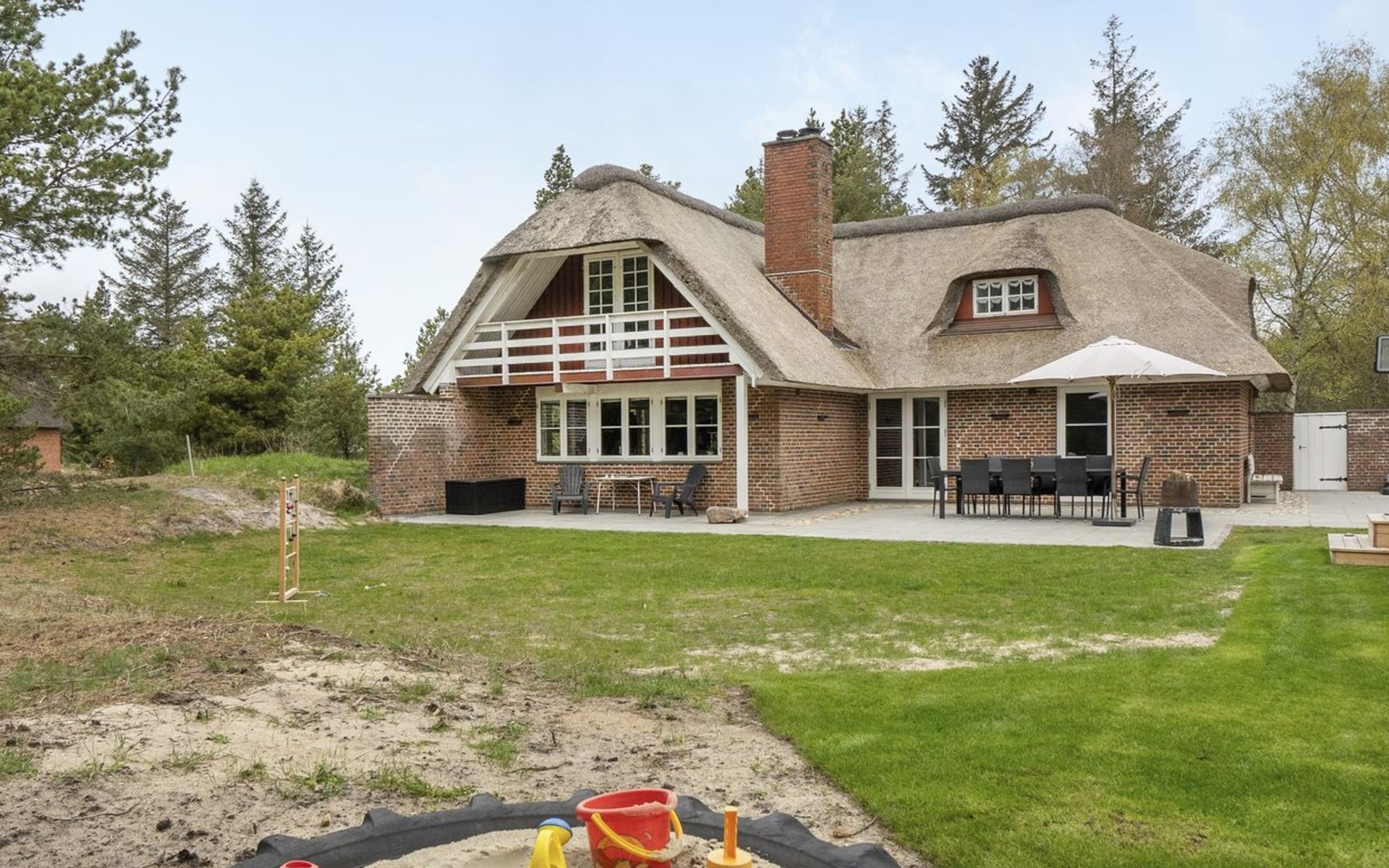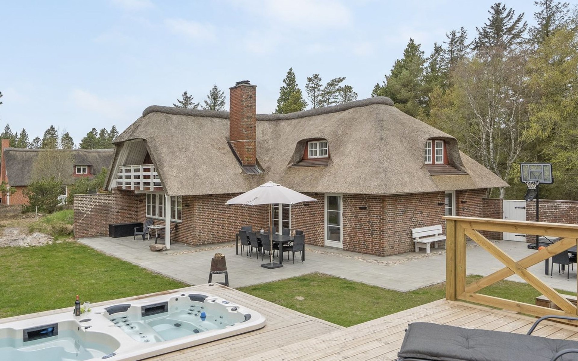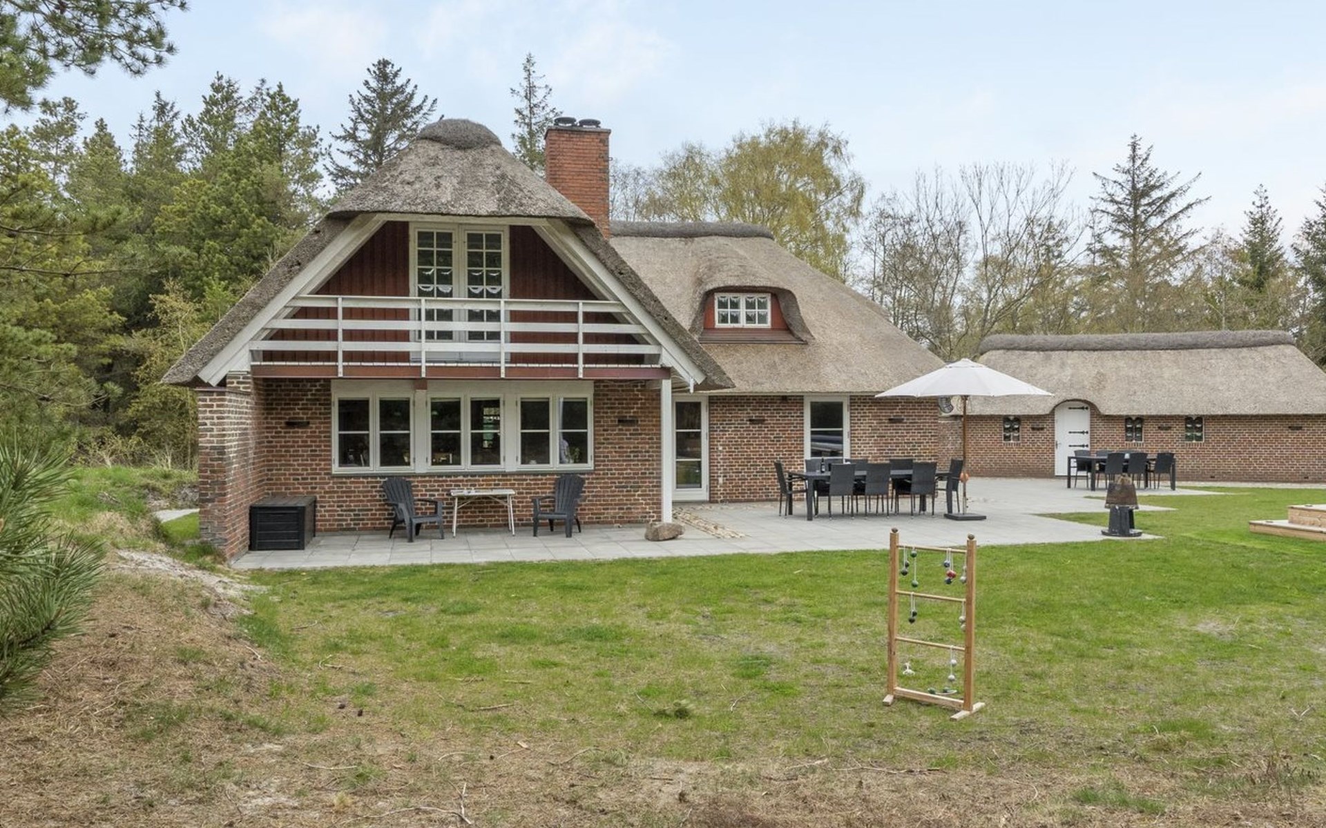 Eengezinswoning, bouwjaar 1977. 3.5 km van zee. Voor alleengebruik: terrein 2.800 m2. Terras (200 m2), kinderspeelplaats (schommel). In het huis: trampoline, wasmachine, droger. Parkeerplaats bij het huis. Oplaadstation. Levensmiddelenwinkel 1 km. Golfterrein 5.3 km. De eigenaar accepteert geen jeugdgroepen.